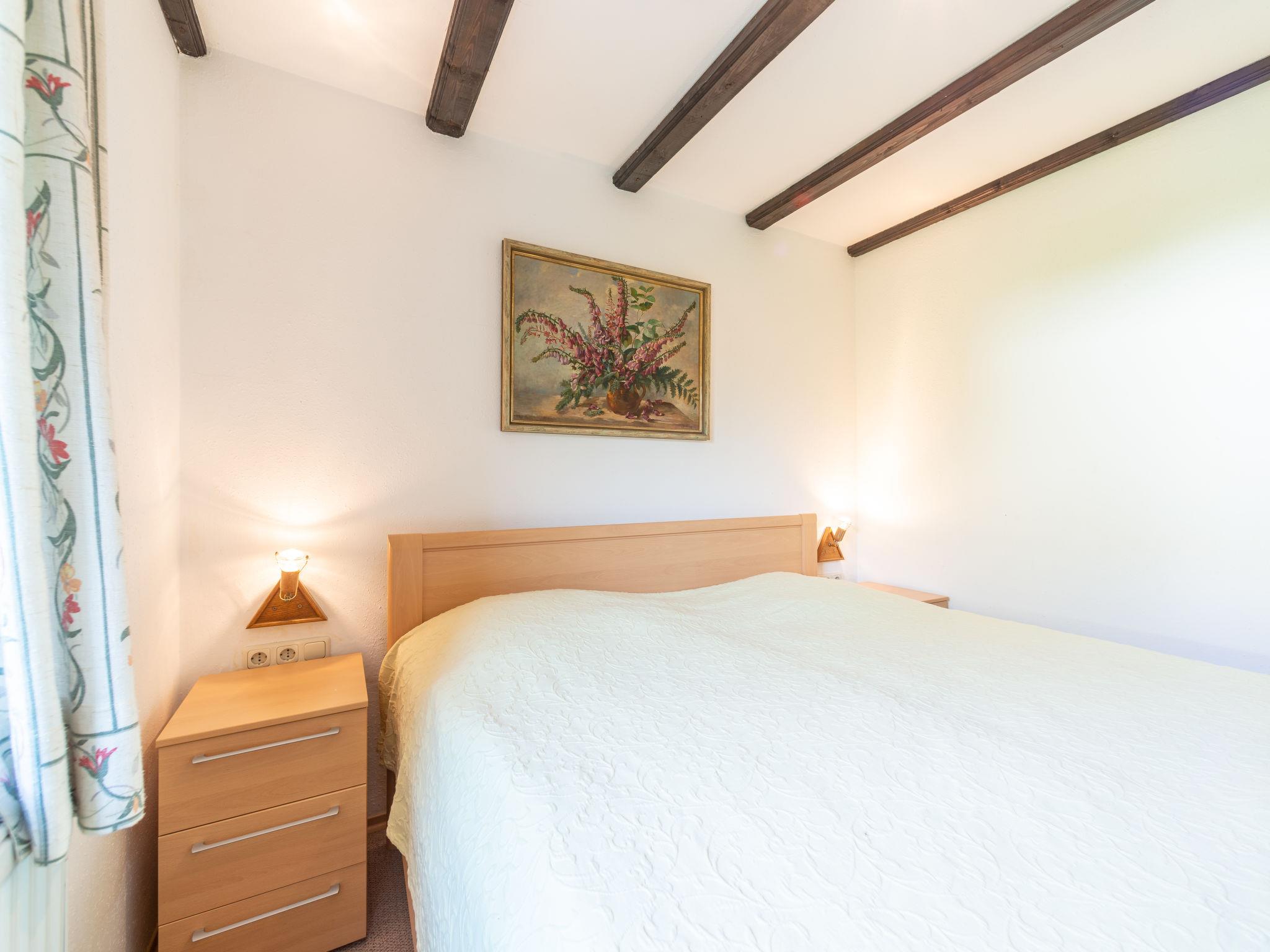 2-Zimmer-Wohnung 38 m2, im Erdgeschoss. Gemütlich eingerichtet: Wohn-/Esszimmer 18 m2 mit 1 Diwanbett (80 cm, Länge 200 cm), Sat-TV (Flachbildschirm). 1 Zimmer 12 m2 mit 1 Doppelbett (180 cm, Länge 190 cm). Kochnische (2 Kochplatten, Toaster, Wasserkocher, elektrische Kaffeemaschine). Dusche/WC. G-Heizung. Kleine Terrasse 10 m2 teilweise überdacht. Terrassenmöbel. Schöne Sicht auf die Berge. Zur Verfügung: Internet (Wireless LAN, gratis). Bitte beachten: Nichtraucher-Unterkunft. Maximal 1 Haustier/Hund erlaubt. Rauchmelder. See 150 m. Bei Reservierung des Zusatzbettes steht Ihnen das Diwanbett im Wohn-/Esszimmer zur Verfügung.