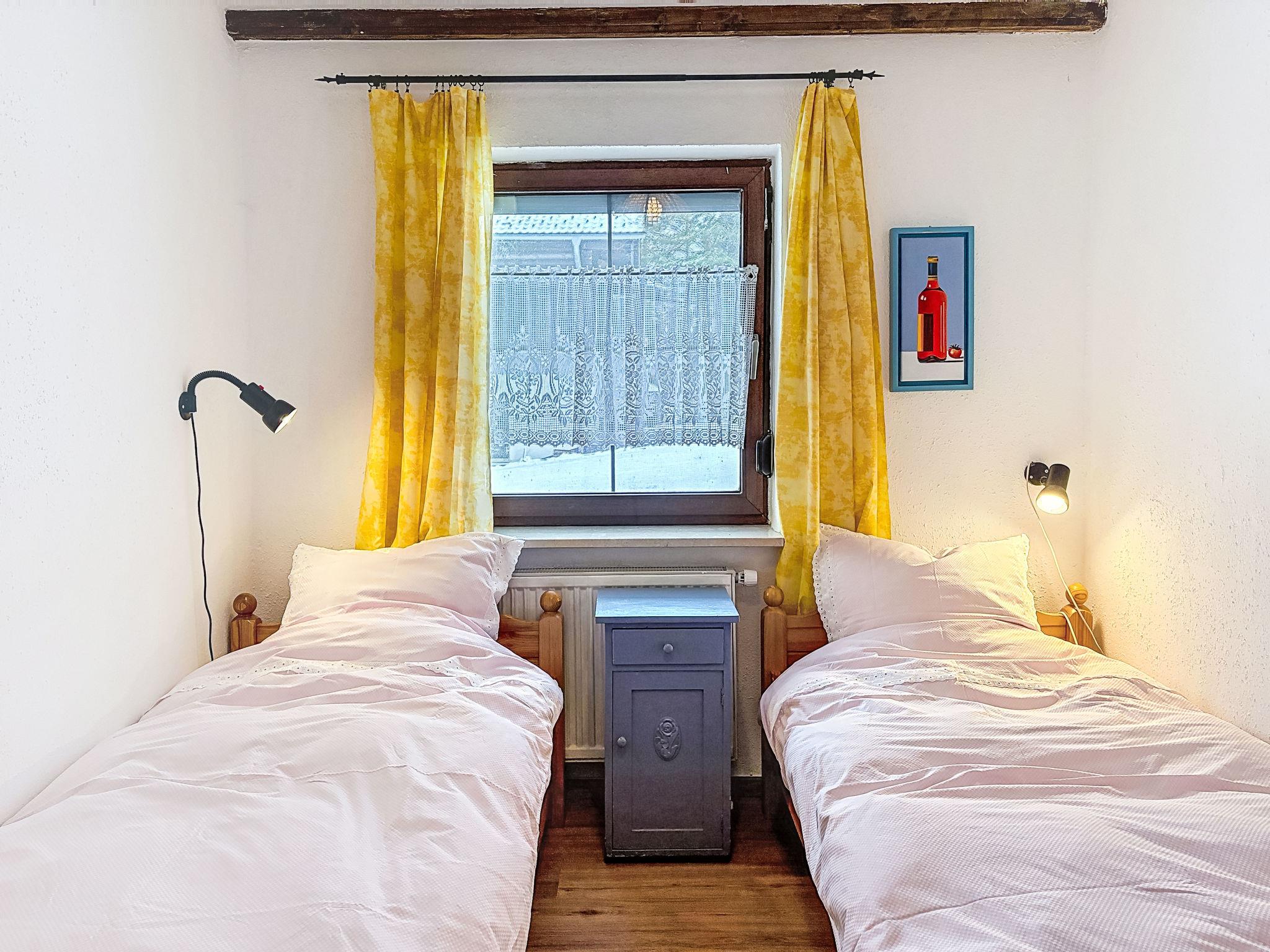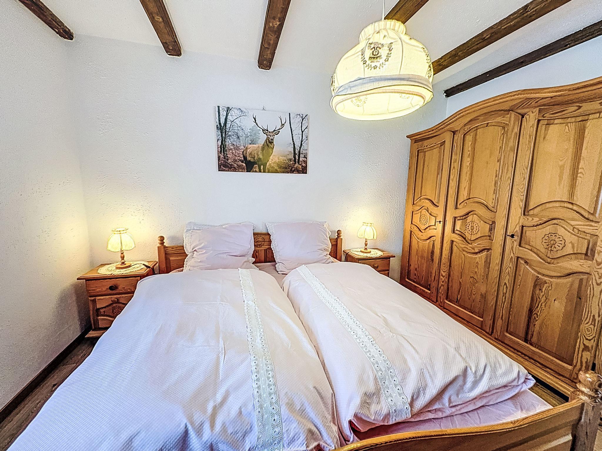 3-Zimmer-Wohnung 75 m2, im Erdgeschoss. Gemütlich eingerichtet: Wohnzimmer mit Sat-TV (Flachbildschirm). Ausgang zum Garten, zur Terrasse. 1 Zimmer mit 1 Doppelbett (180 cm, Länge 200 cm). 1 Zimmer mit 2 Betten (90 cm, Länge 200 cm). Offene Küche (4 Kochplatten, Backofen, Toaster, Wasserkocher, elektrische Kaffeemaschine) mit Esstisch. Dusche/WC. G-Heizung. Terrasse teilweise überdacht. Terrassenmöbel, Gartengrill (mobil), Sitzplatz. Schöne Sicht auf die Berge. Zur Verfügung: Internet (WLAN, gratis). Parkplatz (1 Auto) in 30 m. Bitte beachten: Nichtraucher-Unterkunft. Eigener Eingang, Rauchmelder.
