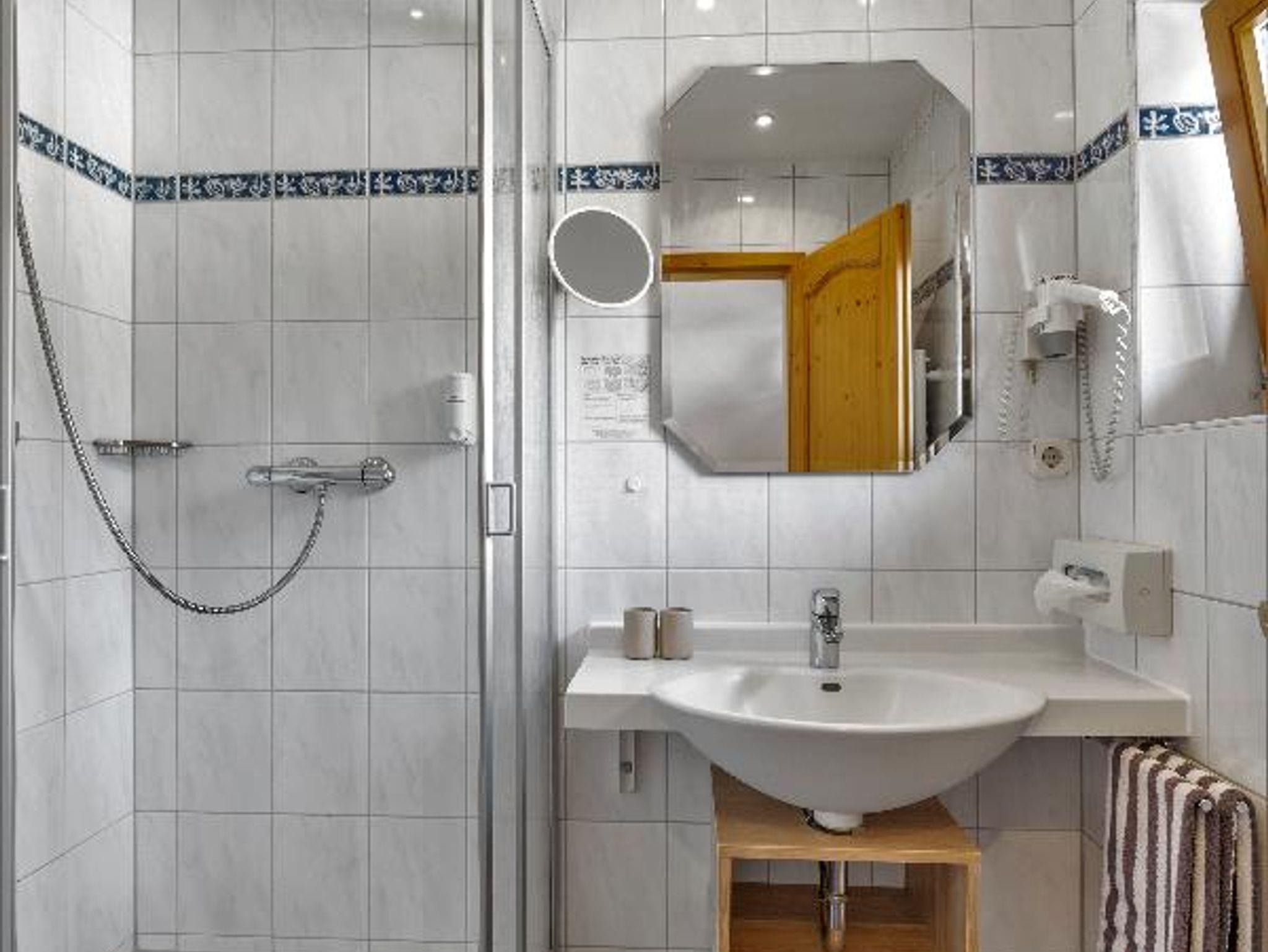 Schlaf. Das moderne Bad verfügt über eine Dusche, WC, Fön und einen