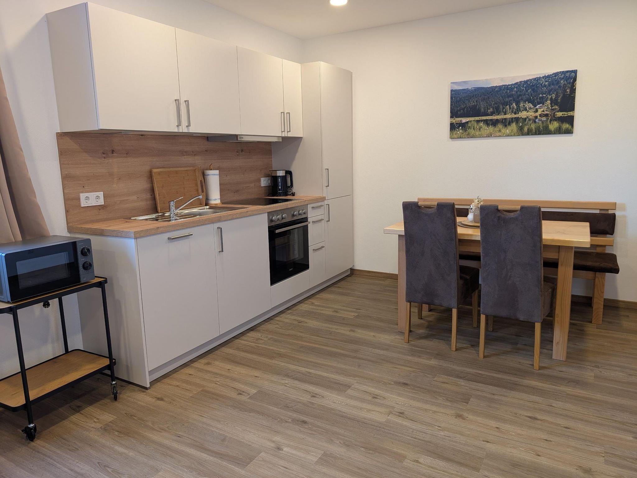 Buch, Film oder gemeinsamen Essen. Die offene Küchenzeile ist voll ausgestattet