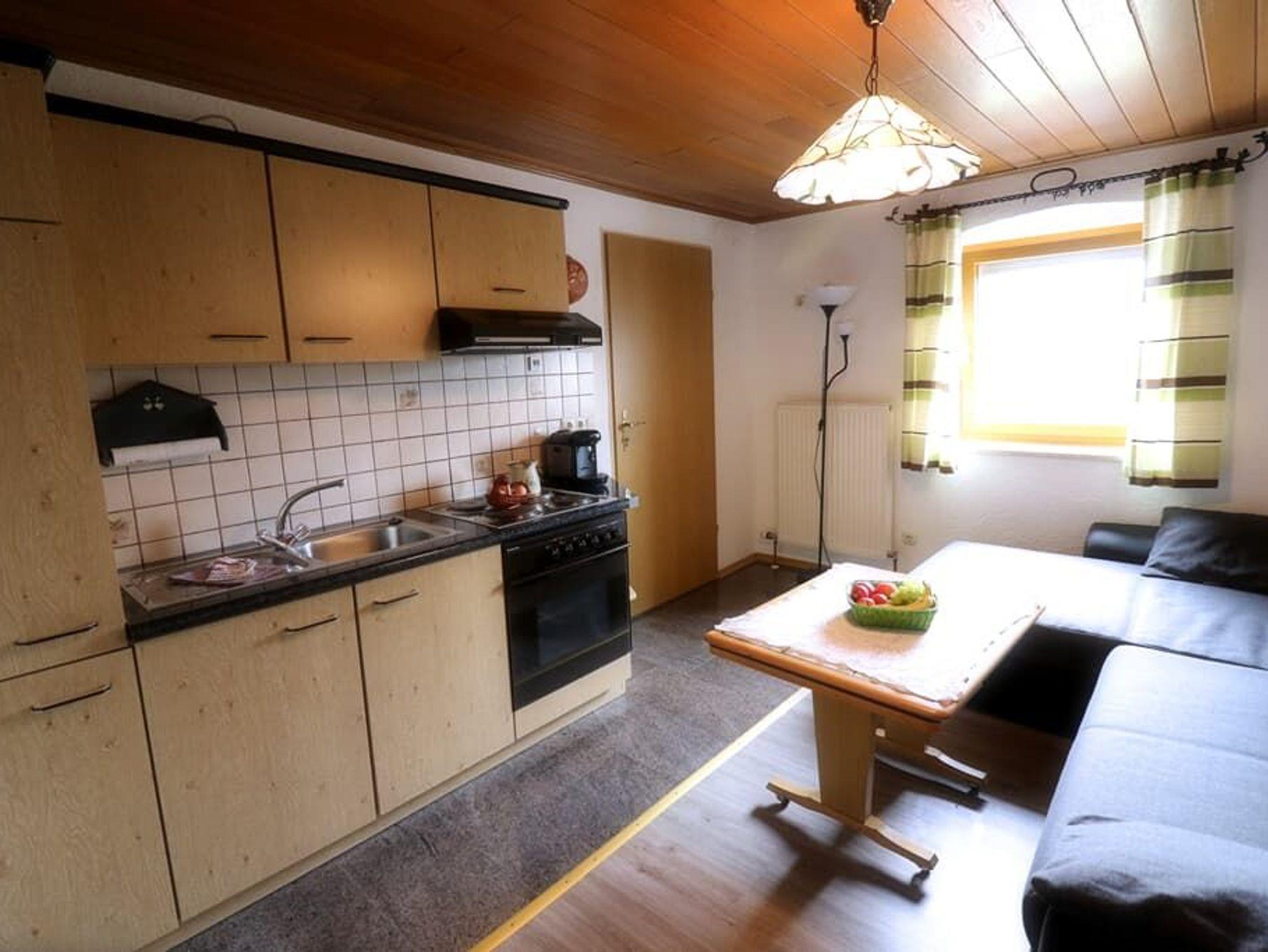 1 Vorraum, 1 separates Schlafzimmer mit neuem Komfort-Boxspringbett, Küchenzeile, neue Schlafcouch für 2 Personen, Flachbild-TV, DU/WC mit Fön und Kosmetikspiegel, Balkon, eigener Eingang, Autoabstellplatz, WLAN.