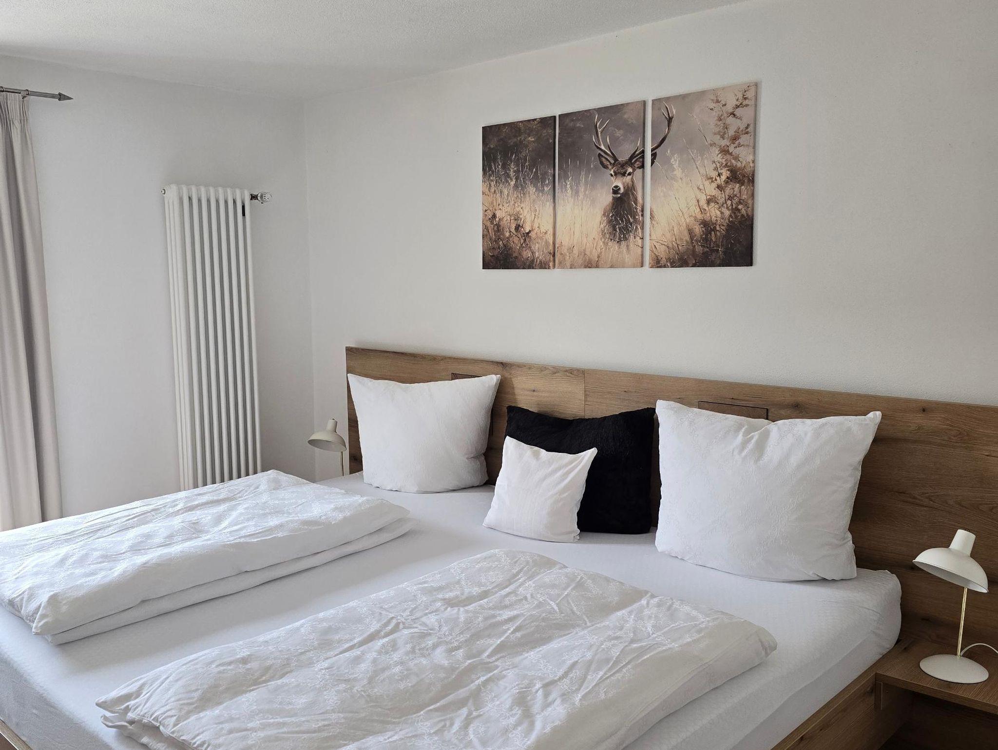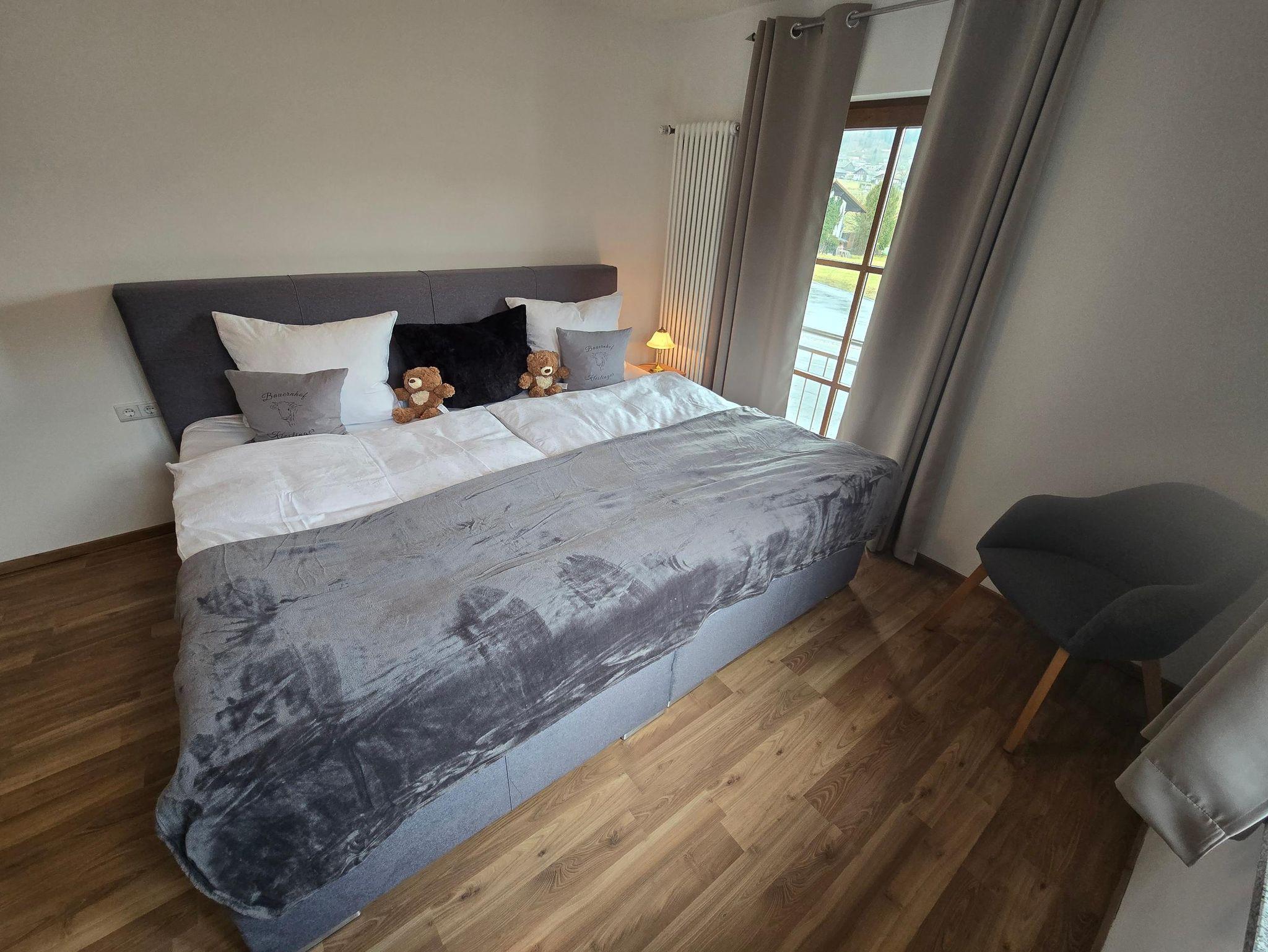 Die großzügige Ferienwohnung mit 80 Quadratmetern bietet viel Platz zum Wohlfühlen und Entspannen. Herzstück der Wohnung ist die vollausgestattete Küche, die keine Wünsche offenlässt: Neben einer Spülmaschine, einem Herd mit Backofen, Kühlschrank und Gefrierfach stehen Ihnen auch eine Mikrowelle, Kaffeemaschine, Wasserkocher, Eierkocher, Toaster sowie ein Pürierstab zur Verfügung – ideal für gemütliche Kochabende mit Familie oder Freunden. Das einladende Wohn- und Esszimmer überzeugt mit einem großen Tisch, einer Bank und drehbaren Stühlen sowie einer komfortablen Couchecke, die zum Verweilen einlädt. Ein Flachbild-TV mit Internetzugang und kostenloses WLAN sorgen für beste Unterhaltung und eine bequeme Verbindung zur Außenwelt. Insgesamt verfügt die Ferienwohnung über drei Schlafzimmer. Ein Schlafzimmer ist mit einem großzügigen Familienbett (240 x 200 cm) ausgestattet, ein weiteres mit einem komfortablen Boxspringbett in gleicher Größe (240 x 200 cm). Das dritte Schlafzimmer bietet ein gemütliches Queen-Size-Bett (140 x 200 cm) sowie eine praktische 2-Sitzer-Couch. Ein separates Gäste-WC sowie ein modernes Badezimmer mit DU/WC, bodenebener Regendusche und dekorativen Naturstein-Wänden sorgen für zusätzlichen Komfort. Fön und Kosmetikspiegel stehen ebenso bereit wie eine Waschmaschine – ideal auch für längere Aufenthalte.