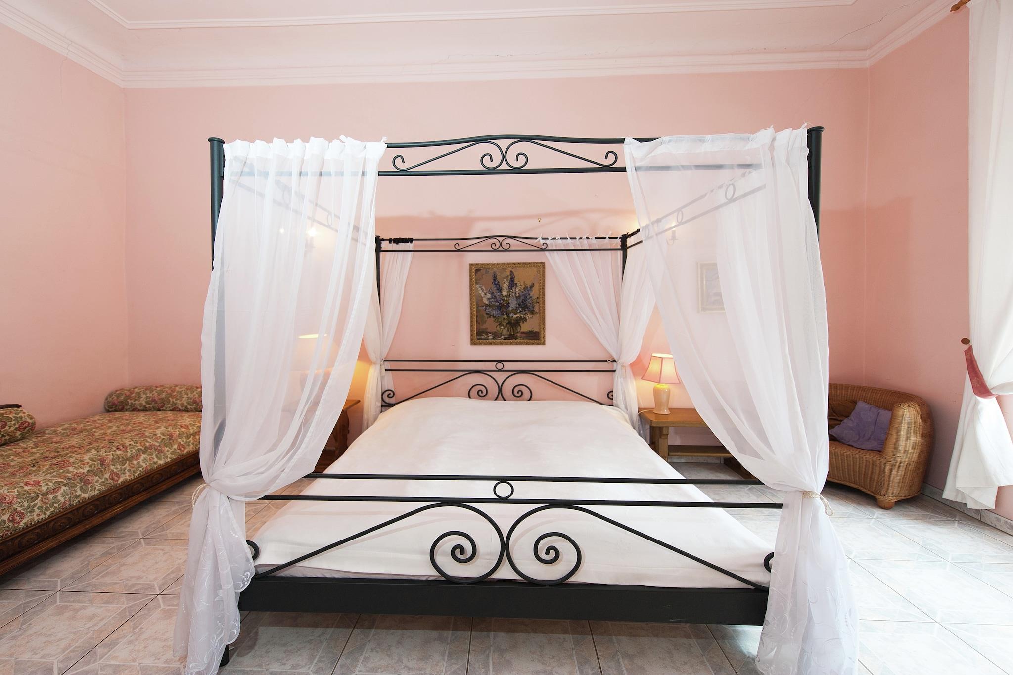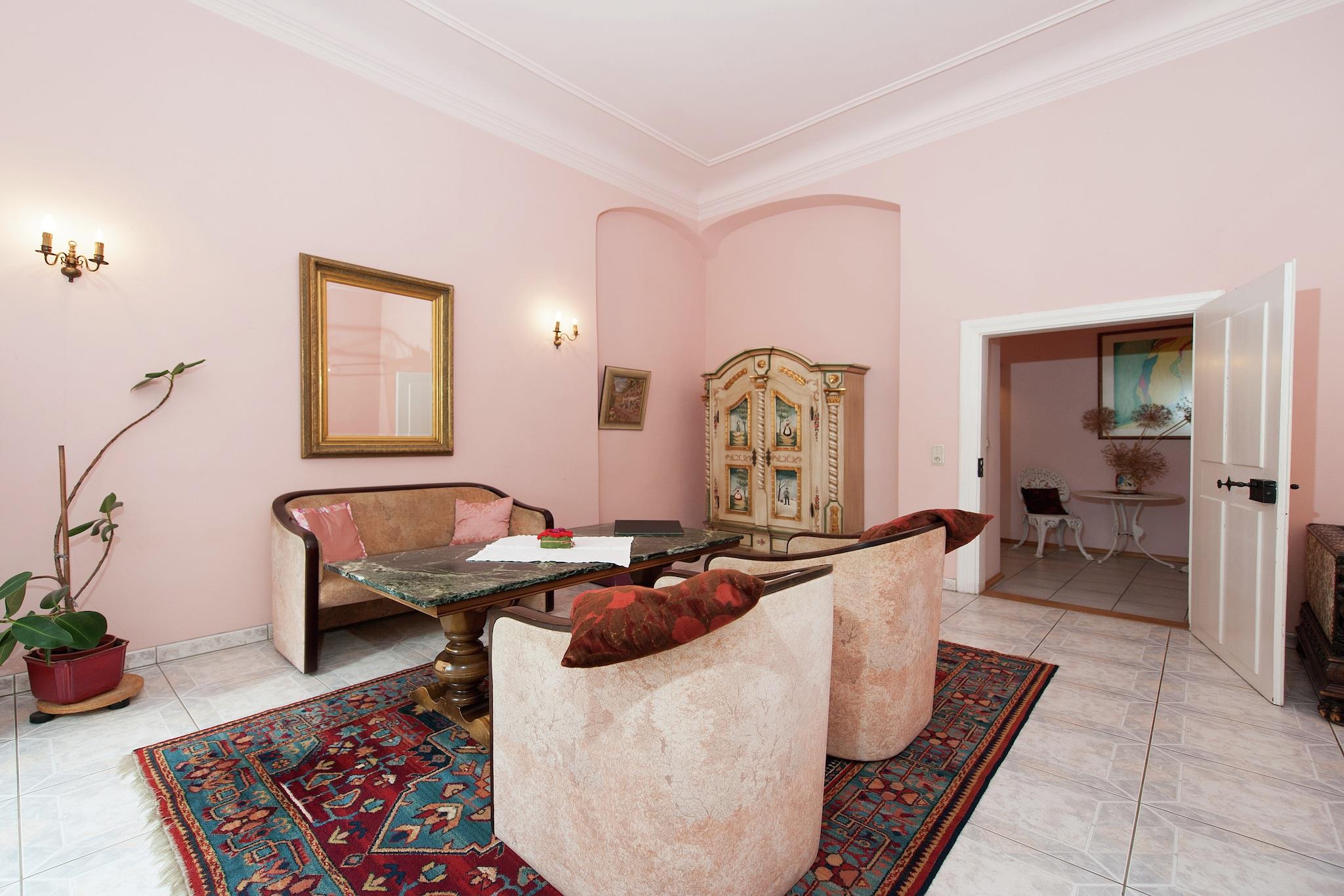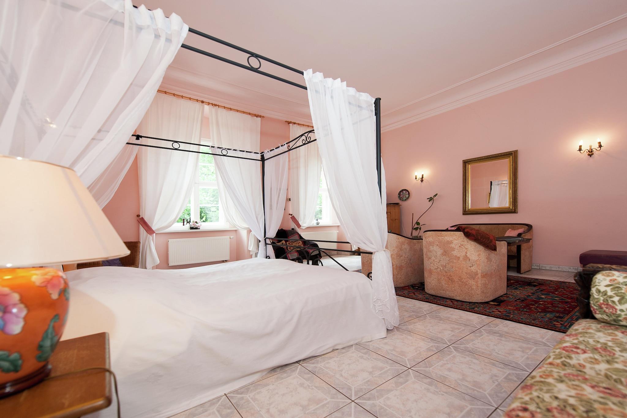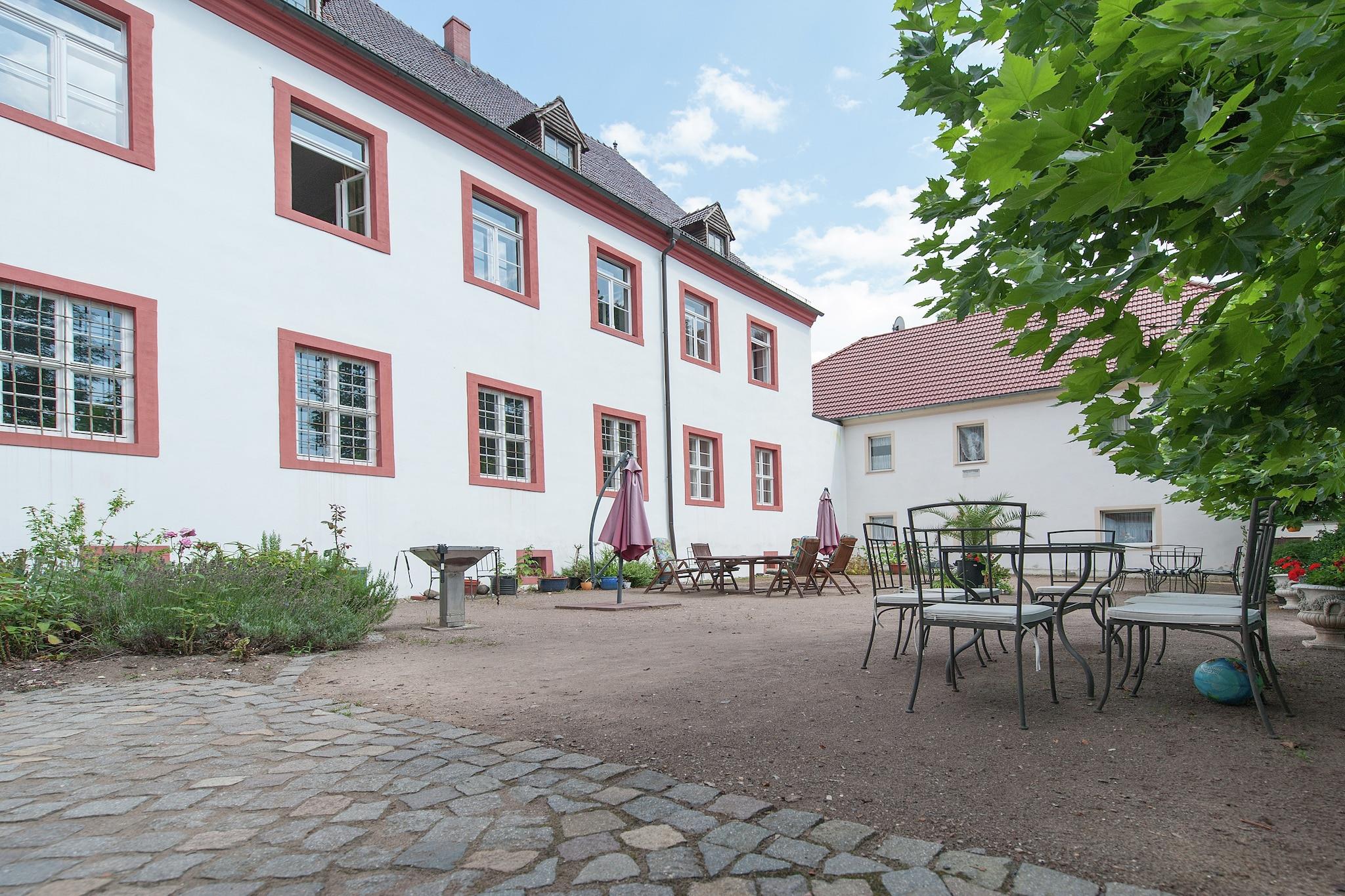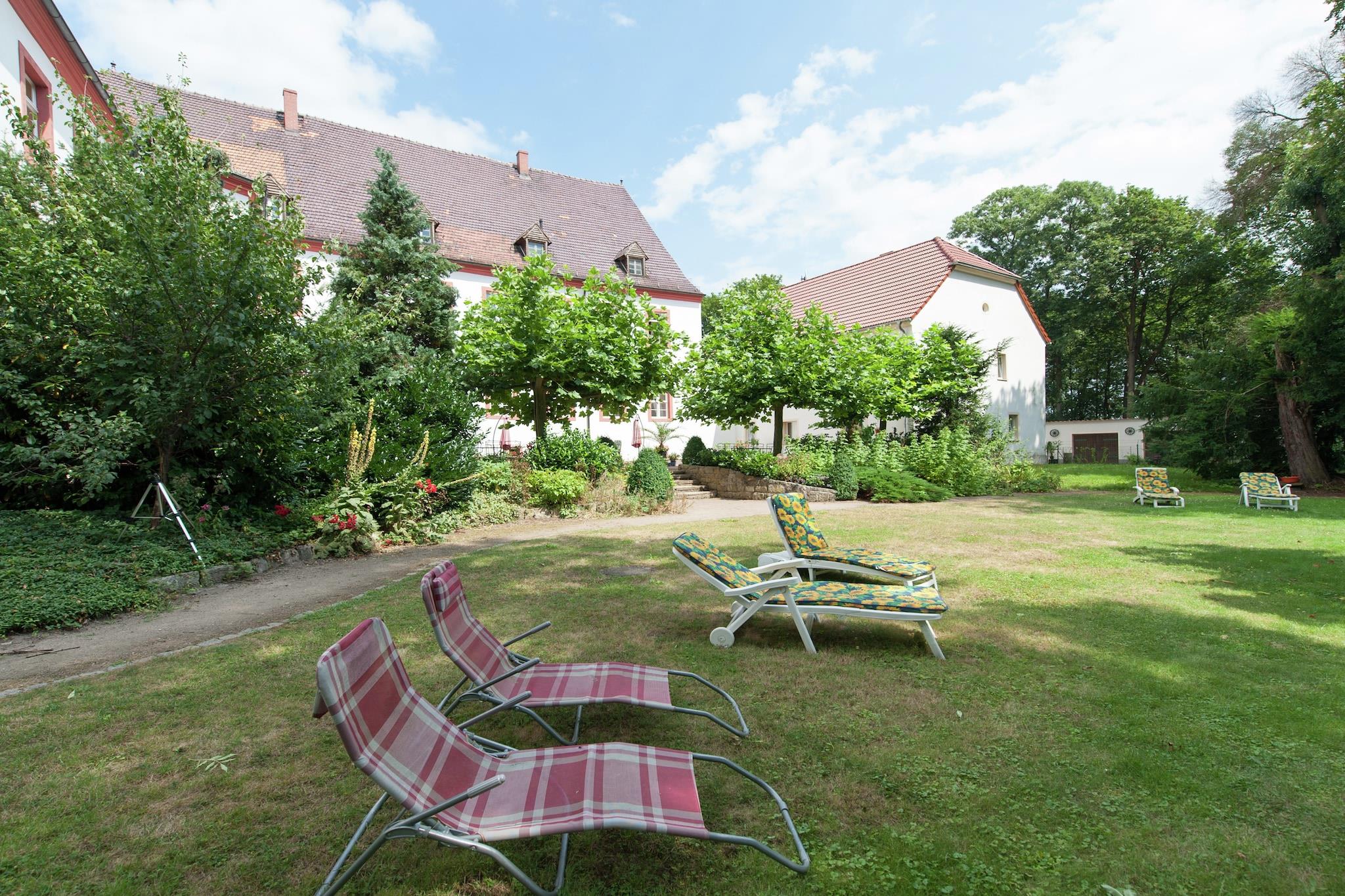 Dieses charmante Studio-Apartment im ersten Stock des wunderschön restaurierten Schlosses Triestewitz bietet einen einzigartigen Aufenthalt im Herzen des sächsischen Kulturdreiecks – zwischen Berlin, Leipzig und Dresden. Das Apartment ist ideal für zwei Personen und verfügt über ein Doppelbett, Sat-TV und eine Küchenzeile mit Kaffeemaschine, Backofen und Waschbecken. Das Badezimmer ist mit einer Badewanne mit Dusche, einem Waschbecken, einer Toilette und einem Haartrockner ausgestattet. Zentralheizung, eine gemeinschaftlich genutzte Waschmaschine und ein Wäschetrockner sorgen für Komfort und Bequemlichkeit. Gäste können den Gemeinschaftsgarten, die Terrasse und den Grillplatz nutzen – ideal zum Entspannen nach einem erlebnisreichen Tag. Das Schlossgelände umfasst einen 3.000 m² großen Garten und Zugang zu einem 16 Hektar großen Park, der sich ideal zum Wandern, Radfahren oder einfach zum Genießen der ruhigen Umgebung eignet. Mit Restaurants (1 km), einem See (1 km) und der Dübener Heide (100 m) in der Nähe ist dieses Apartment ein ruhiger Ausgangspunkt für Naturliebhaber und Kulturinteressierte. Tagesausflüge nach Wittenberg, Potsdam oder Leipzig sind bequem erreichbar.