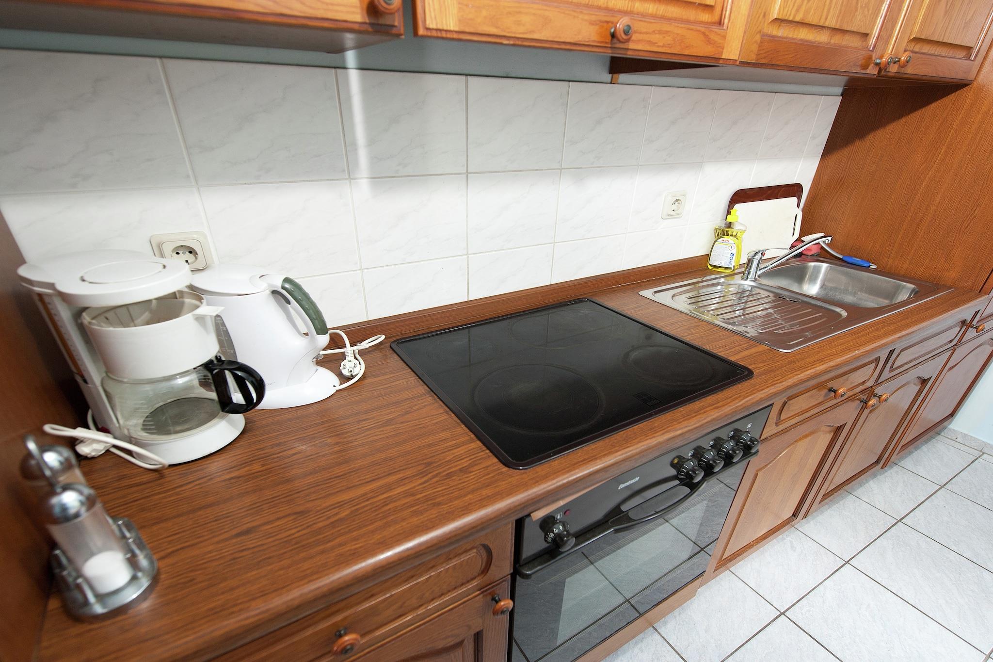 In der 1. Etage: (Kochnische(Kaffeemaschine, Backofen, Waschbecken), Wohn-/Schlafzimmer(Doppelbett, TV(Satellit)), Badezimmer(Badewanne mit Dusche, Waschbecken, Toilette)) Trockner(Gemeinschaftliche Nutzung mit anderen Gästen), Waschmaschine(Gemeinschaftliche Nutzung mit anderen Gästen), Heizung(Zentral), Terrasse, Garten(Gemeinschaftliche Nutzung mit anderen Gästen), Gartenmöbel, Grill