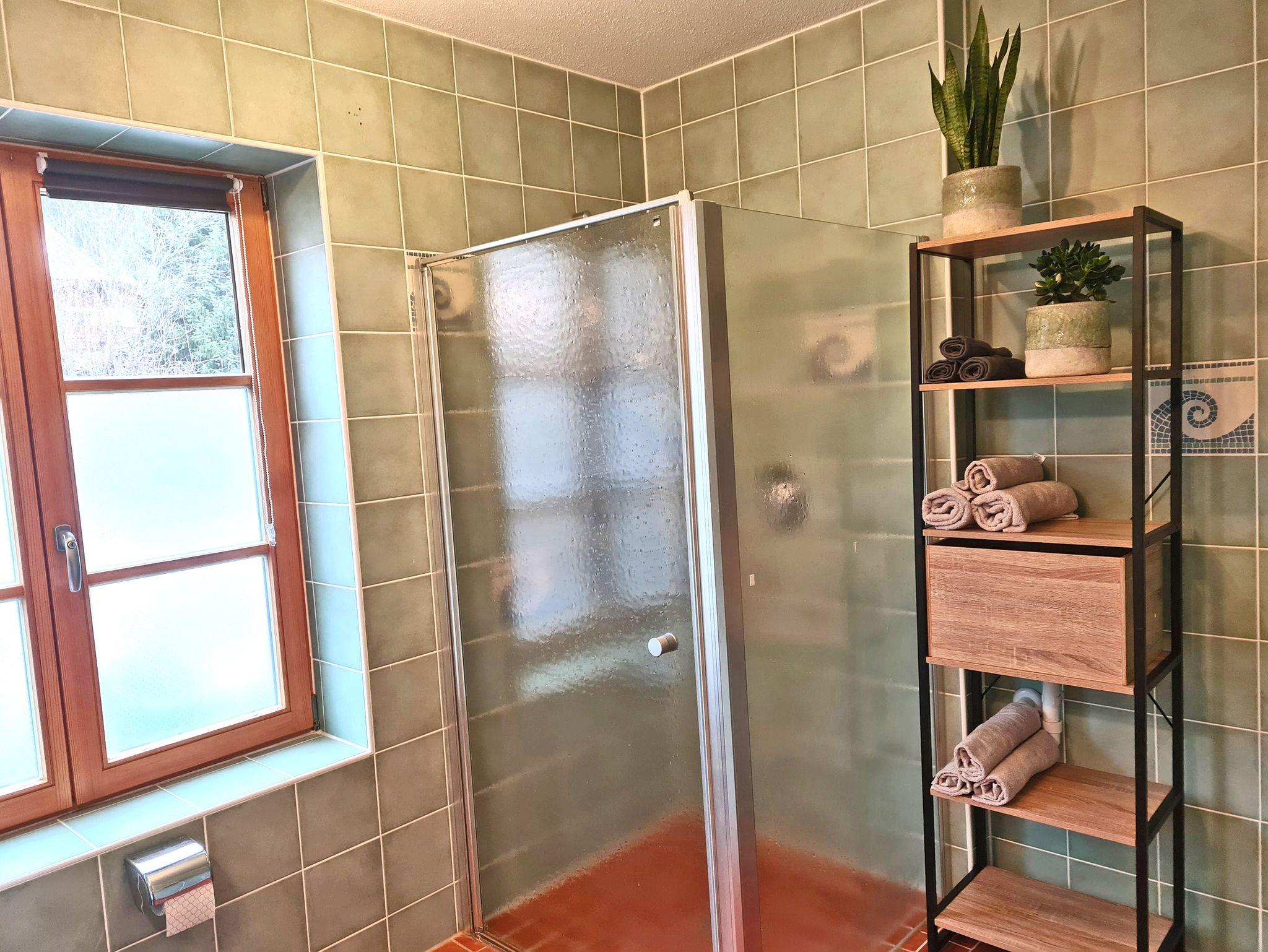 In der gemütlichen 62 qm großen nichtraucher Ferienwohnung mit Terrasse und Liegewiese befindet sich ein separates Schlafzimmer mit großem Doppelbett 180 x 200 cm, einem geräumigen Wohnzimmer mit Kachelofen, Flat-Sat-TV, kostenloses WLAN und Esssitzgruppe sowie einer Küche mit Spülmaschine, Backofen, Gefrierfach, Kaffeemaschine und Wasserkocher. Das Badezimmer mit Tageslicht verfügt über eine ebenerdige Dusche, Fön und Kosmetikspiegel. Außerdem finden Sie einen kleinen Abstellraum mit Zimmersafe in der Wohnung vor. Die Terrasse ist mit einer Sitzgruppe ausgestattet. Bettwäsche und Handtücher sind inklusive. Hunde und Haustiere dürfen nicht mitgebracht werden.