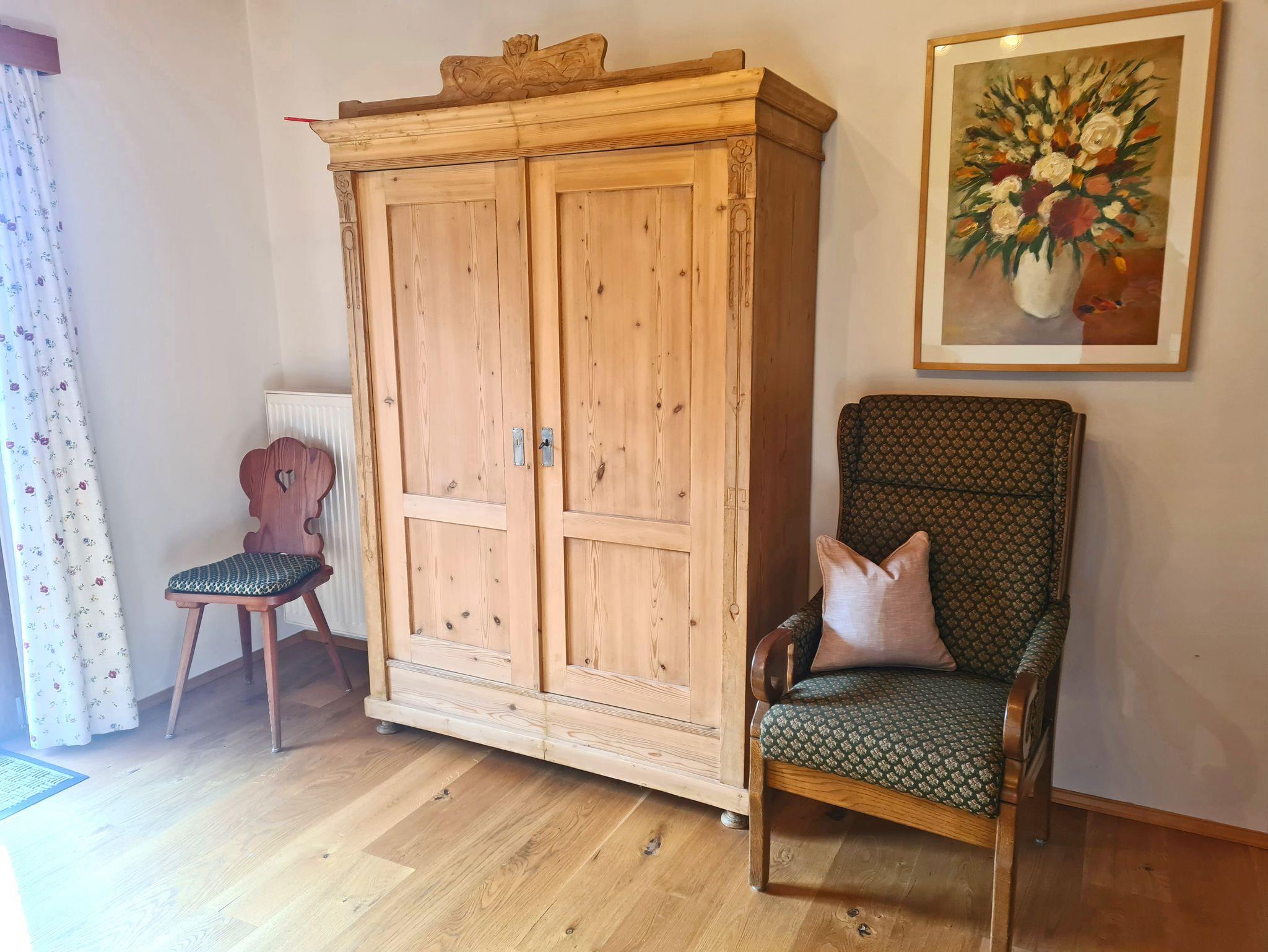 Bei uns können Sie einen großen Garten mit Grillmöglichkeit nutzen und wir bieten Ihnen einen Brötchenservice und auf Wunsch auch einen Einkaufs- und Getränkeservice. Zum Frühstück erhalten Sie regionale Erzeugnisse aus Bayern und Tirol, gerne dürfen Sie Eier von unseren eigenen Hühnern erwerben. Im Sachranger Dorfladen 1 km entfernt, gibt es Bioprodukte und regionale Spezialitäten zu kaufen. Außerdem betreiben wir eine kleine Landwirtschaft mit Pferden, Ziegen, Katzen, Hasen und Hühnern. Auch eine Kutschfahrt ist auf Anfrage möglich. Bei Bedarf gibt es die Möglichkeit im Ort Räder auszuleihen. Die Busverbindung Sachrang - Aschau bis Bernau/Felden am Chiemsee ist für Sie mit der Gästekarte kostenlos. Haustiere und Hunde dürfen nicht mitgebracht werden. Kostenloses WLAN.