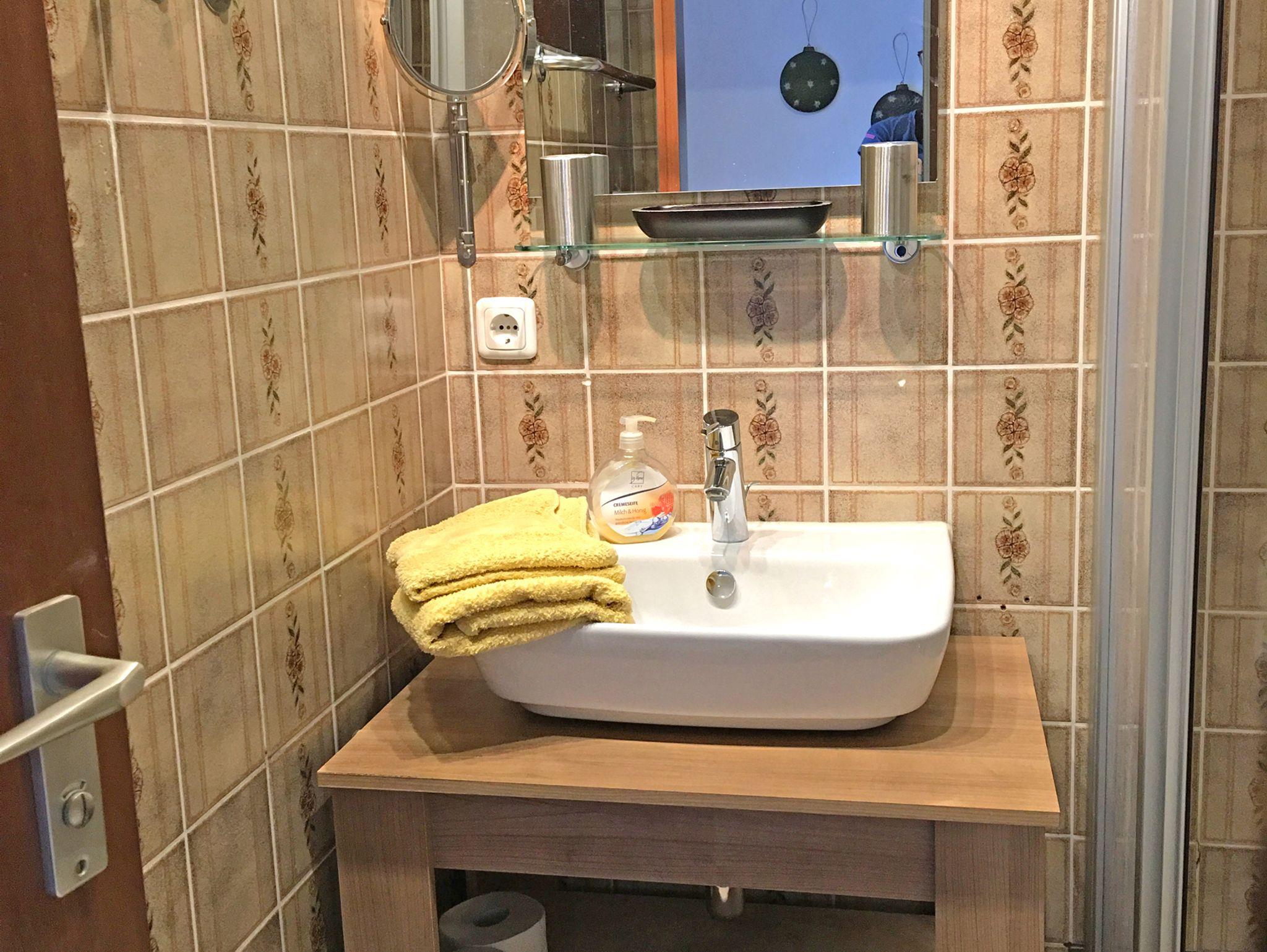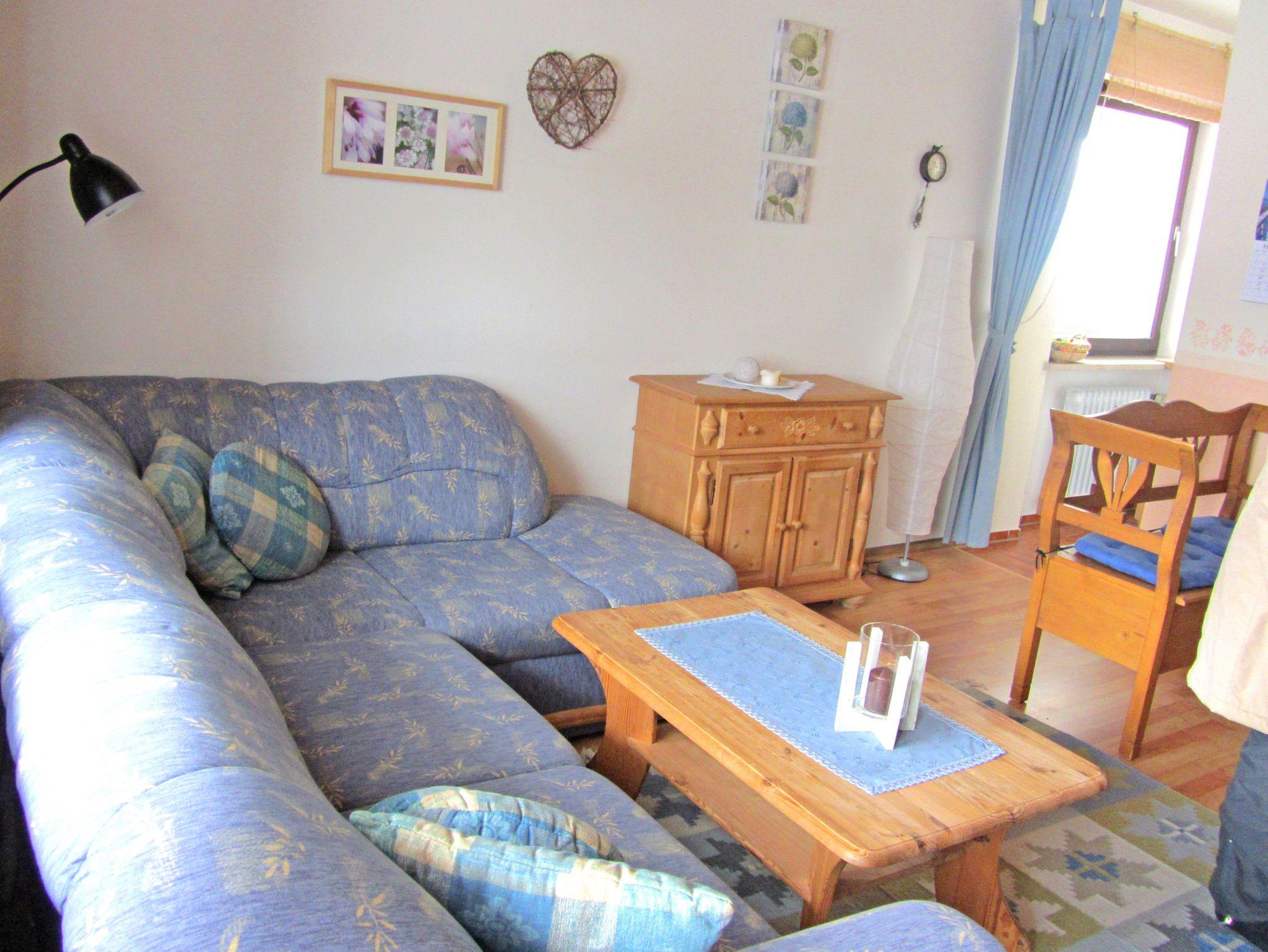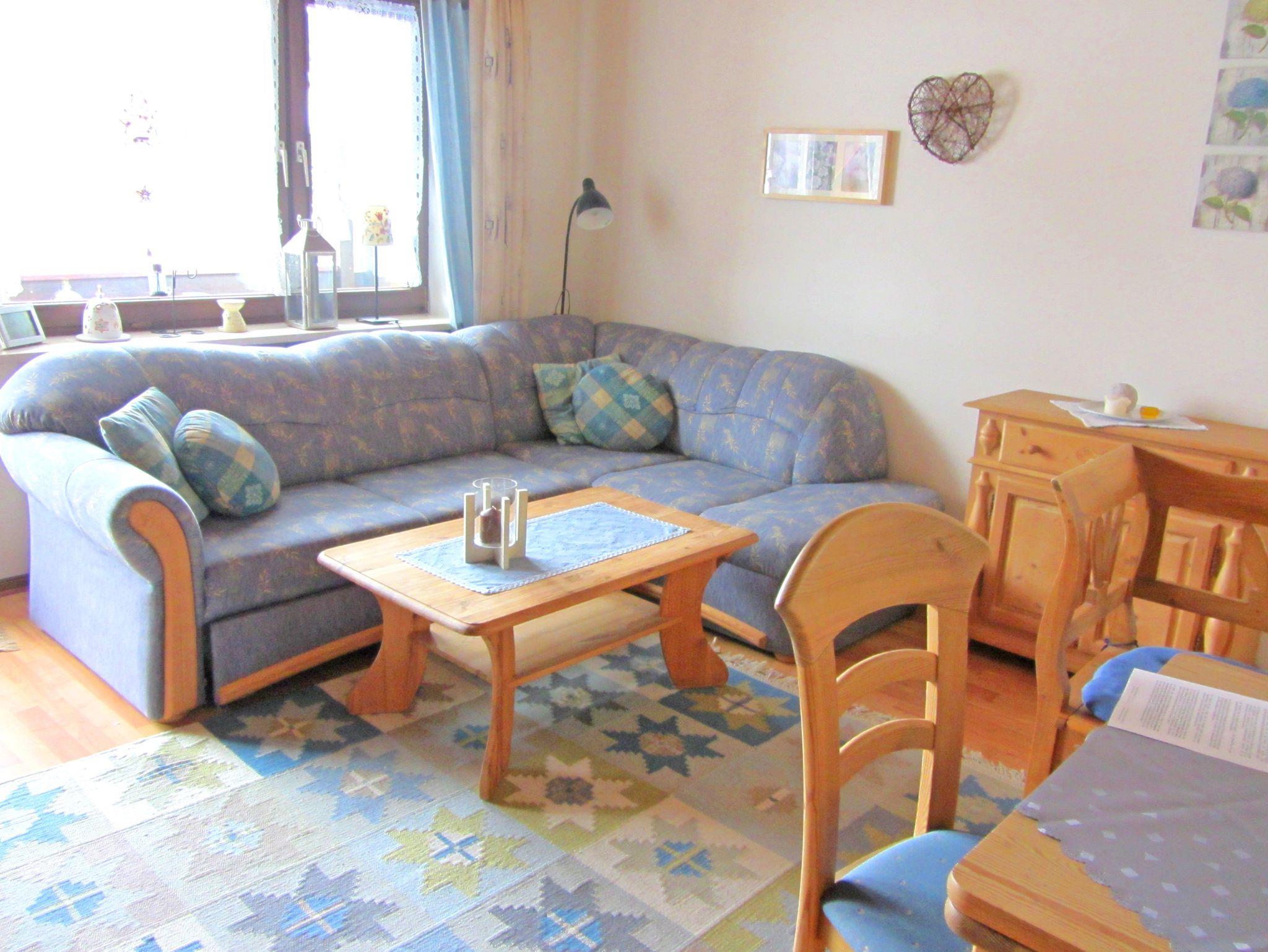 Die helle und gemütlich im Landhausstil eingerichtete, 46 qm große Ferienwohnung mit großem Balkon in Süd-West-Richtung befindet sich im 1. Obergeschoss. Balkonmöbel vorhanden. Das separate Schlafzimmer verfügt über ein Doppelbett (180 x 190 cm). Im Wohnraum finden Sie eine große Couch, Flat-TV und einen Essplatz vor. Das Badezimmer ist mit Dusche und WC ausgestattet. Bettwäsche und Handtücher inklusive. Nutzen Sie kostenloses WLAN. Sauna gegen Gebühr im Haus. Gerne dürfen Sie gegen Aufpreis einen Hund mitbringen.