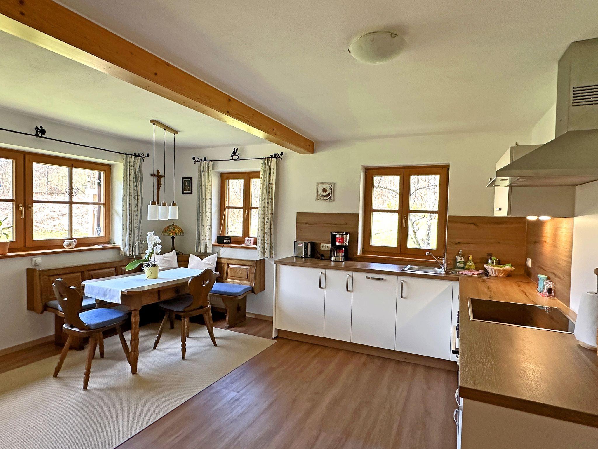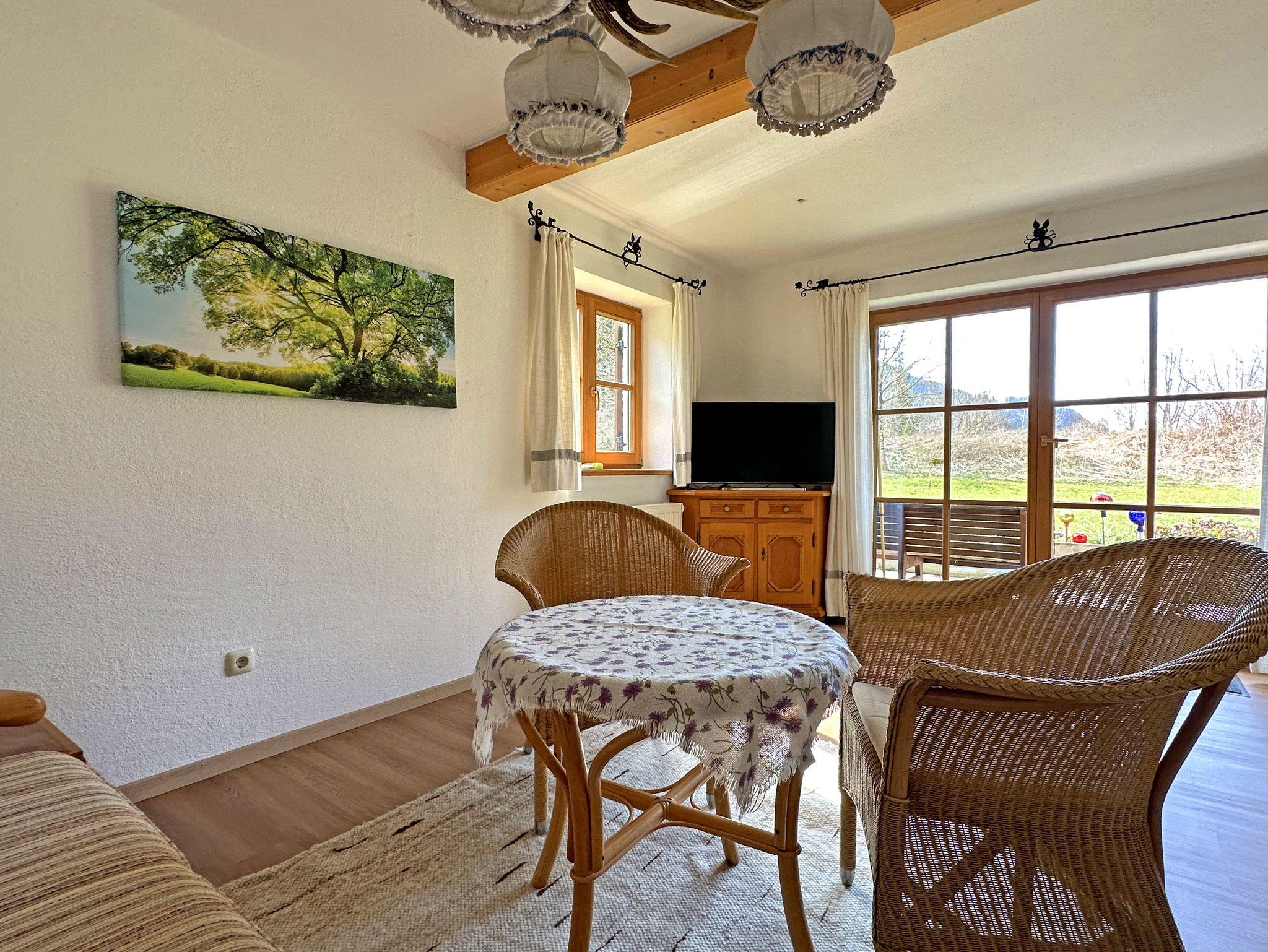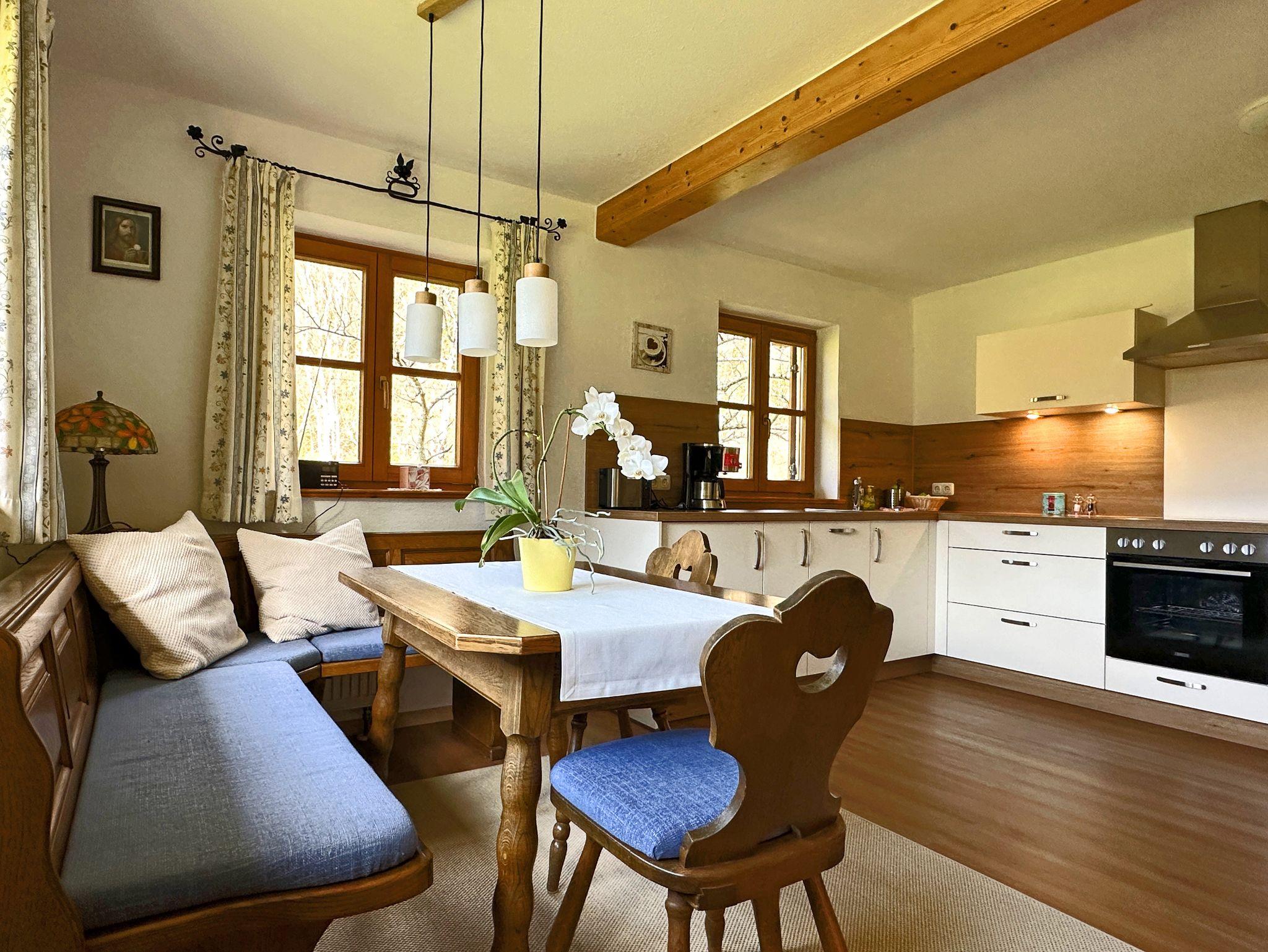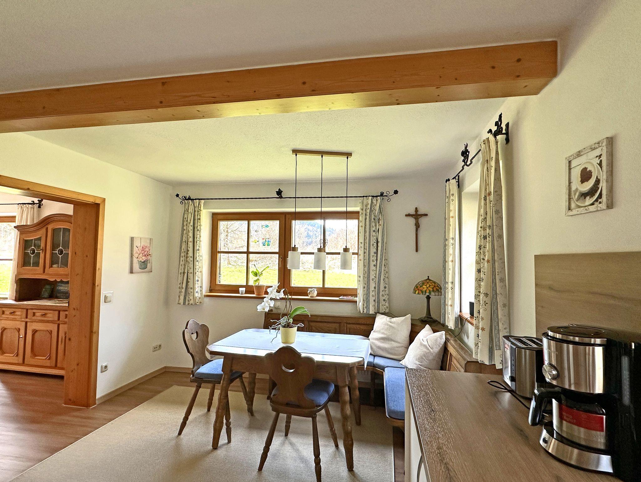 Entfliehen Sie dem Alltag und erleben Sie pure Entspannung in Ihrem gemütlichen Ferienhaus im Grünen umrahmt von den Bergen! Willkommen in einer traumhaften Oase, umgeben von malerischen Wiesen und duftenden Wäldern, nur 1,5 Kilometer vom idyllischen Bergsteigerdorf Sachrang bei Aschau im Chiemgau entfernt. Genießen Sie auf 75 Quadratmetern großzügigen und lichtdurchfluteten Wohnkomfort – ideal für zwei Personen. Die einladende Süd-Terrasse und die weitläufige Liegewiese laden zum Sonnenbaden und Durchatmen ein oder für gemütliche Erholungsmomente beim Frühstück oder Ausklang am Abend. Ihr Feriendomizil bietet Ihnen zudem erstklassige Annehmlichkeiten: Brötchenservice vom Bäcker geliefert, kostenloses WLAN, einen privaten Parkplatz direkt am Haus, eine absperrbare Fahrradgarage mit E-Bike-Ladestation und eine Bushaltestelle nur 100 Meter entfernt. Bitte beachten Sie, dass Hunde und andere Haustiere leider nicht gestattet sind.