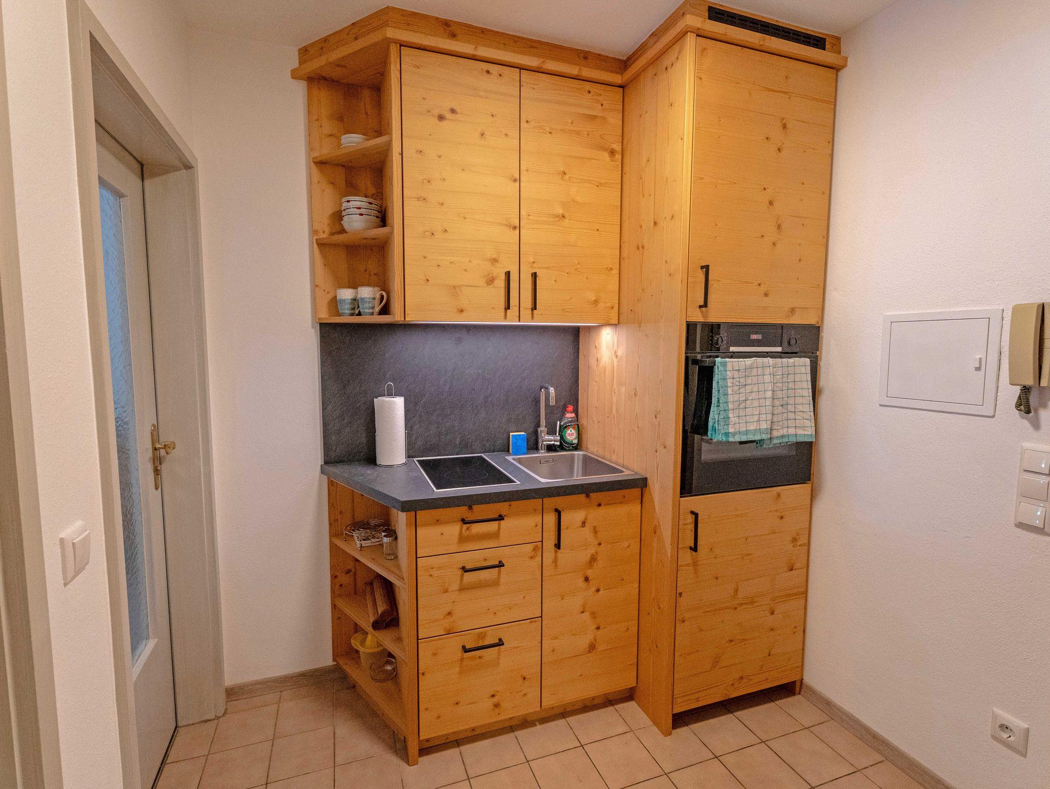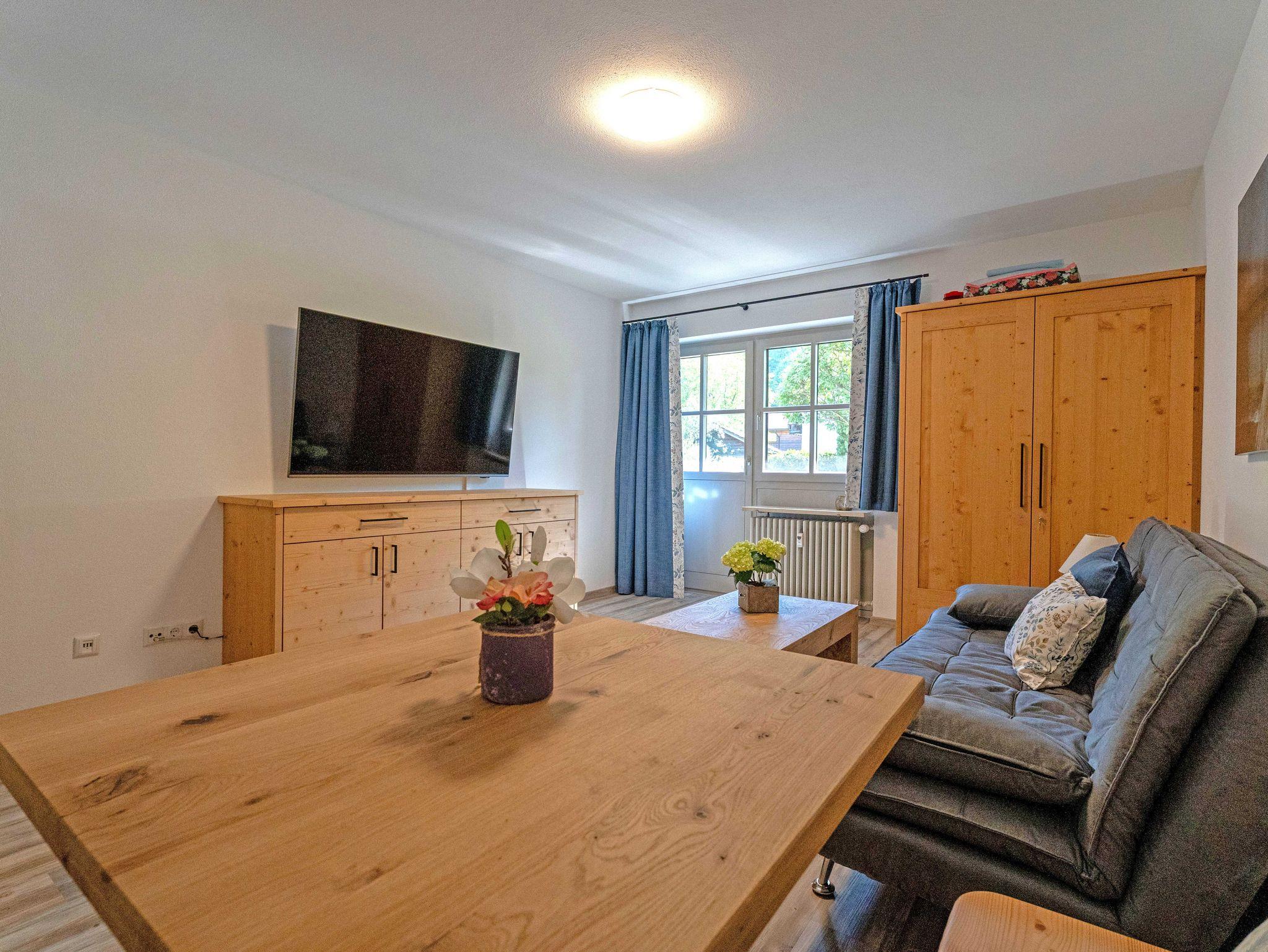 Ihr Rückzugsort mit Panoramablick – Entspannung pur! Willkommen in Ihrer gemütlichen, frisch renovierten Ferienwohnung – perfekt für 2 bis 3 Personen, die einen erholsamen Urlaub in den Bergen genießen möchten. Hier erwarten Sie helle Räume mit Vinyl-Bodenfliesen und einer angenehmen Atmosphäre: Das Schlafzimmer mit einem komfortablen Doppelbett (185 x 205 cm) und großzügigem Stauraum verspricht erholsame Nächte. Im Wohnzimmer lädt eine gemütliche Schlafcouch für die 3. Person (196 x 92 cm) zur Entspannung ein, während der große Flachbild-Fernseher für Unterhaltung sorgt. Eine charmante Ess-Ecke und ein stilvolles Sideboard runden das Ambiente ab. Die separate kleine Küche ist bestens ausgestattet – Backofen mit integrierter Mikrowelle, Kühlschrank mit Gefrierfach und ein Ceranfeld mit zwei Kochplatten sorgen dafür, dass Sie nach Herzenslust kochen können. Geschirr für Kochen und Essen ist selbstverständlich vorhanden.