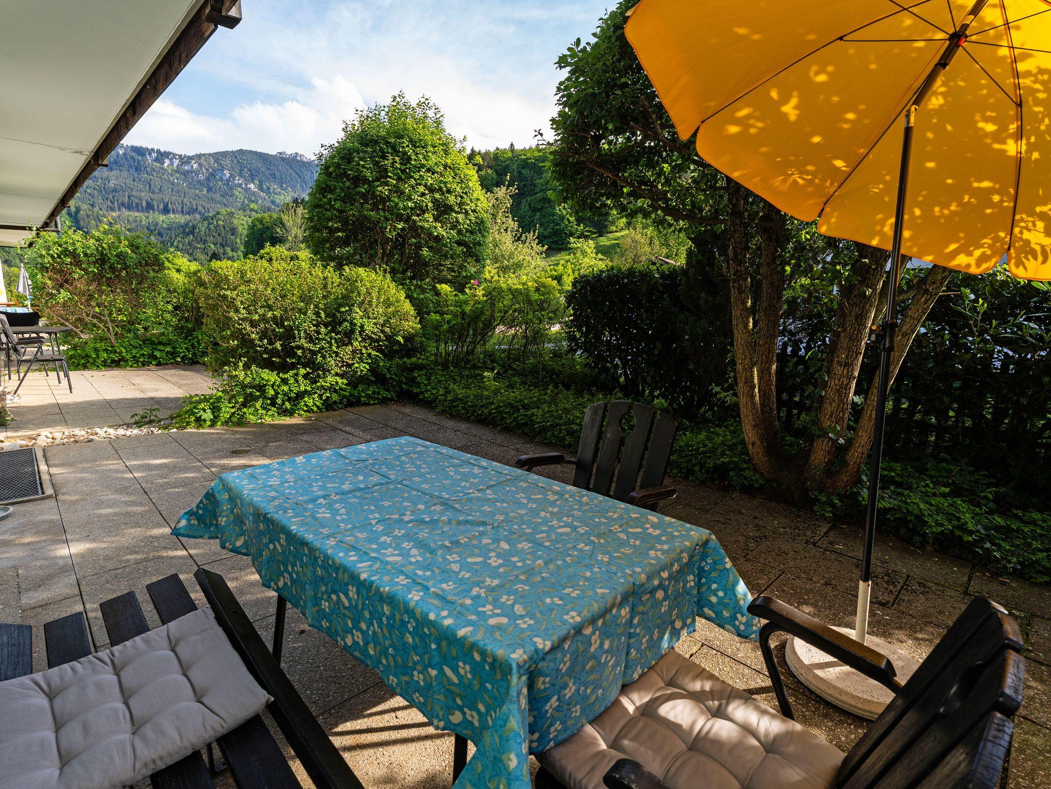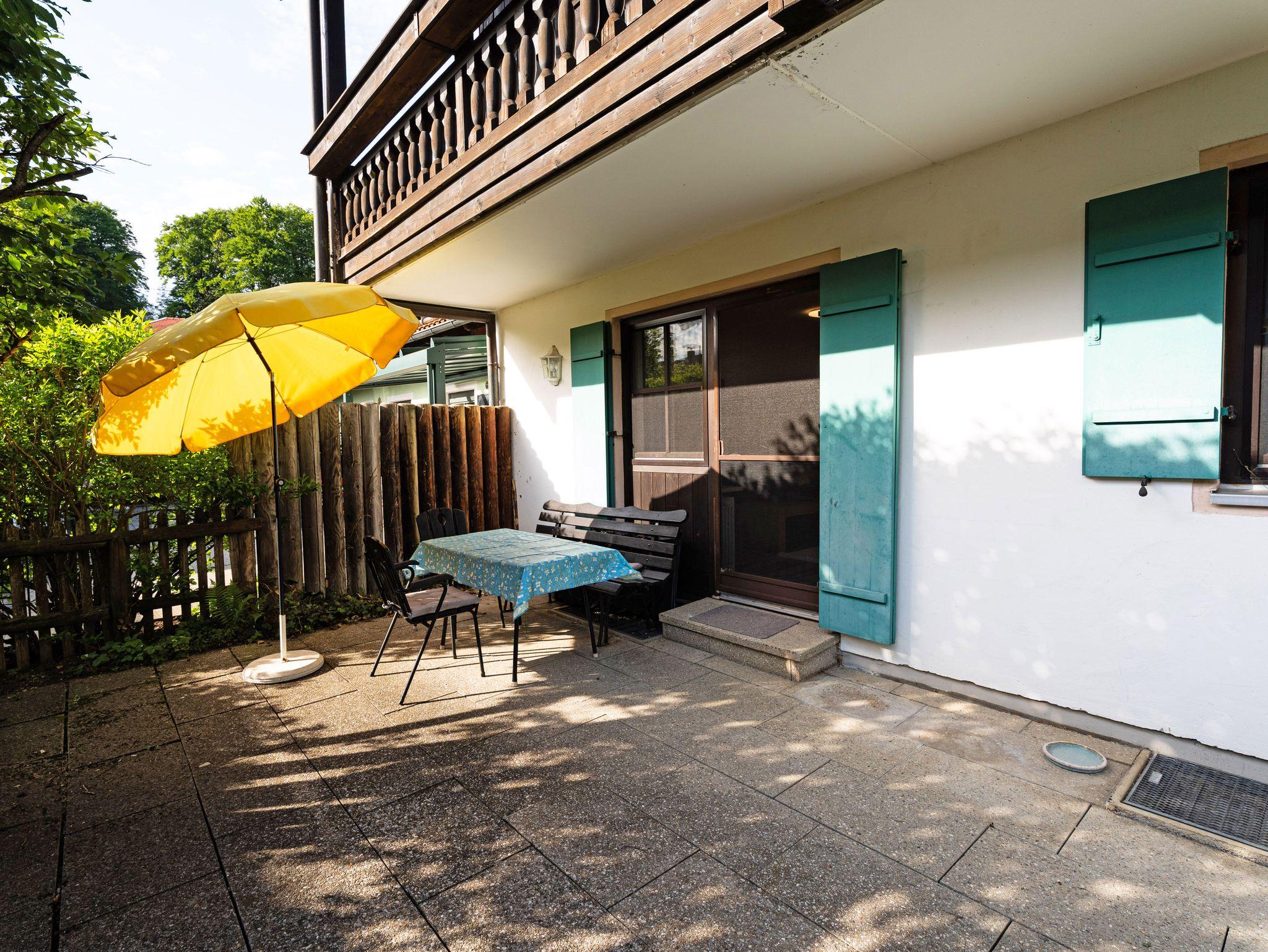 Draußen erwartet Sie eine großzügige 10 qm große Terrasse mit Gartenmöbeln, Sonnenliege und Sonnenschirm in Süd-West-Lage – Ihr perfekter Ort für entspannte Stunden unter freiem Himmel. Bitte beachten Sie, dass Hunde und Haustiere in unserer Ferienwohnung nicht erlaubt sind.