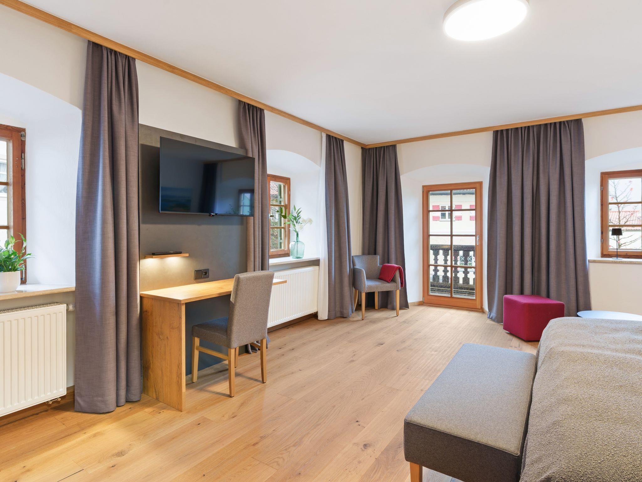 Zur Ausstattung gehören moderne Annehmlichkeiten wie Dusche, WC, Fön, Smart-Kabel-TV, Safe, W-LAN, Kofferablage sowie ein Schreibtisch, der sich auch ideal fürs Homeoffice eignet.