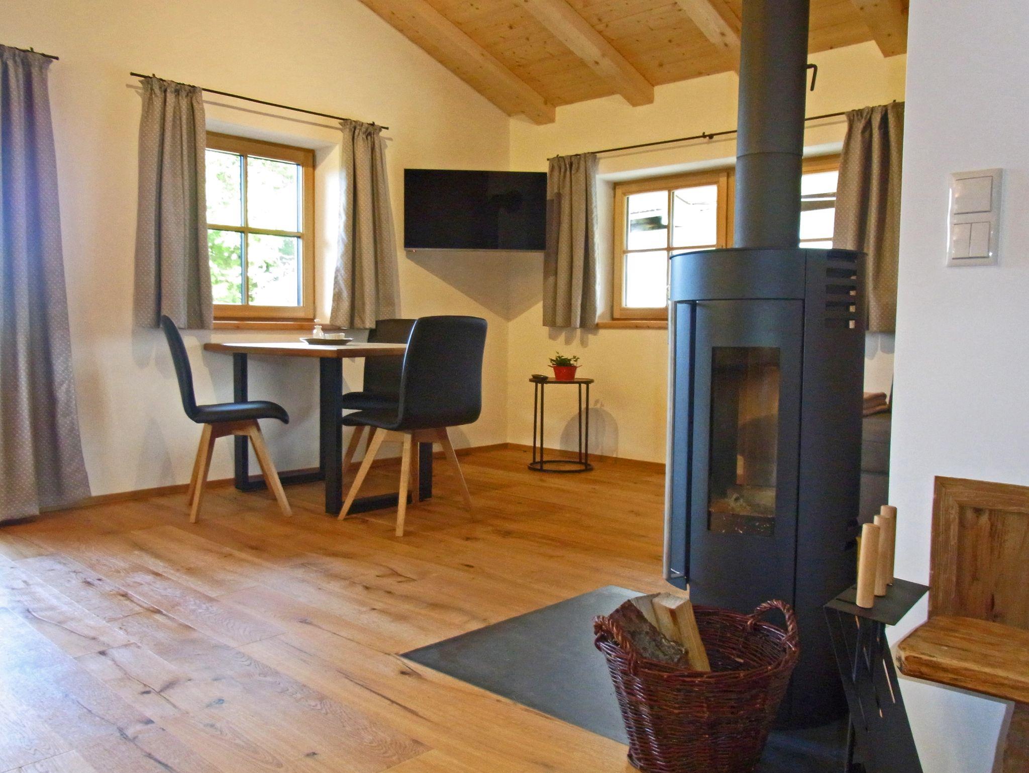 Sie wohnen in unserer Ferienwohnung s´Zuahäusl im 1. Stock mit 55 qm und herrlichem Süd- und Westbalkon, für Ihre Wohlfühltage bei uns in Göttersberg. Großer offener Wohnraum mit moderner Küchenzeile, gut ausgestattet mit Spülmaschine, Herd mit Ceranfeld/Backofen, Kühlschrank/Tiefkühlfach, gemütliche große Sofaecke, SAT-TV, kostenloses WLAN und Leseecke. Die Wohnung ist mit Naturholzböden, Fußbodenheizung und einen Kaminofen für die urige Gemütlichkeit. Das Schlafzimmer in Naturholzausstattung, Doppelbett 180 x 200 m mit Komfortmatratzen, Bettwäsche und Leselampen. Süd- und Westbalkon mit herrlichem Ausblick nach Aschau und auf die Berge. Badezimmer mit Dusche/WC, großer Handtuchheizkörper und Fußbodenheizung. Fön, Handtücher und Badetücher sind vorhanden. Hunde und Haustiere dürfen nicht mitgebracht werden.