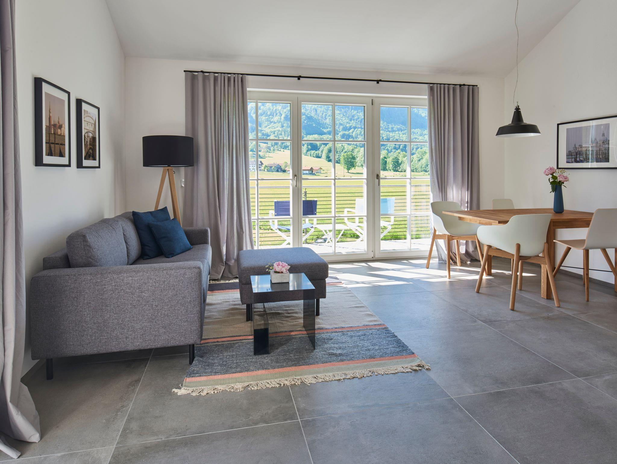 Hereinspaziert! In ruhiger und dabei zentrumsnaher Ortsrandlage erwarten Sie in unserem 2016 errichteten Haus zwei bildschöne Ferienwohnungen für zwei bis vier bzw. fünf Personen. Mit großen Fenstern samt jeder Menge Ausblick auf die Berge (die eine) und das Dorf (die andere) und ausgestattet mit allem, was man in einer „Ferienheimat“ braucht, sind sie der ideale Ankerplatz für Ihre Urlaubstage in den Chiemgauer Bergen. Fürs entspannte Wohngefühl sorgen Möbel und Accessoires aus natürlichen Materialien, in klaren Formen und ruhigen Farben. Freuen Sie sich auf ein Ferienrefugium, in dem es ebenso viel Spaß macht, nach einem erlebnisreichen Tag heimzukommen wie morgens loszuziehen.