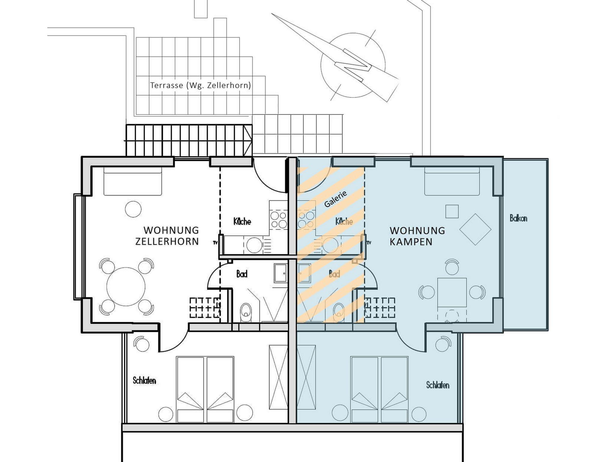 Ferienwohnungen am Lochbach, Ferienwohnung Kampen 57 qm, separates Schlafzimmer und Balkon