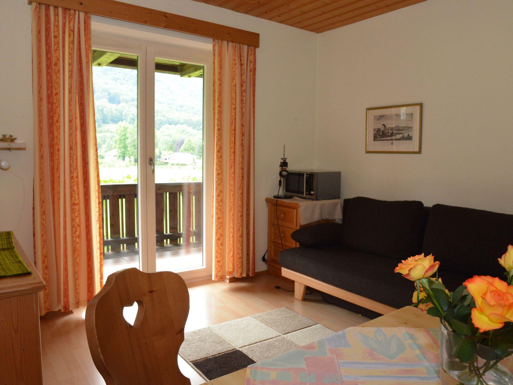 Gemütlich komfortabel und liebevoll eingerichtete Ferienwohnung (50 qm) im 1. Obergeschoss mit großem Süd-West-Balkon und herrlichem Gebirgsblick. Separates Schlafzimmer mit einem Doppelbett 1,8 m x 2 m. Komplett ausgestattete Wohnküche mit Kaffeemaschine, Toaster, Ausziehcouch, Kabel-HD-TV und kostenloses WLAN. Badezimmer mit Dusche/WC. Handtücher und Bettwäsche stehen zur Verfügung. Gerne dürfen Sie gegen Aufpreis einen Hund mitnehmen.