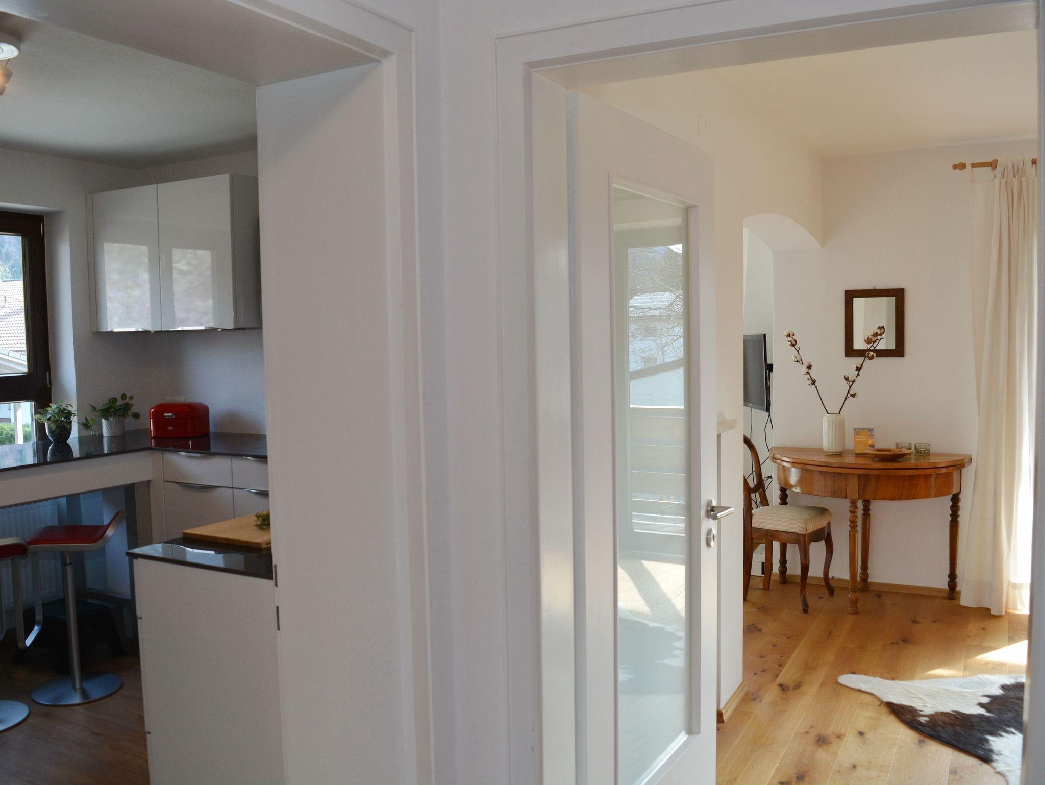 Das Wohlfühlapartment Zillibilly in Aschau im Chiemgau bietet Platz für bis zu 3 Personen und befindet sich in der 1. Etage eines 3-Familienhauses. Es eignet sich besonders für Alleinreisende, Paare oder kleine Familien, die eine entspannte Zeit in der Natur verbringen möchten. Das Domizil vereint Vintage- und moderne Elemente, die durch natürliche Farben, Farbakzenten und Stoffe eine gemütliche Atmosphäre schaffen. Der Wohn- und Essbereich ist der zentrale Raum der Wohnung und lädt nicht nur zum Lesen auf dem Sofa ein. Genießen Sie die Auszeit auch auf dem Südbalkon, welcher über den Wohnbereich betreten werden kann. Jeder Hobbykoch schwingt sicherlich gerne in der topausgestatteten Küche, welche mit großer und hoher Arbeitsfläche, Induktionskochfeld, hohem Backofen uvm ausgestattet ist, seinen Kochlöffel. Im Badezimmer mit einer Walk-In Regendusche können Gäste sich erfrischen, um danach den Abend im Chiemgau ausklingen zu lassen. Nach einem ereignisreichen Tag fällt man dann gerne in das Doppelbett des Schlafzimmers. Ein Einzelbett ist in einer Nische des Wohnbereiches gegeben, welches durch einen Paravant auch optisch von diesem getrennt werden kann.