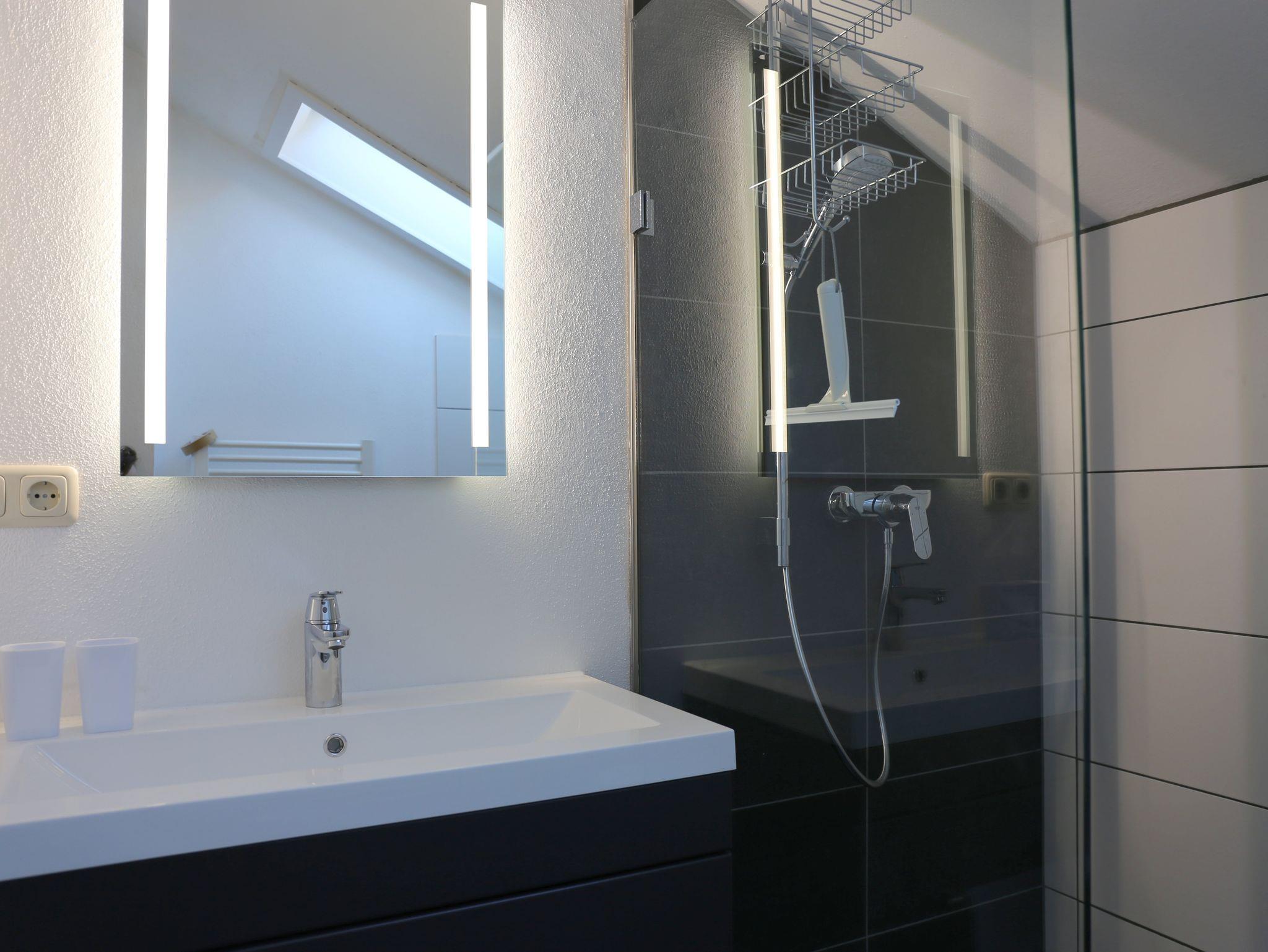 Der Aufgang in die 88 qm Wohnung führt über eine große West-Terrasse mit separatem Wohnungseingang. Die Wohnung verfügt über 4,5 Zimmer mit zwei Bädern, Westterrasse und Südbalkon und erstreckt sich über den ganzen ersten Stock eines Einfamilienhauses. Küche mit Vollausstattung, wie Kühl- und Gefrierschrank, Spülmaschine, Herd mit Backofen und Ceranfeld, Mikrowelle mit Mikrowellengeschirr, Nespresso Kaffeemaschine, Filterkaffeemaschine, Toaster, Wasserkocher und inklusive aller notwendigen Kochutensilien, einem großzügig gestalteten Essbereich sowie einem gemütlichen Ohrensessel zum Relaxen. Ein kleiner weiterer Raum, welcher als Bibliothek dient, lädt zum Entspannen ein, und verfügt über eine angenehme, entspannende Sitzgelegenheit. Wohnzimmer mit ausziehbarer Schlafcouch, Schwedenofen, Flachbild TV, kostenloses WLAN und direkter Zugang auf den Südbalkon. Zwei Schlafzimmer mit Doppelbetten: 1 x 2,00 m x 2,00 m und im zweiten 1,80 m x 2,00 m. Ein großes Bad mit Dusche, Duschsitz, WC und ein kleineres Bad beim zweiten Schlafzimmer mit Dusche/WC und Waschbecken. Bettwäsche und Handtücher sind vorhanden. Starterset für unsere Gäste: Kaffeekapseln, Tee, Zucker, Öl, Essig, Salz, Pfeffer, Toilettenpapier und Seife. Elektrogrill, Parkplatz direkt vor dem Haus, Garage für Abstellen der Räder, Garage auch separat anzumieten für Autounterbringung.