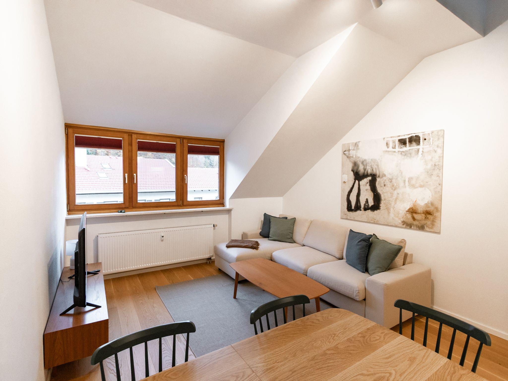Die Wohnungen sind hochwertig ausgestattet und bieten alles, was das Herz begehrt: edle Parkettböden, eine moderne Küche, eine eigene Waschmaschine sowie einen Balkon mit unverstelltem Blick auf die Berge. Die ruhige Lage am Waldrand macht das Haus zum idealen Rückzugsort für Naturliebhaber, Ruhesuchende und Bergfreunde.