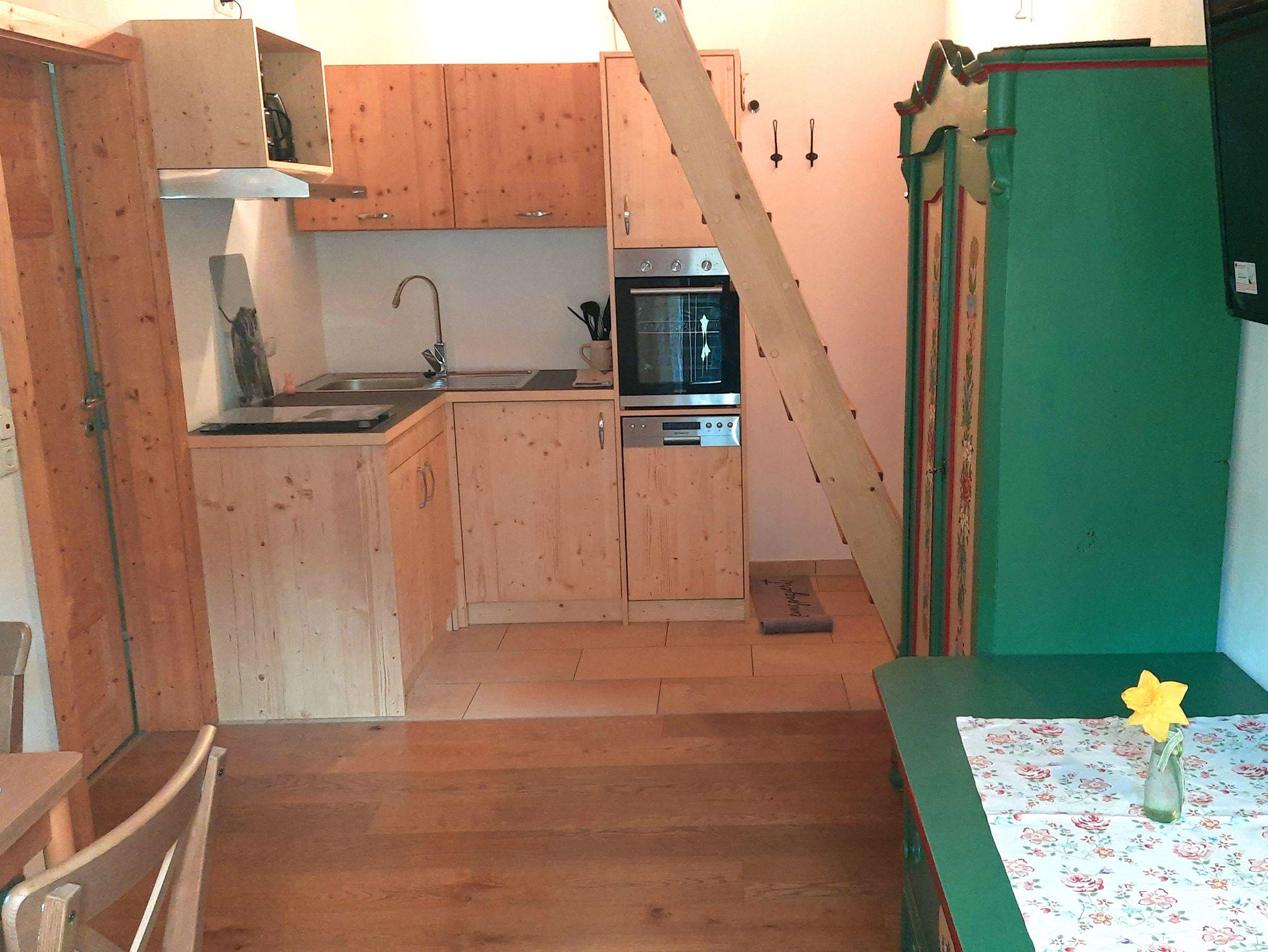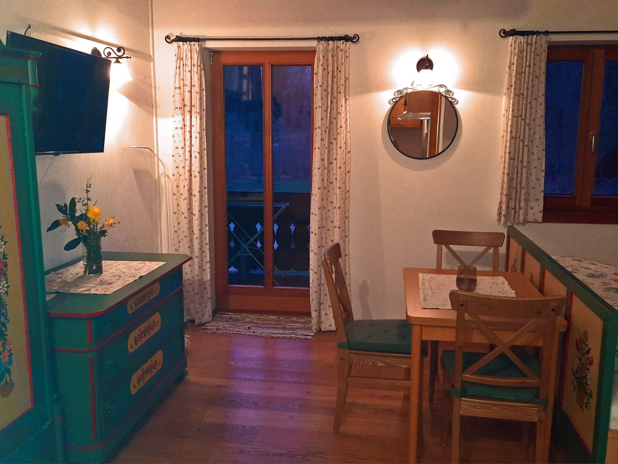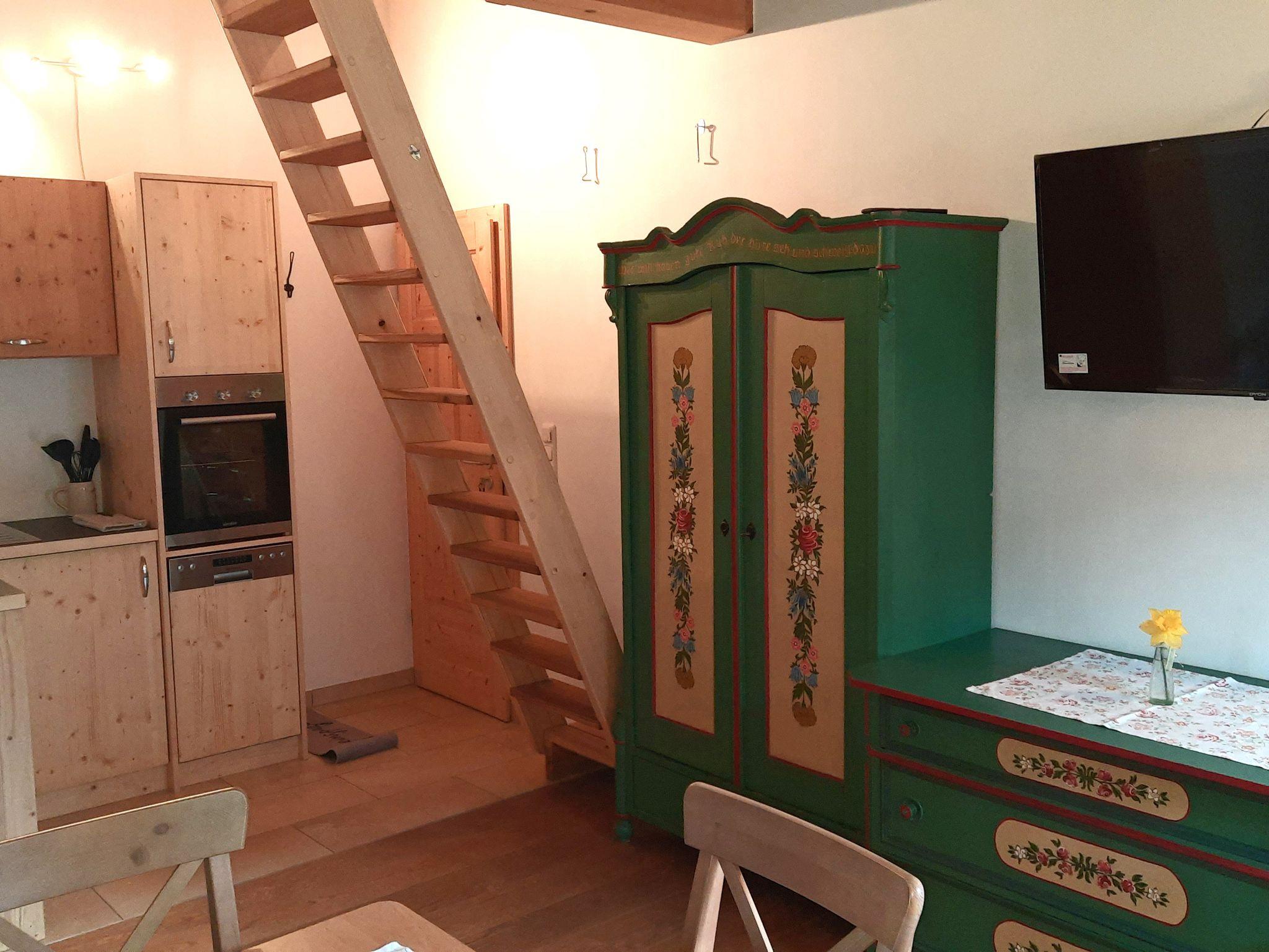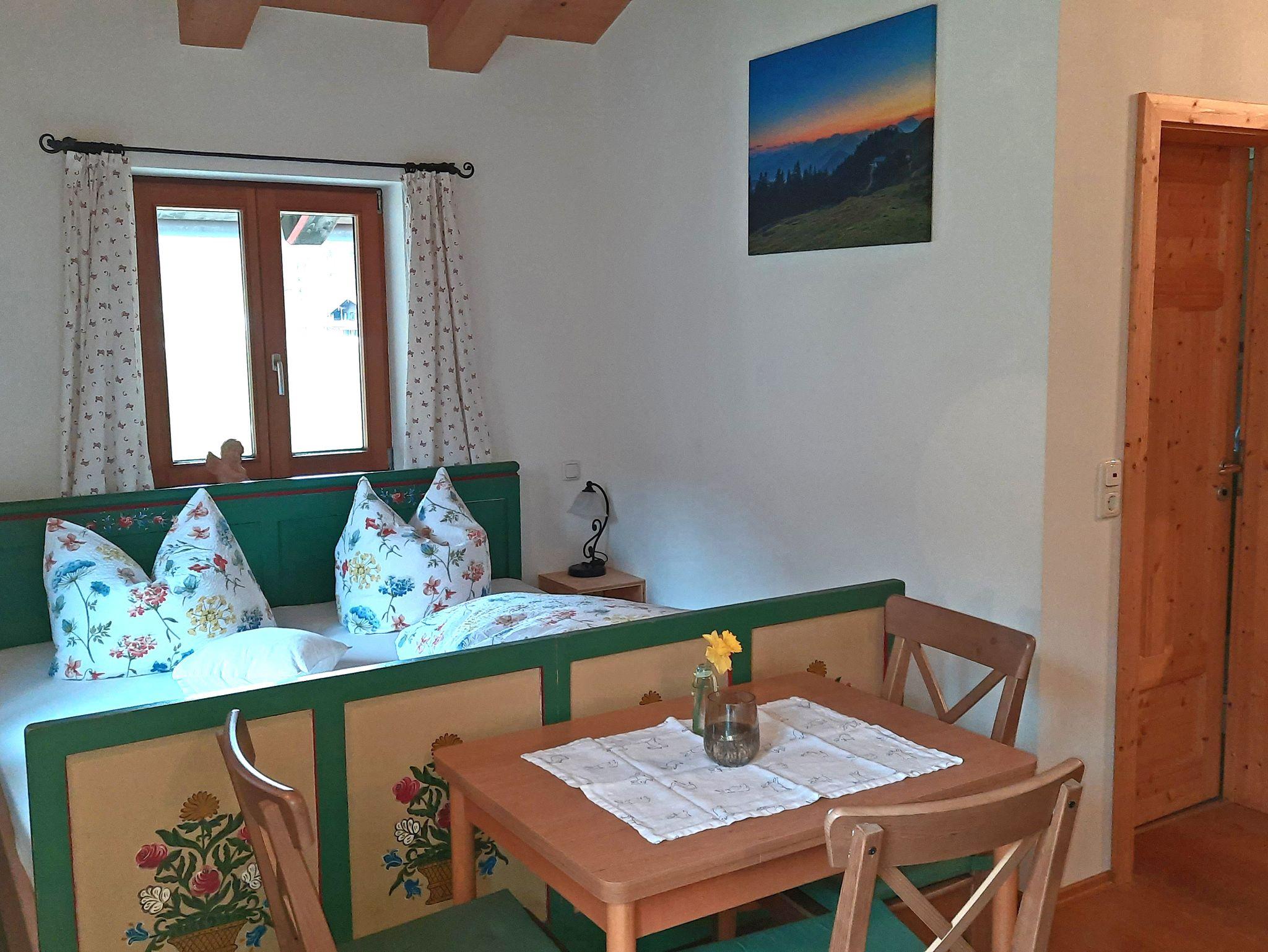 Unsere Nichtraucher Ferienwohnung Juchhee 35 qm für 2 - 3 Personen im zweiten Stock unseres Bauernhauses bietet Ihnen einen Balkon mit traumhaften Bergblick. Ein Wohn- und Schlafraum mit Doppelbett 180x200 cm, Flat-SAT-TV, kostenloses W-LAN, Küchenzeile und einen Esstisch, behaglich mit Holzböden und Fußbodenheizung. Die Küchenzeile ist mit einem Herd/Backofen, Geschirrspüler, Kaffeemaschine, Kühlschrank/Tiefkühlfach, Toaster und Wasserkocher ausgestattet. Badezimmer mit Dusche/WC und Fön. Handtücher und Bettwäsche sind vorhanden. Auf der Galerie finden Sie eine weitere Schlafmöglichkeit mit einem französischen Bett 140x200 cm. Die Galerie ist über eine ein- und aufklappbare sportlich-steile Treppe (!) zu erreichen und nur für trittsichere Personen geeignet. Gegen Aufpreis dürfen auch zwei Kinder übernachten. Auf Anfrage können wir ein Babybett und ein Hochstuhl bereitstellen. Gerne können Sie auf Anfrage vor Ort ein Frühstück dazu buchen. Haustiere dürfen nicht mitgebracht werden.