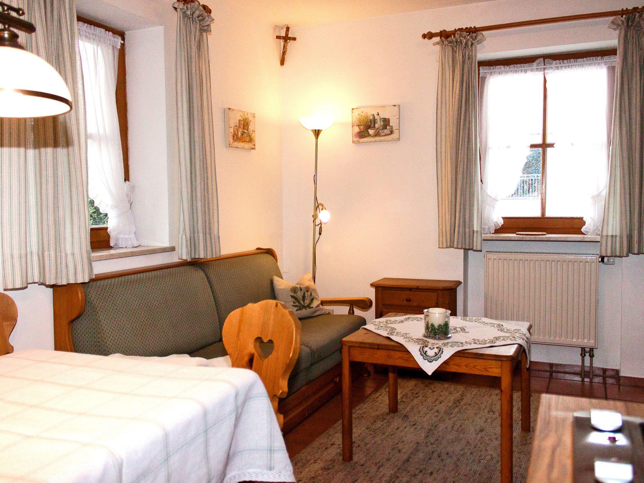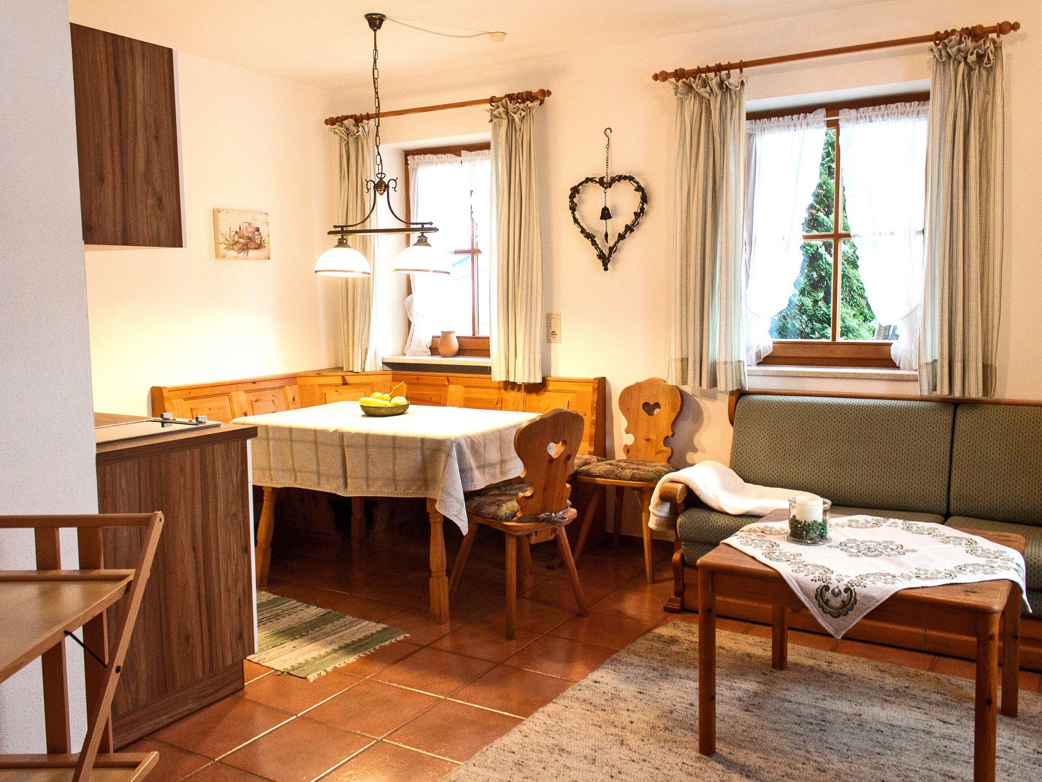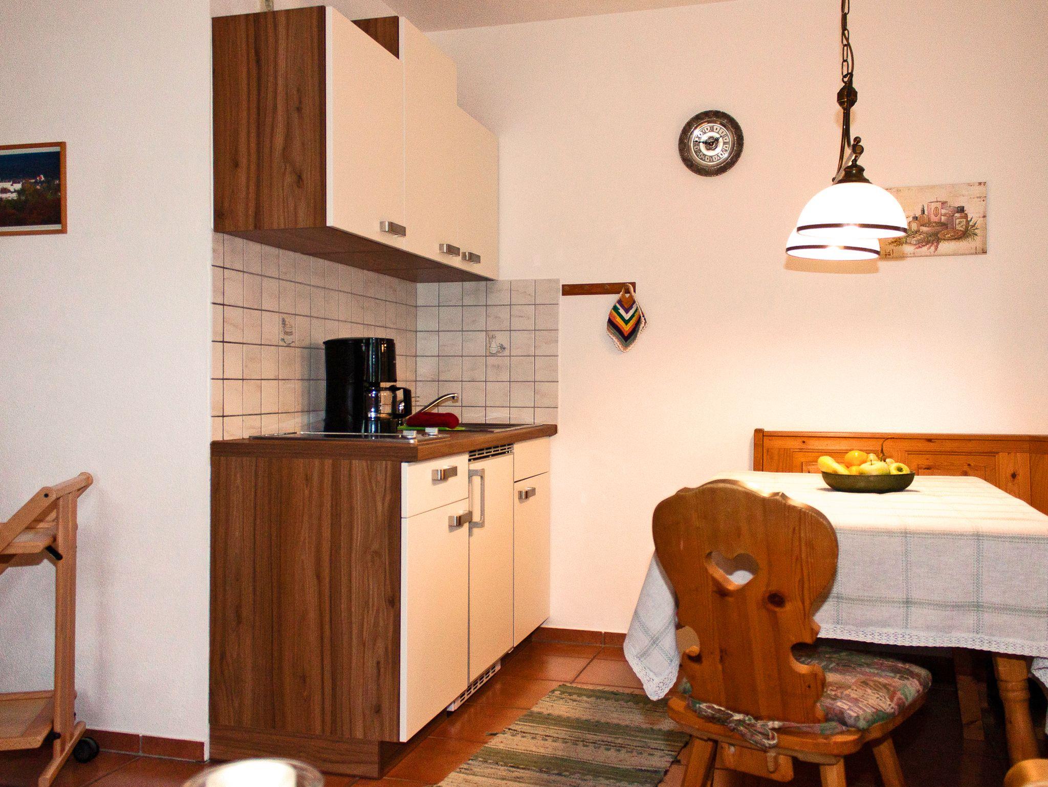 Die helle Nichtraucher-Ferienwohnung Talstüberl ist im gemütlichen Landhausstil mit Naturholzmöbeln eingerichtet. Separater Eingang mit zum Teil überdachter Terrasse zum Entspannen, 34 qm im Erdgeschoss. Wohnraum mit Essecke, Couch, Flachbild-TV mit DVD-Player, kostenloses WLAN, die im Wohnraum integrierte Kochnische ist mit Herd, Mikrowelle und Kühlschrank mit Tiefkühlfach ausgestattet. Separates Schlafzimmer mit Doppelbett. Badezimmer mit Dusche/WC und Fön. Kinderbett und Kinderhochstuhl auf Anfrage. Haustiere und Hunde dürfen nicht mitgebracht werden.