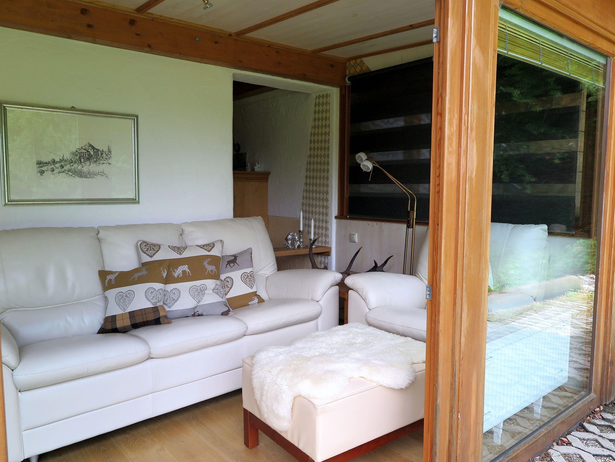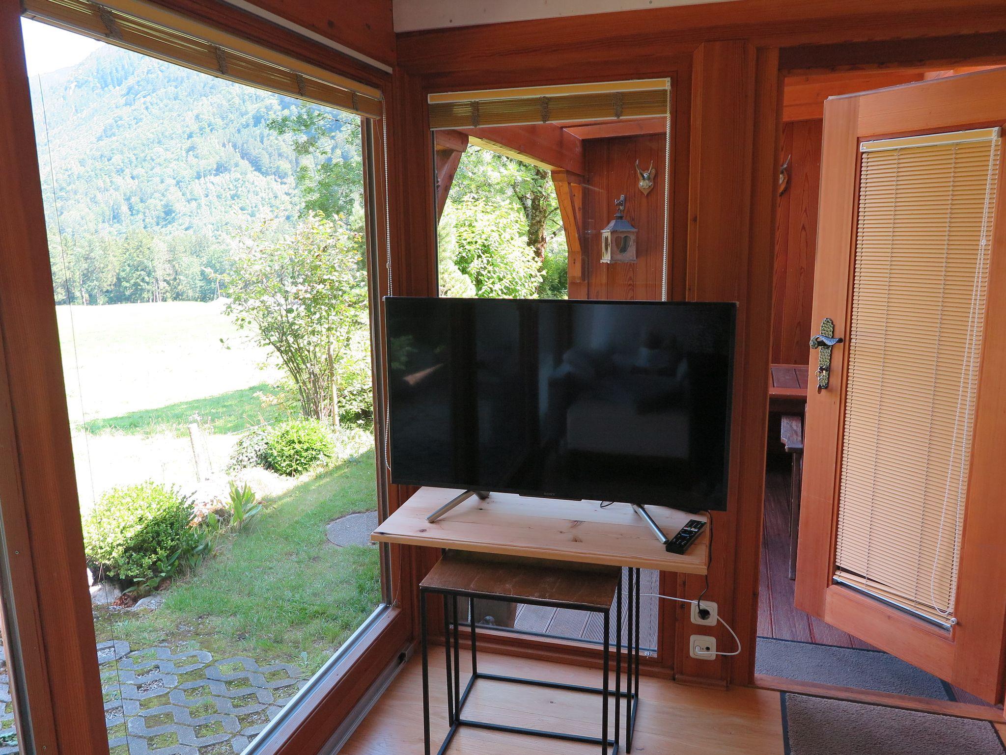 Fewo Mix aus bayerisch und modern für 4 Personen (max. 2 Erwachsene & 2 Kinder), ausgestattet mit allem Komfort, lässt keine Wünsche offen. Der Kachelofen sorgt für gemütliche Wärme und der Wintergarten mit altem Eichenparkett, Sofa, kostenlosem WLAN und Sat-TV (Flachbildschirm) bietet einen freien Blick auf grüne Wiesen und in die Berge.