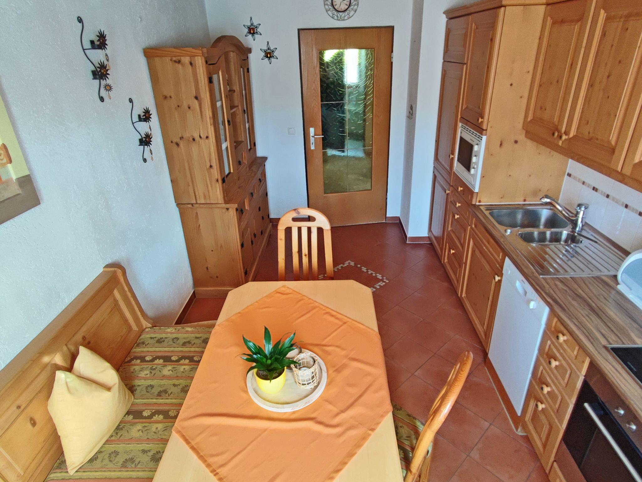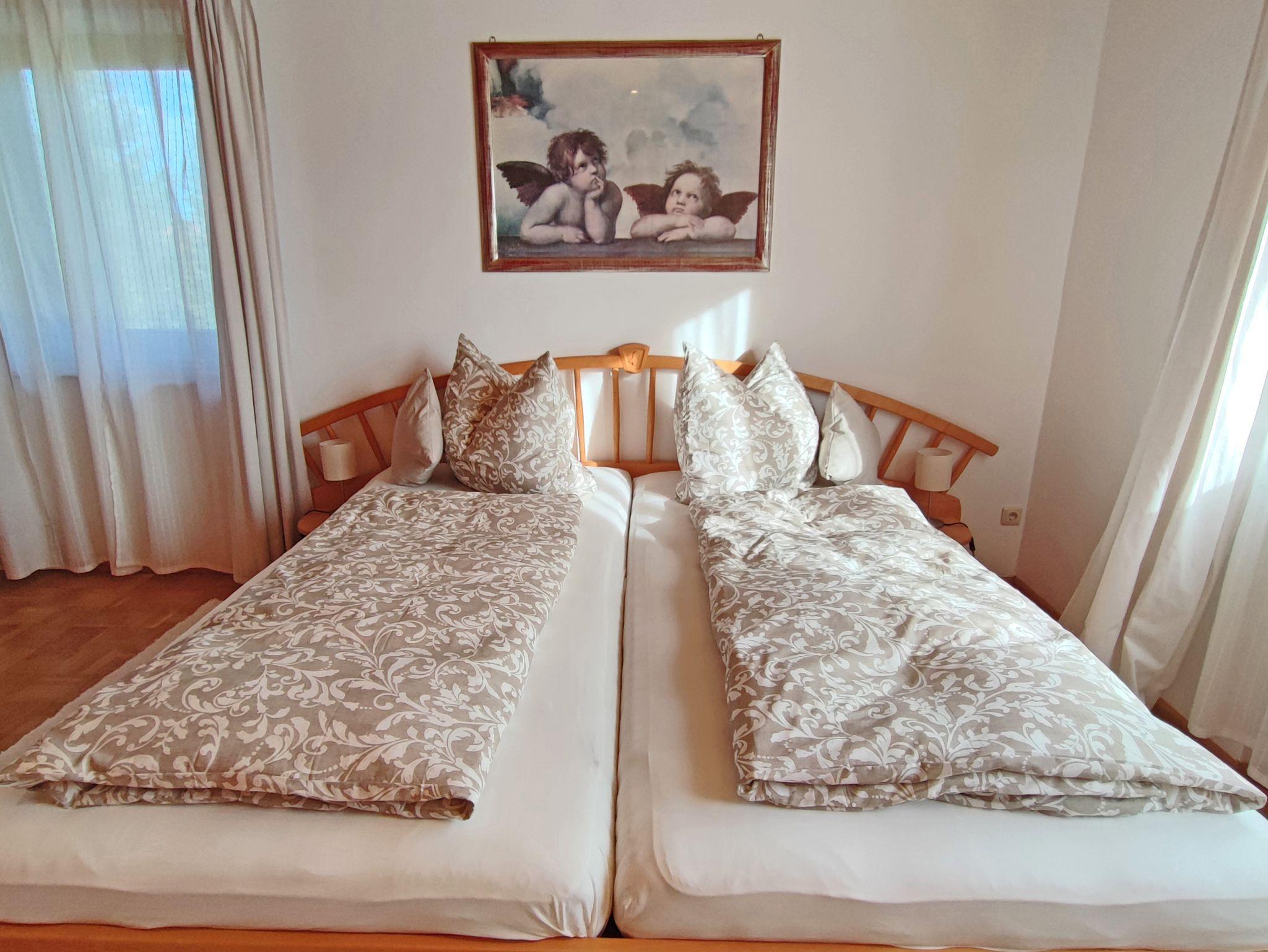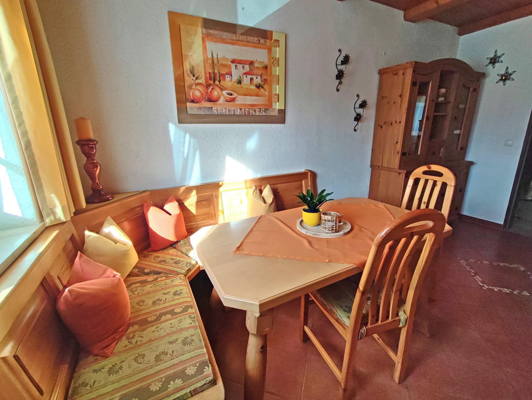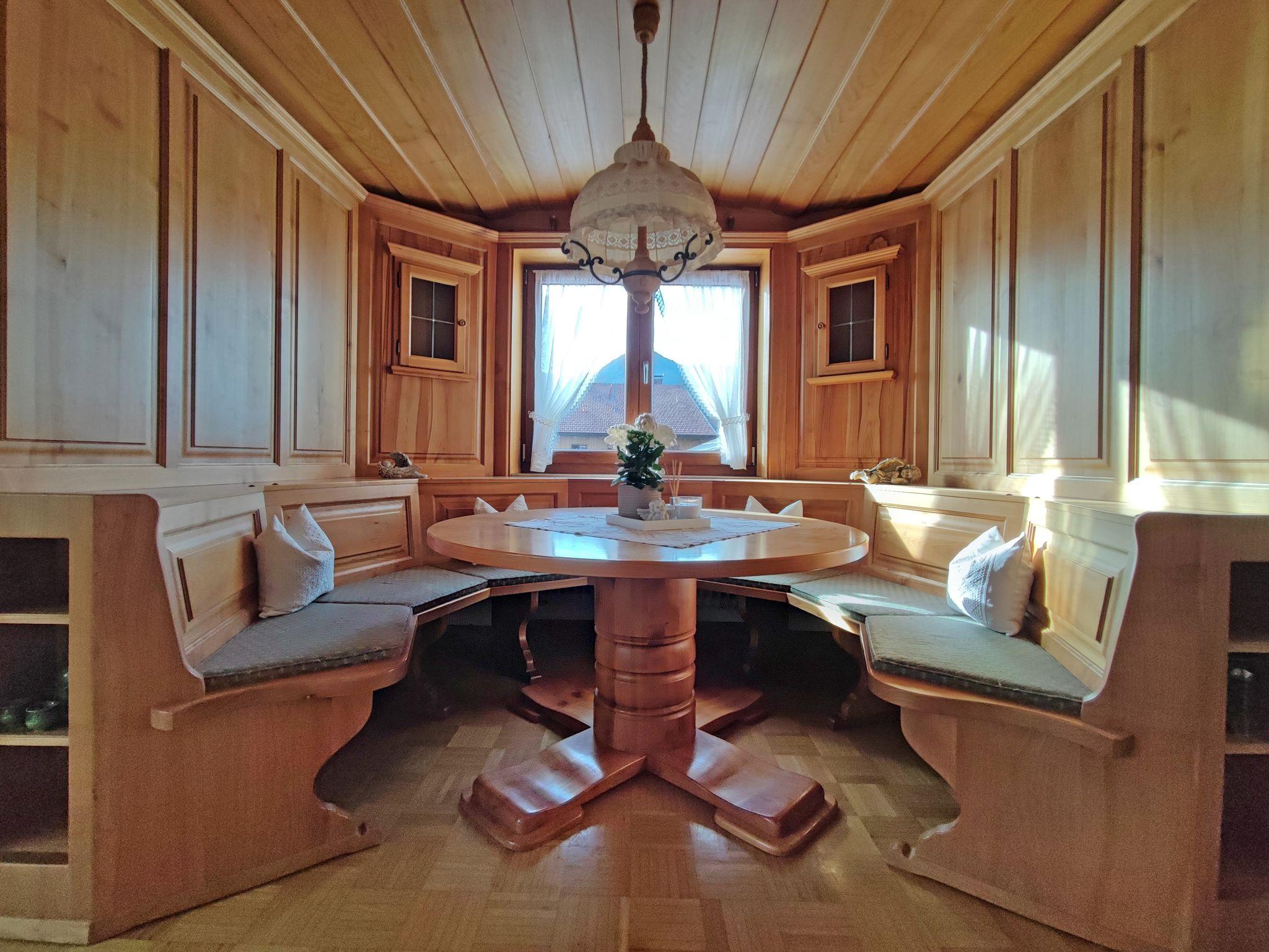 Wohnen Sie in einer großzügigen und hellen Ferienwohnung auf 102 qm/1. Stock im alpenländischen Stil mit zwei Schlafzimmern und Süd-Balkon mit Panoramablick auf die Berge. Die vollausgestattete Wohnung bietet Ihnen alle Vorzüge für einen angenehmen Aufenthalt. Der gemütliche Wohnraum ist mit viel Holz eingerichtet um eine Wohlfühl-Atmosphäre zu schaffen, mit einem schönen runden Sitz-Erker, ein streamingfähiger Flat-Kabel-TV und großem Sofa. Zwei separate Schlafzimmer, ein Schlafzimmer mit Doppelbett 2 x 2 m und ein Schlafzimmer mit Doppelbett 1,60 x 2 m. Voll ausgestattete Küche mit Ceranfeld-Herd/Backofen, Spülmaschine, Kaffee-Vollautomat, Mikrowelle, Kühlschrank/Tiefkühlfach, Toaster und Wasserkocher. Großes helles Badezimmer mit Dusche, Badewanne, WC, Urinal, Fön und Fenster zum Lüften. Waschmaschine, Wäschetrockner, Bügeleisen, Wäscheständer und Recycling Station im kleinen Hauswirtschaftsraum.
