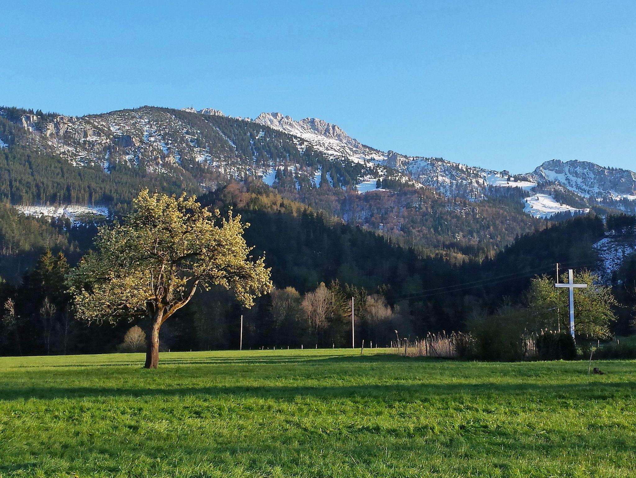 Hintergschwendt ist ein auf 830 Meter liegendes Hochtal in den Bergen zwischen dem Chiemsee im Norden und der Kampenwand im Süden. Unser Nebenhaus am Bauernhof liegt auf einem sonnigen, traumhaften und ruhigen Plateau inmitten schöner Natur, zwischen Bernau am Chiemsee und Aschau im Chiemgau. Hier finden Sie einen Platz, um sich vom Alltagsstress zu erholen. Im bewirtschafteten Bauernhof haben wir Kühe, Hühner, Hasen, Enten und Katzen. Kinder sind herzlich willkommen. Ob ein Spaziergang auf dem Hochtal Hintergschwendt, eine ausgedehnte Bergwanderung oder Mountainbike-Tour gleich vom Haus weg auf die Kampenwand oder auf die umliegenden Berge, Hintergschwendt ist dazu ein idealer Ausgangspunkt. Sie können gerne Ihren Hund dazu buchen. Bitte telefonieren Sie aber nach Buchung, wegen verschiedenen Absprachen, mit Ihrem Gastgeber. Info: Hunde müssen beim Spazieren gehen angeleint werden.