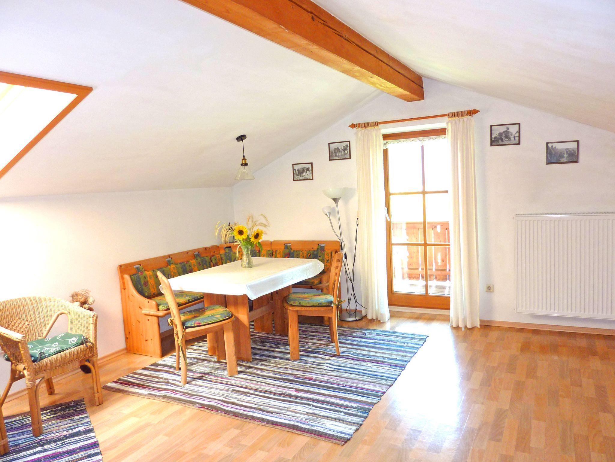 Gemütlich und komfortabel eingerichtete 33 qm Ferienwohnung mit Süd-Balkon und Panoramablick auf Aschau und die Berge. Der Wohn-/Schlafraum ist eingerichtet mit einem Doppelbett, Küchenzeile mit 4-Platten-Herd und Backofen, Flat-Kabel-TV und Essecke. Badezimmer mit Dusche/WC. Für Allergiker geeignet, bitte informieren Sie sich vor Buchung. Hunde und Haustiere dürfen nicht mitgebracht werden.
