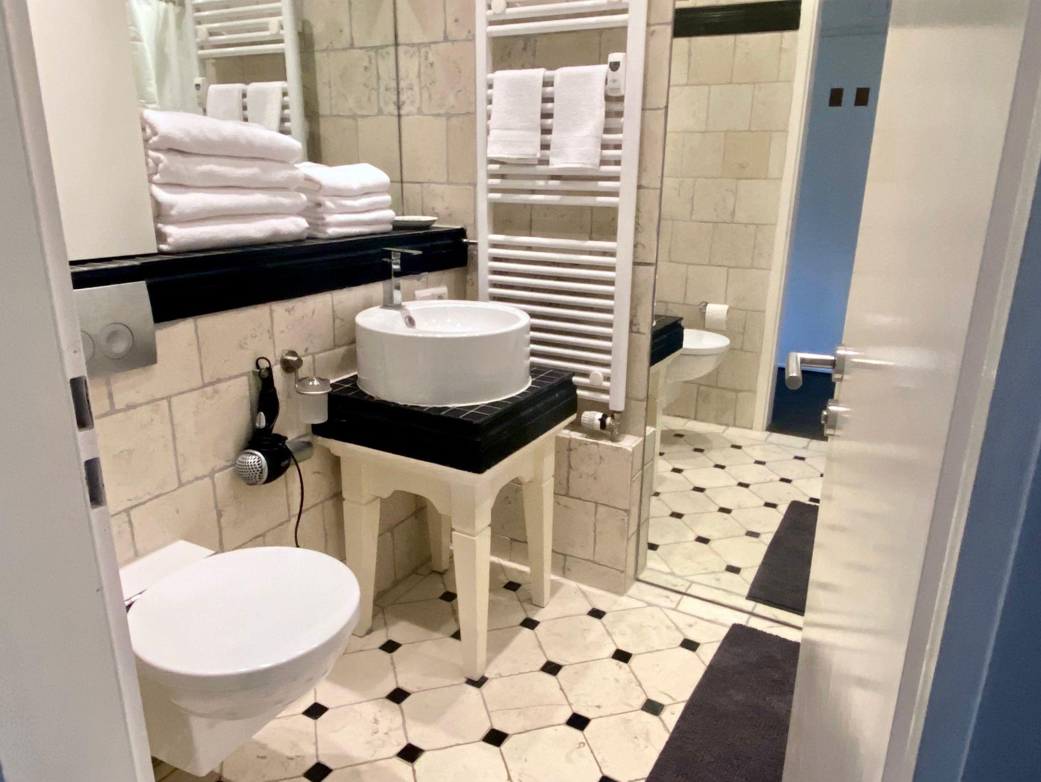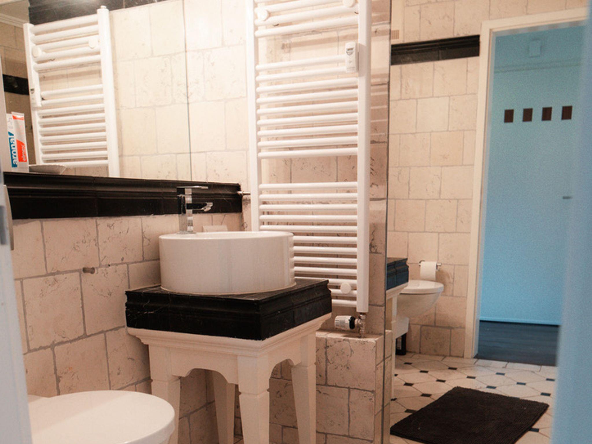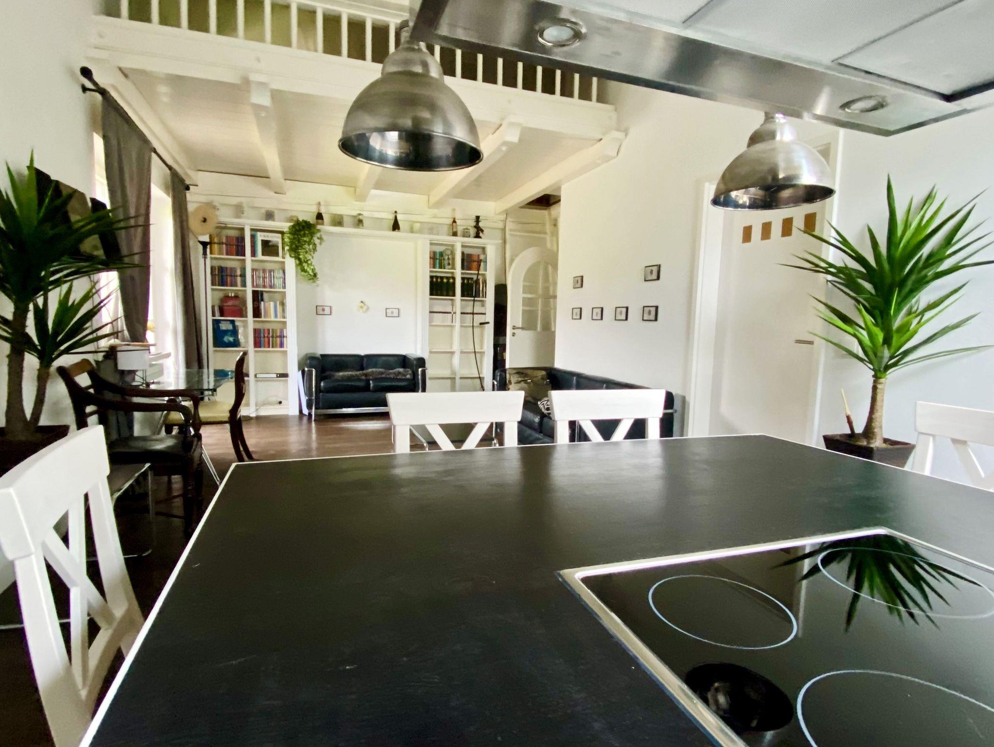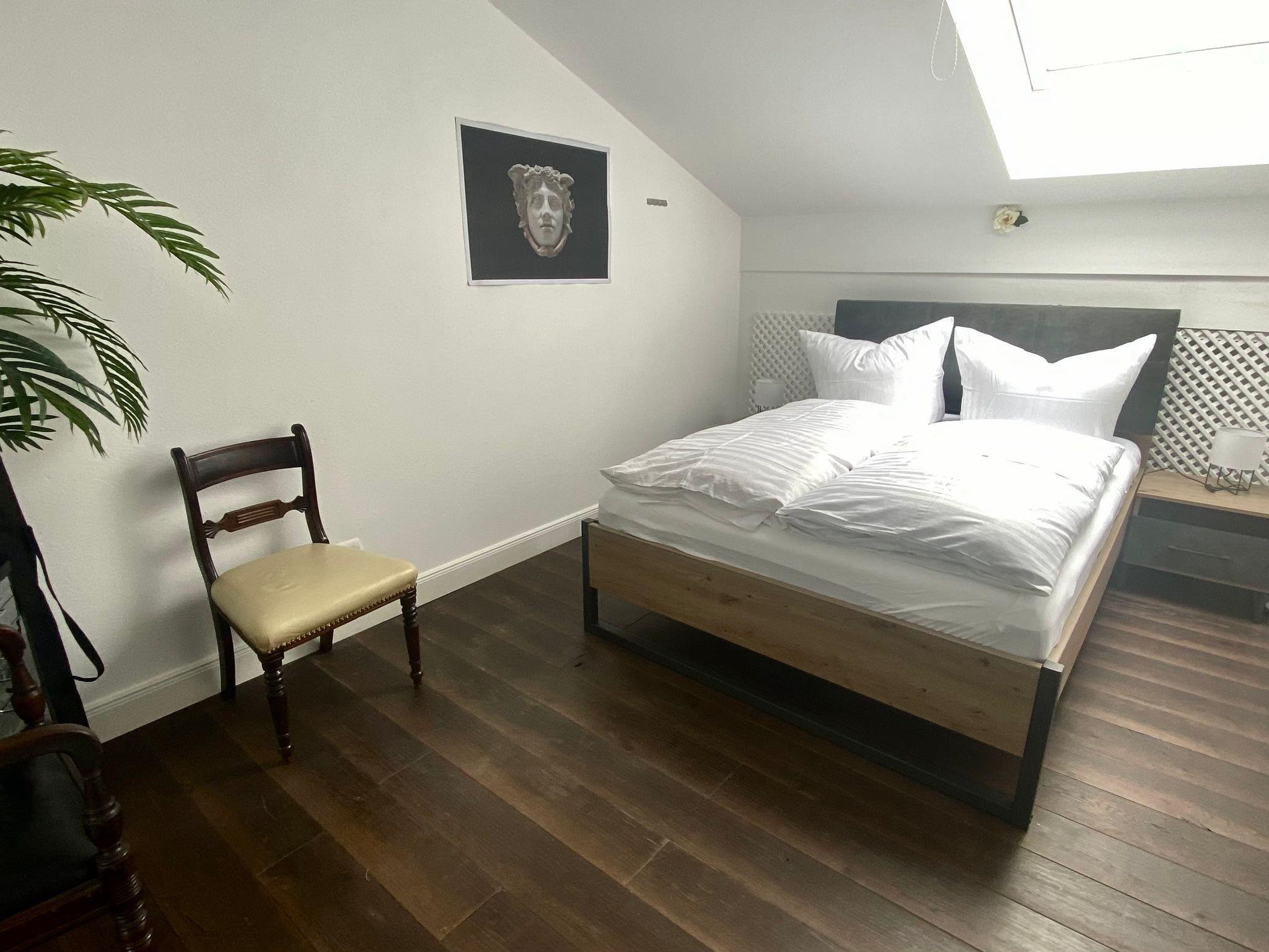 Ein moderner Wohnraum mit offener Küche und Holzboden lädt zum Wohlfühlen ein. Der Wohnraum ist großzügig gestaltet und bietet einen Esstisch, Couch und kostenloses WLAN. Die offene Küche ist mit einem Herd/Backofen, Geschirrspüler, Kühlschrank/Tiefkühlfach, Toaster und Wasserkocher sehr gut ausgestattet. Unser Bad ist ein mit Marmor gefliestes Badezimmer mit Fön, Dusch-/Badewanne und WC. Sie schlafen in einem separaten Schlafzimmer mit einem Doppelbett 1,80 m x 2 m.