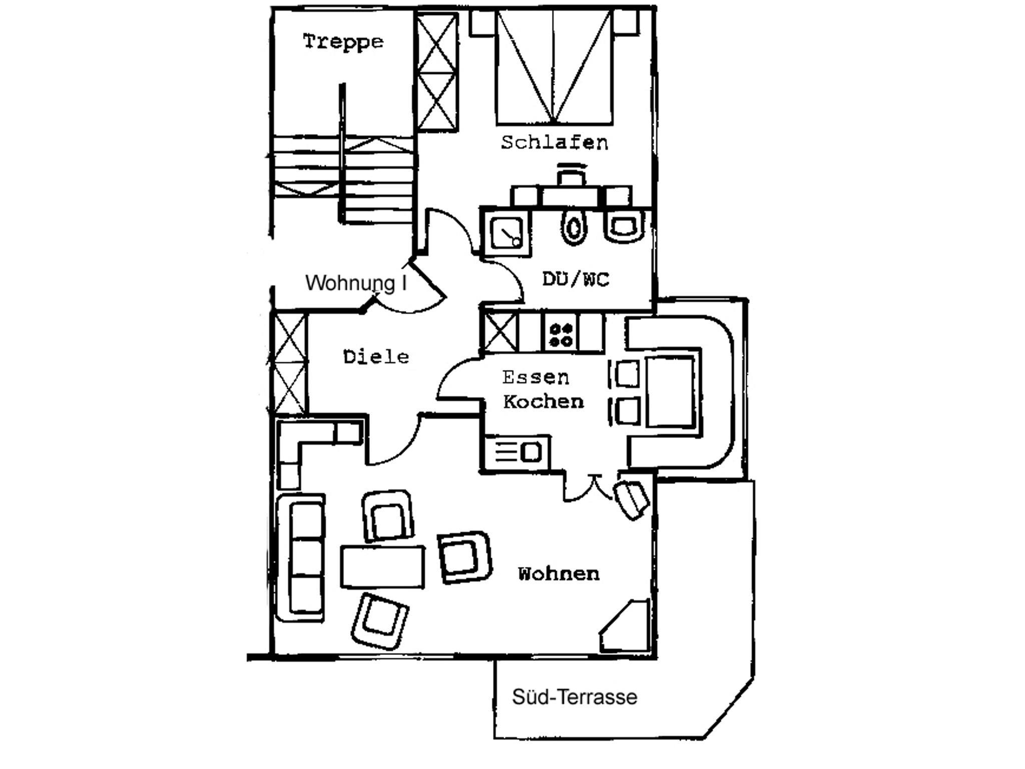 Ferienwohnungen Haus Wiesengrund, Ferienwohnung I ein separates Schlafzimmer, Süd-Terrasse, 65 qm