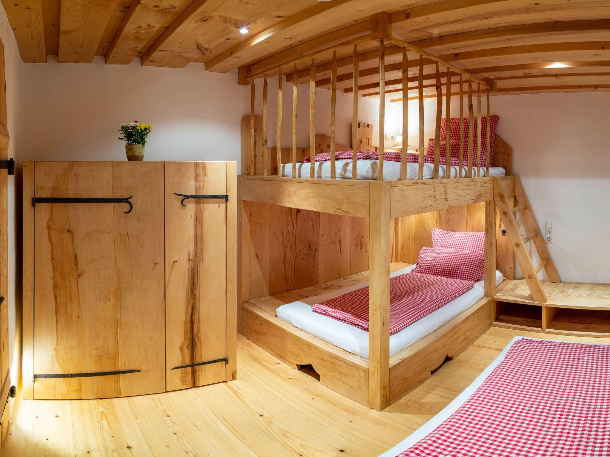 - 1 Schlafzimmer mit Etagenbett (Zustellmatratze für 5. Person möglich)