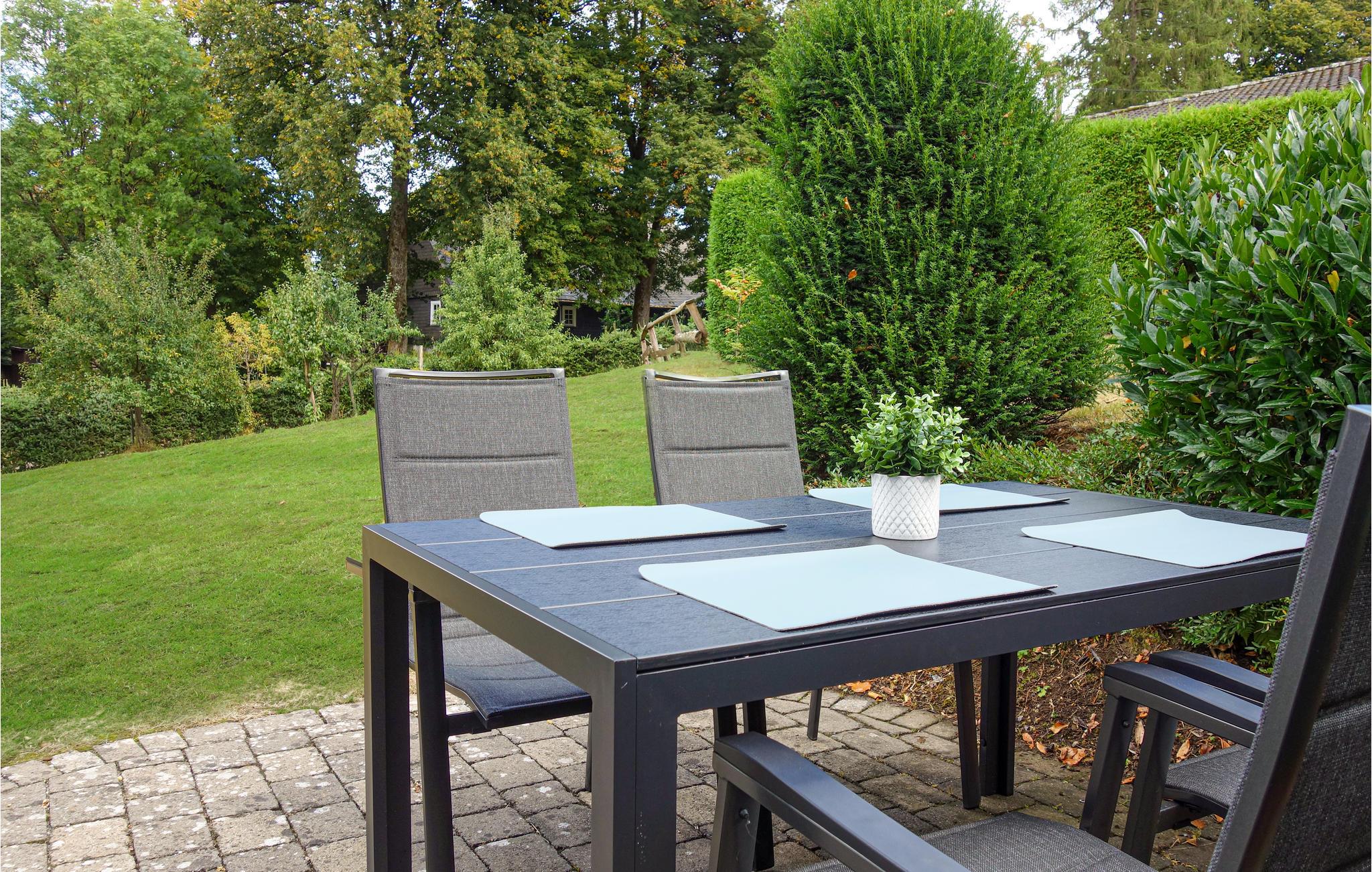 Der idyllische Garten lockt mit einer offenen Terrasse inmitten einer weitläufigen Rasenfläche, auf der Ihre Kinder sich austoben können. Servieren Sie sich Ihr Frühstück in der milden Morgensonne und lassen Sie abends bei Wein und Kerzenschein die friedliche Atmosphäre auf sich wirken.