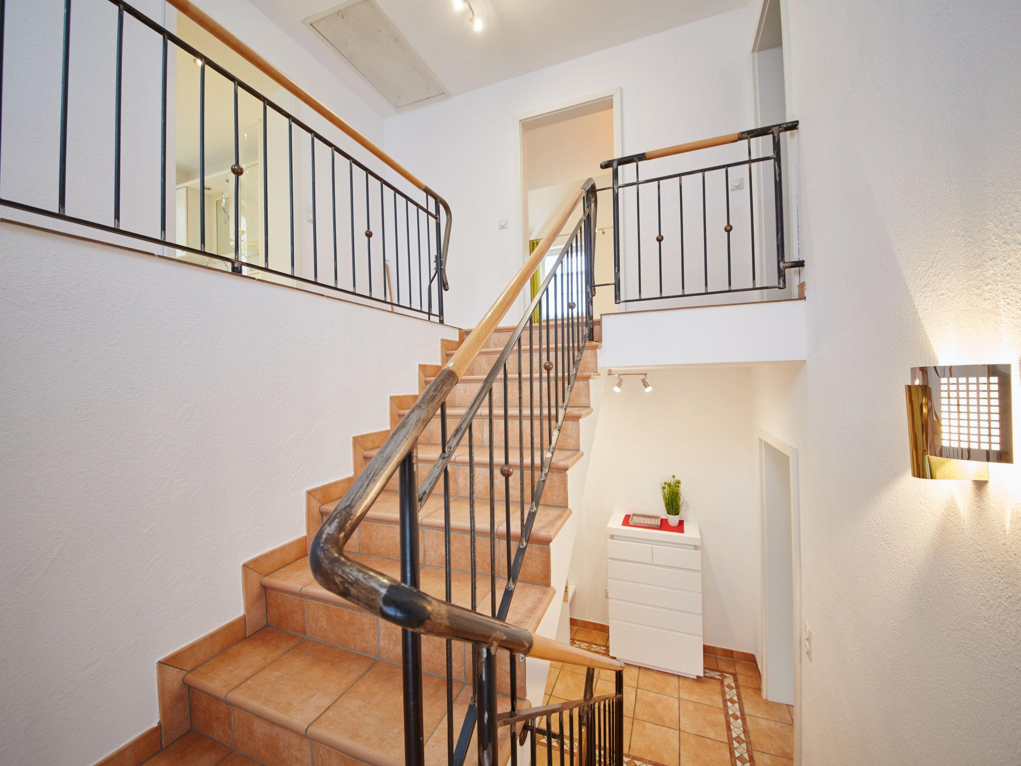 4-Zimmer-Haus 155 m2 auf 2 Stockwerken, im Erdgeschoss. Stilvoll und mit viel Holz eingerichtet: Wohn-/Esszimmer 46 m2 mit Sat-TV (Flachbildschirm), Stereoanlage. Ausgang zur Terrasse. Küche 10 m2 (Backofen, Geschirrspüler, 4 Glaskeramikplatten, Mikrowelle, elektrische Kaffeemaschine) mit Esstisch. Dusche/WC. Fussbodenheizung. Obergeschoss: 1 abgeschrägtes Zimmer 25 m2 mit 1 Doppelbett (200 cm, Länge 210 cm), Sat-TV (Flachbildschirm). 1 abgeschrägtes Zimmer 18 m2 mit 1 Doppelbett (160 cm, Länge 200 cm), Sat-TV (Flachbildschirm). 1 abgeschrägtes Zimmer 17 m2 mit 1 Doppelbett (160 cm, Länge 200 cm), Sat-TV (Flachbildschirm). Bad/Dusche/Bidet/WC. Fussbodenheizung. Grosser Balkon 20 m2, Terrasse 16 m2. Terrassenmöbel, Balkonmöbel, Gartengrill (mobil), Liegestühle (3). Zur Verfügung: Waschmaschine, Bügeleisen, Haartrockner. Internet (Wireless LAN, gratis). Bitte beachten: Nichtraucher-Haus. Maximal 2 Haustiere/Hunde erlaubt. Rauchmelder, Feuerlöscher.