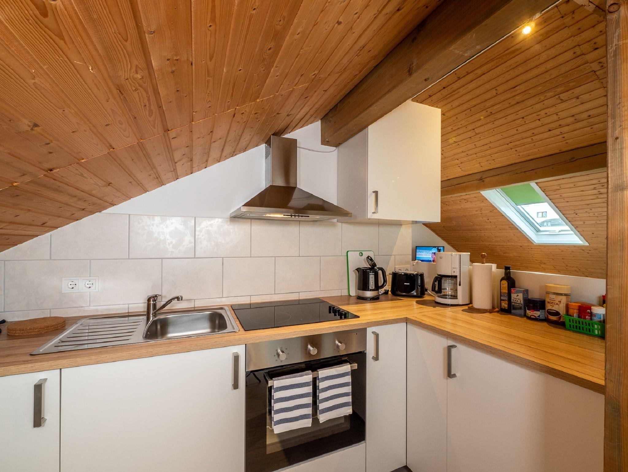 Geschlafen wird in zwei separaten Schlafzimmern mit jeweils 2 getrennten Betten, die bei Bedarf auch zusammengestellt werden können und zusätzlich auf einer Schlafcouch im Wohnzimmer. Der Wohnbereich ist sehr geräumig und gut belichtet. Dort befinden sich eine gemütliche Essecke unter dem Fenster, eine Couch mit Fernseher, kostenloses Wlan und eine Kofferablage. Die Küche ist modern und voll ausgestattet. Sie lässt mit Herd, Backofen, Kaffeemaschine, Wasserkocher, Geschirr, Kühlschrank, Toaster und sogar Gewürzen keine Wünsche offen. Das Badezimmer ist mit Dusche, WC und Handtüchern ausgestattet.