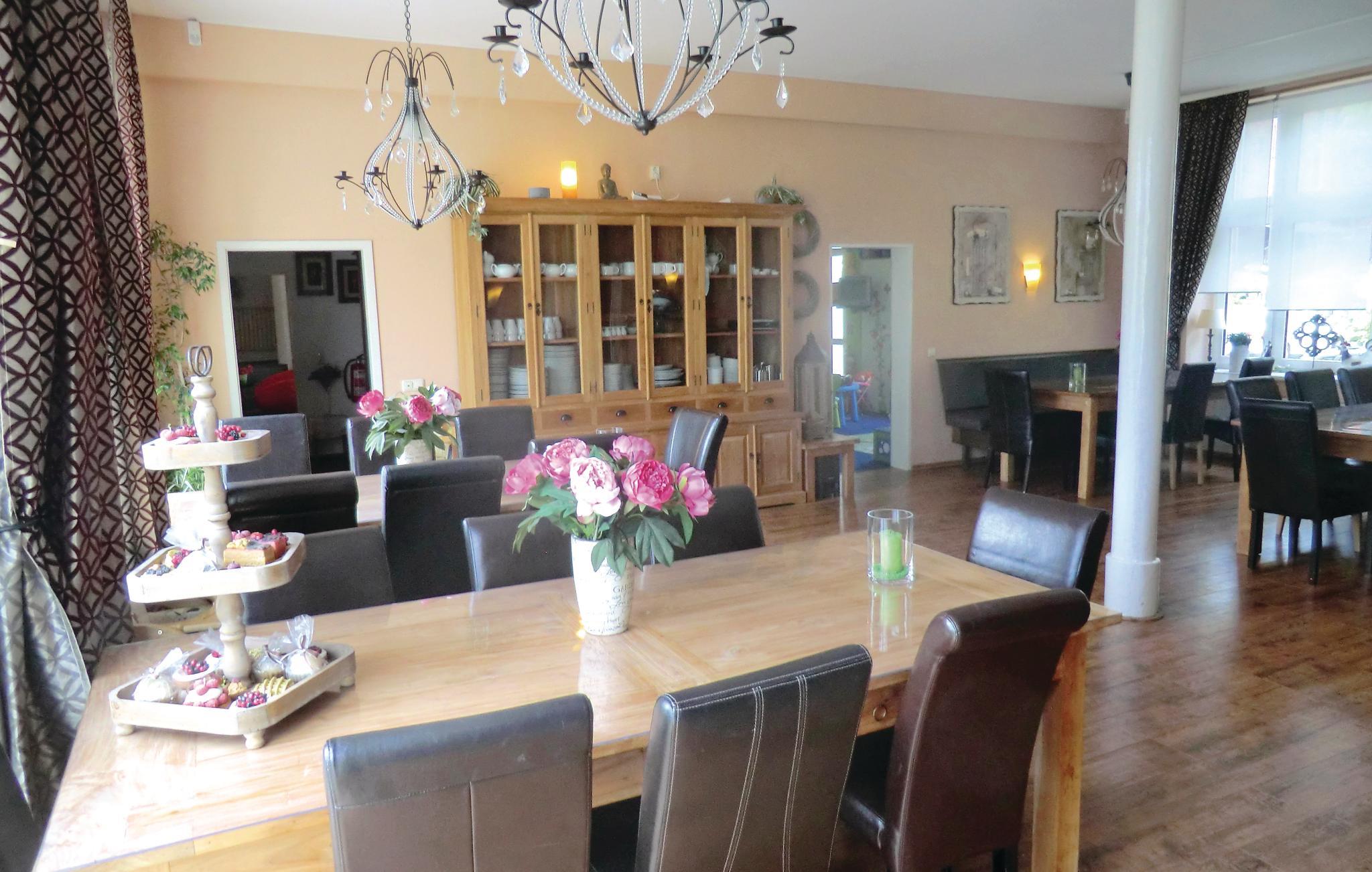 Auf vorherige Anfrage kann Verpflegung organisiert werden. Das Feriendomizil empfängt seine Gäste im Stadtgebiet von Auerbach, 4 km vom Waldpark Grünheide entfernt. Dort finden Sie einen Tennisplatz, einen Kinderspielplatz, Fußball-Bolzplätze, eine Bowlingbahn und eine Turnhalle. Zu den Ausflugs- und Freizeitmöglichkeiten der Umgebung gehören auch der Erlebnispark Plon, zahlreiche Bergwerke und Museen, eine Museumsbahn, Burgen und ein Naturbadesee.