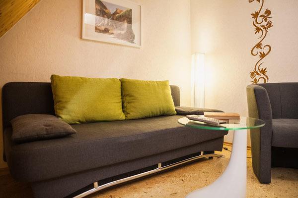 Das Apartment bietet auf ca. 25m² ein kombiniertes Schlaf-/Wohnzimmer (2x Einzelbett, Wohnbereich mit Couch , Esstisch für 2 Personen , TV, sowie Küchenzeile mit Herd, Wasserkocher, Kühlschrank und ein Bad mit Dusche/WC, Haartrockner, den Rahmen für einen erholsamen Aufenthalt.