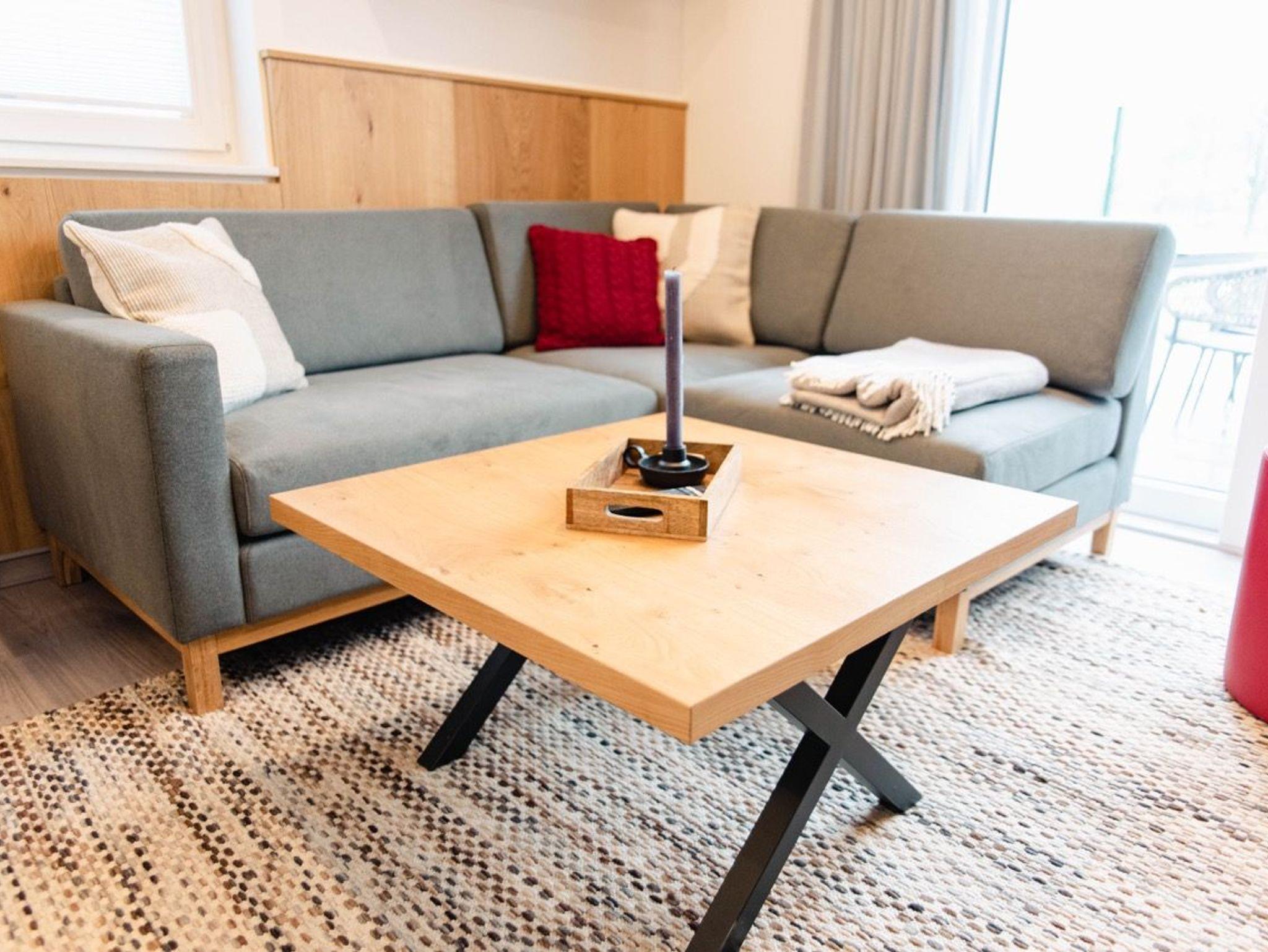 Für jedes Apartment steht ein Parkplatz mit E-Ladesäule zur Verfügung, die Terrassen sind möbliert, außerdem lädt ein gemütlicher Strandkorb zum Verweilen ein.