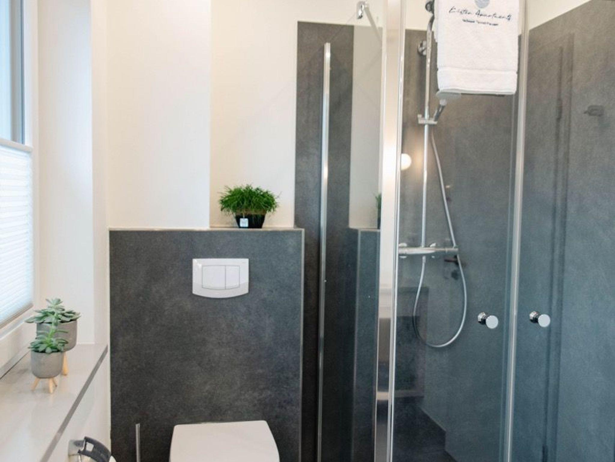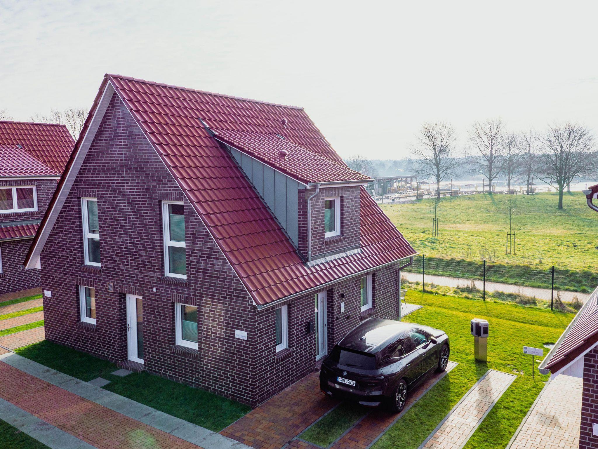 Für jedes Apartment steht ein Parkplatz mit E-Ladesäule zur Verfügung, die Terrassen sind möbliert, außerdem lädt ein gemütlicher Strandkorb zum Verweilen ein.