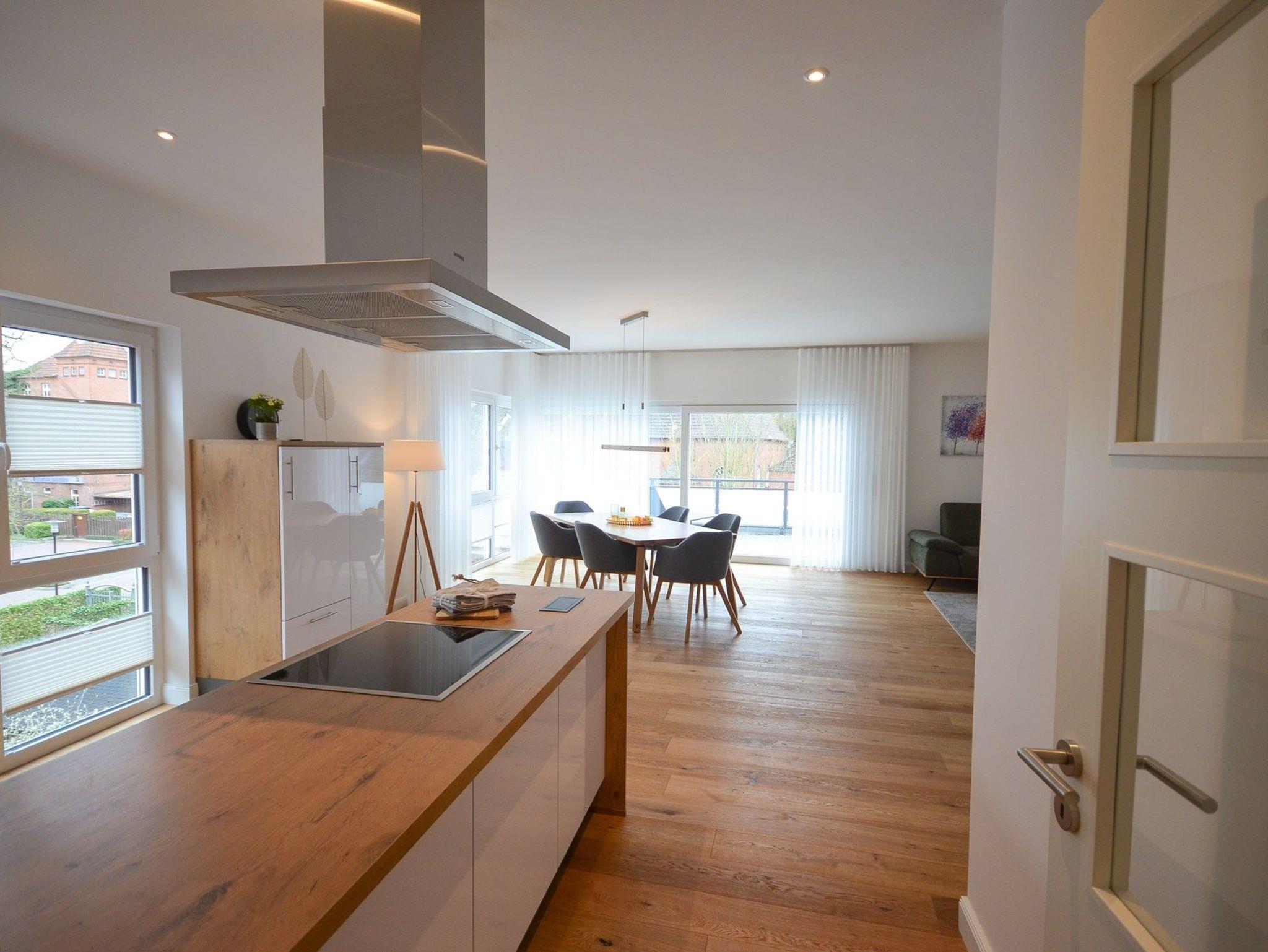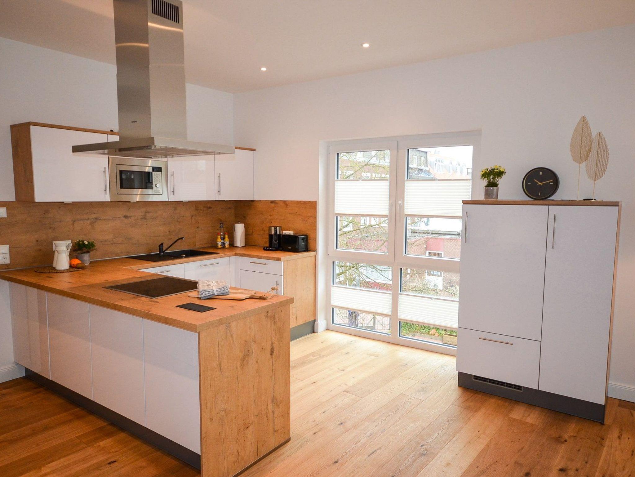 Die Küche in U-Form mit dem fließenden Übergang zum Wohnzimmer hat alles, was Ihren Wünschen und Vorstellungen von einer idealen Küche entspricht. Hochwertige Geräte, ein Induktionskochfeld mit Inselhaube und eine vollständige Ausstattung zum Kochen ? es fehlt an nichts.