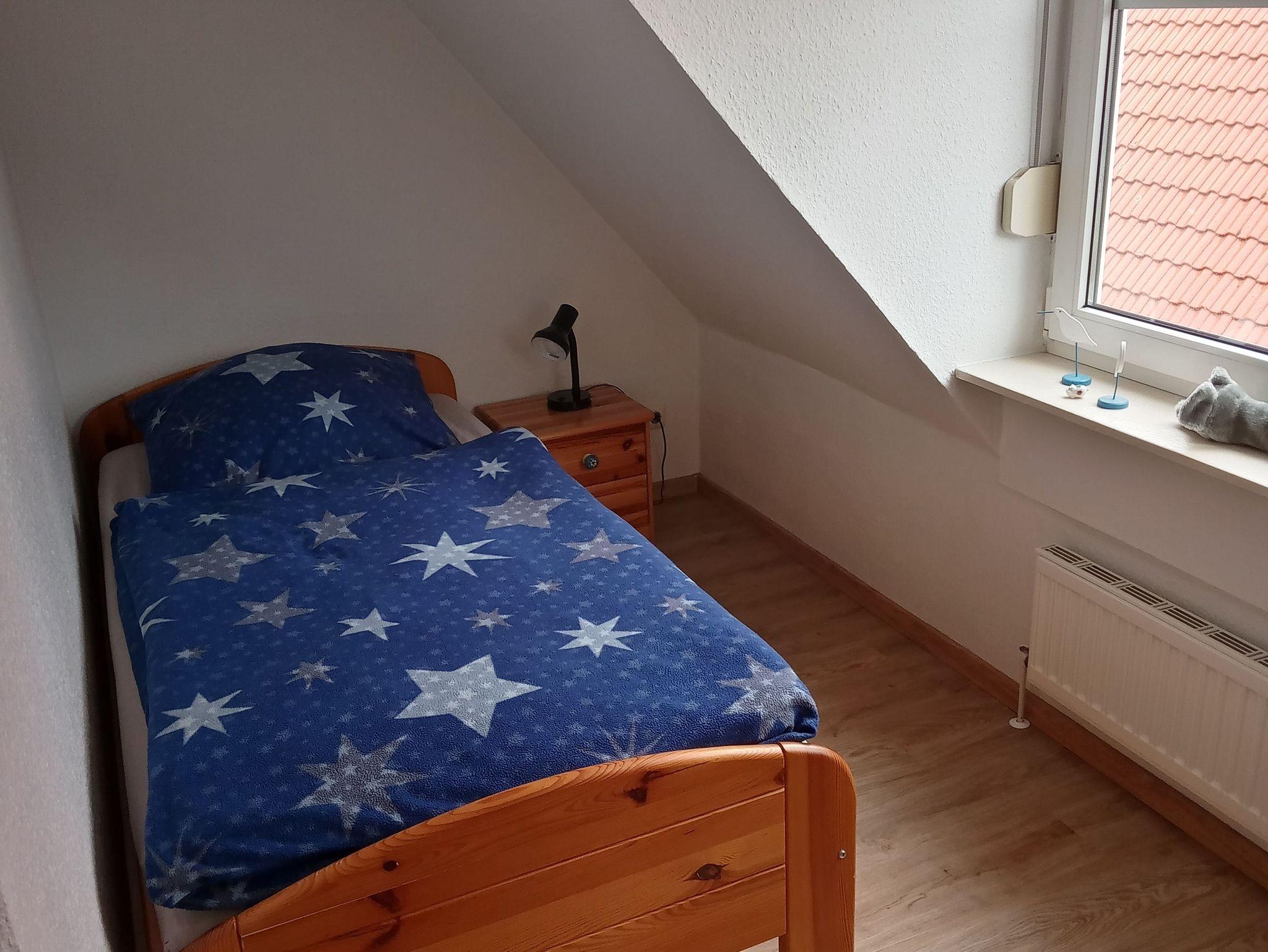 Im Obergeschoss finden Sie ein helles Doppelschlafzimmer ( 1,40 m x 2,00 m Bett ) sowie ein gemütliches Einzelzimmer ( 0,90m x 2,00 m Bett ). Beide Schlafzimmer sind mit Außenjalousien ausgestattet. Auf Anfrage stellen wir Ihnen ein zusätzliches Kinderreisebettchen gerne zur Verfügung.