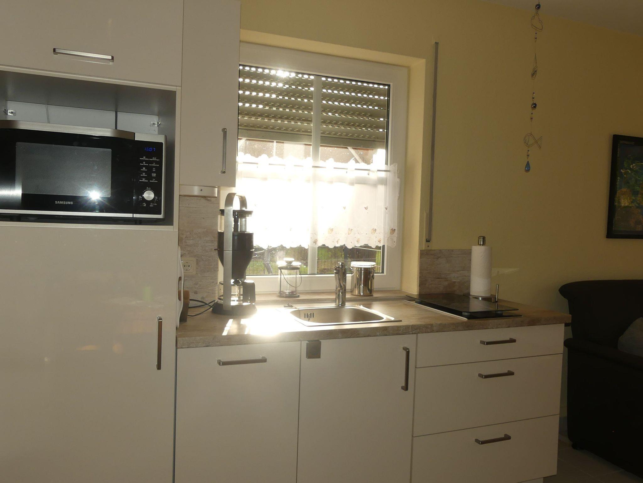 Im Erdgeschoss unserer Feriendoppelhaushälfte Seesternchen befindet sich ein kombinierter Wohn-/Essbereich mit einer voll ausgestatteten Küchenzeile, ein Tageslicht Badezimmer mit Dusche, Waschbecken und WC, sowie ein Flur mit Abstellmöglichkeiten. Die Küche verfügt über einen Geschirrspüler, eine kombinierte Mikrowelle mit integrierten Backofen, sowie zwei Cerankochfelder. Im Wohnbereich steht Ihnen ein Flachbildfernseher, eine bluetoothfähige Kleinstereoanlage sowie diverse Spiele und Bücher für einen gemütlichen Abend zur Verfügung. Gerne können Sie zu Ihrer Unterhaltung unseren kostenfreien W-LAN Anschluss benutzen. Auch eine Waschmaschine ( Toploader ) finden Sie in unserem Ferienhäuschen.