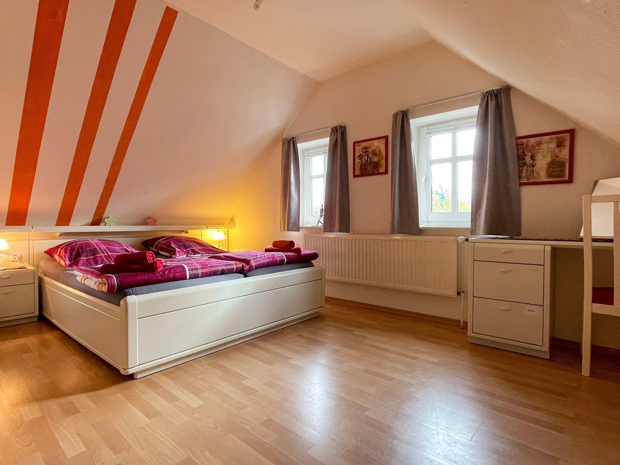 Im Obergeschoss finden Sie das großzügige Elternschlafzimmer sowie ein liebevoll gestaltetes Kinderzimmer, beide mit viel Ruhe und Gemütlichkeit für erholsame Nächte.