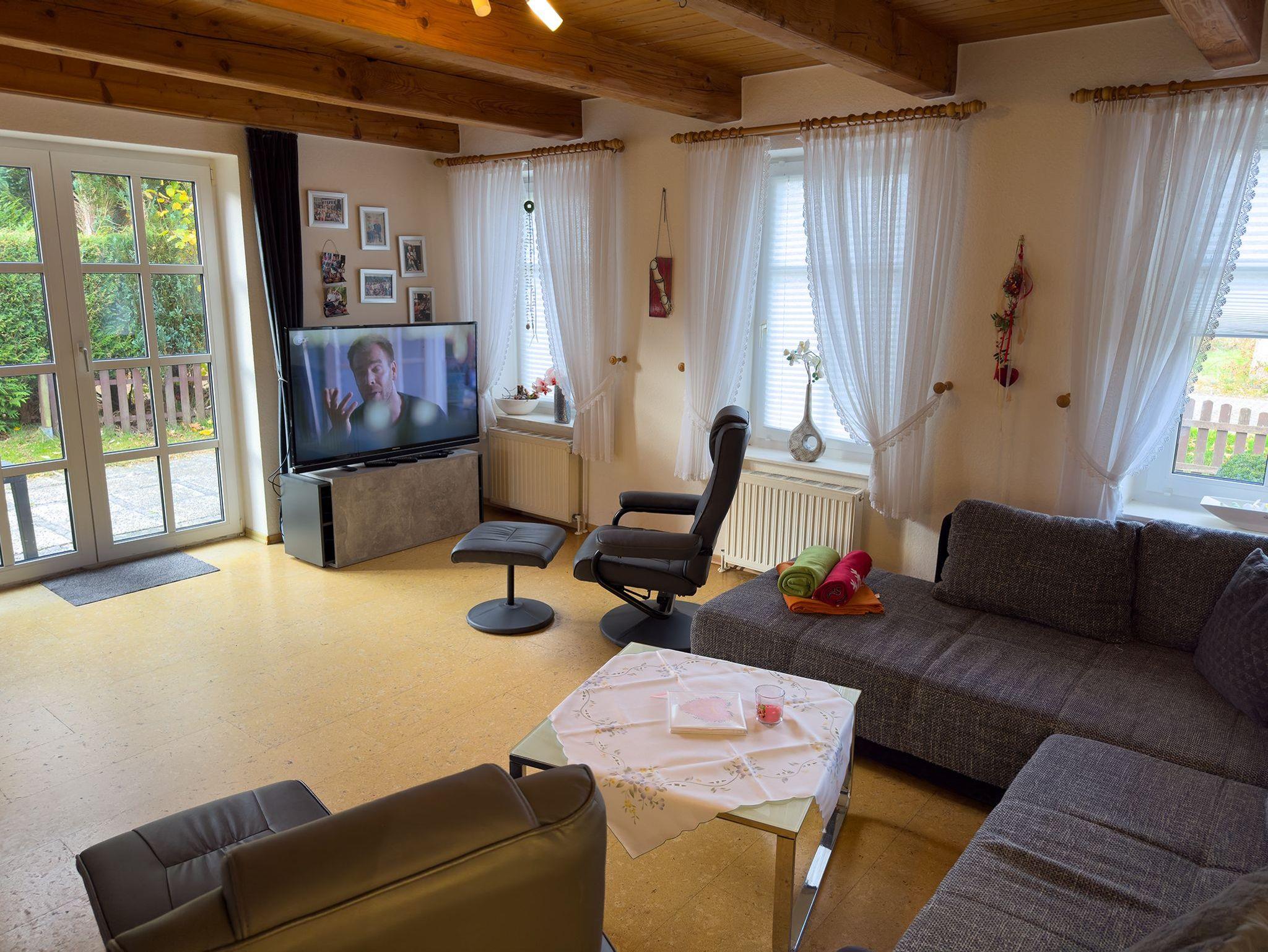 Direkt angrenzend lädt das behagliche Wohnzimmer zum Verweilen ein. Ob für einen Spieleabend, einen gemütlichen Fernsehabend oder einfach zum Ausruhen. Hier fühlt man sich sofort zuhause.