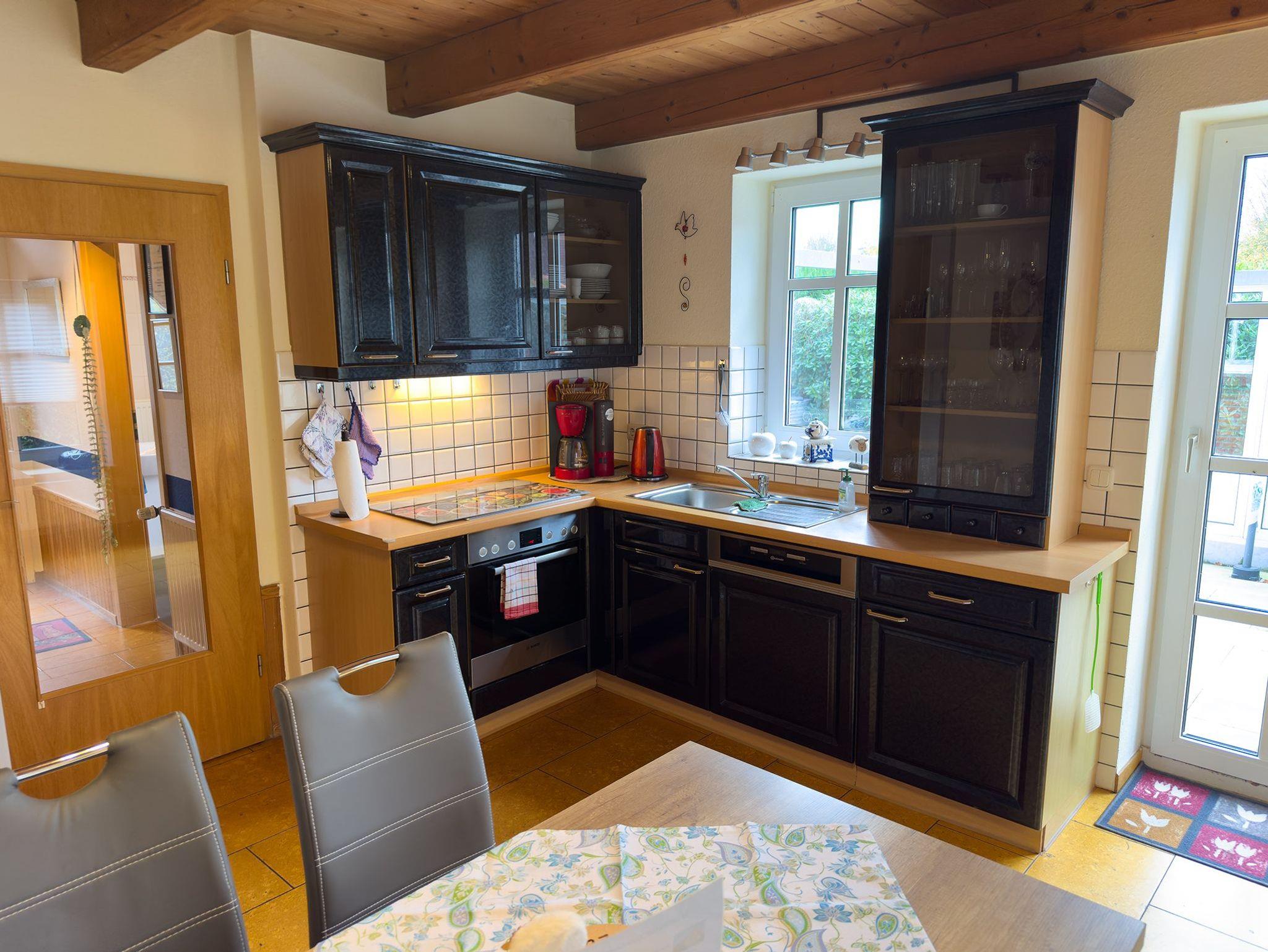 Im Erdgeschoss erwartet Sie ein modernes Badezimmer mit einer ebenerdige Dusche-ideal für den entspannten Start in den Tag. Durch den Flur gelangen Sie in die liebevoll eingerichtete Küche, die mit Herd, Backofen, Kühlschrank und Geschirrspüler voll ausgestattet ist. Perfekt, um gemeinsam zu kochen und zu genießen.