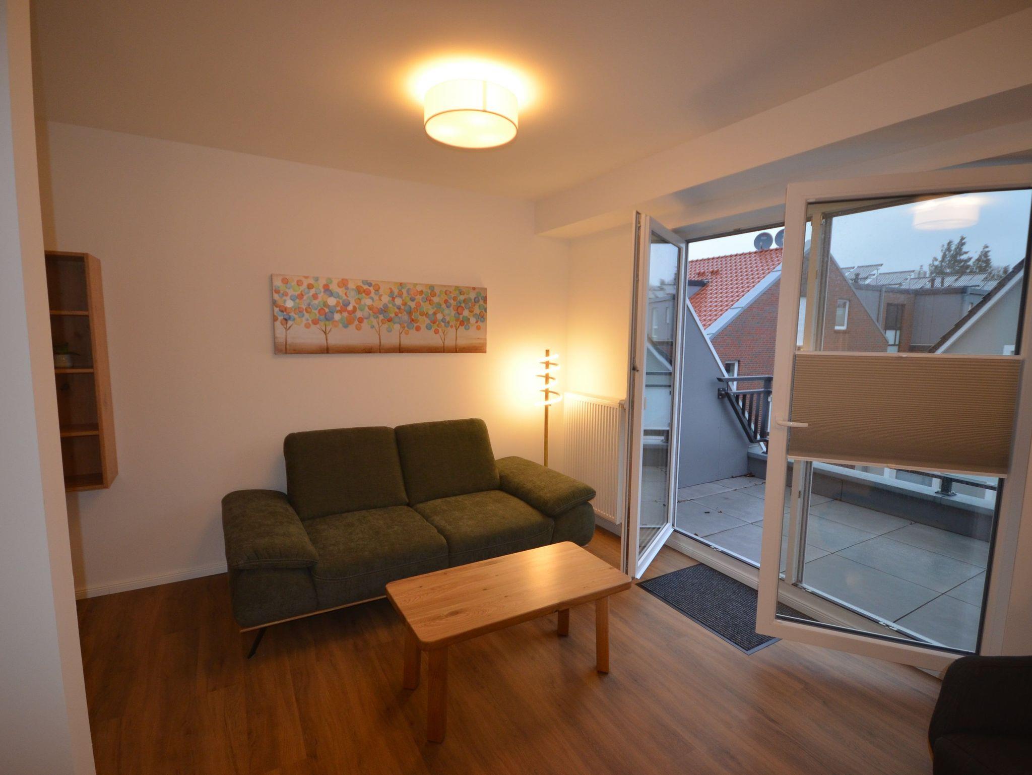 Das Apartment mit einer Loggia befindet sich im 2. OG mit Blick zum schönen Auricher Marktplatz gelegen. Bis zum 1.OG können Sie den Fahrstuhl nutzen, zum 2. OG führt eine Treppe. Es ist ca. 75 m² groß und für max. 3 Personen und 1 Kind im Alter von bis zu drei Jahren buchbar.