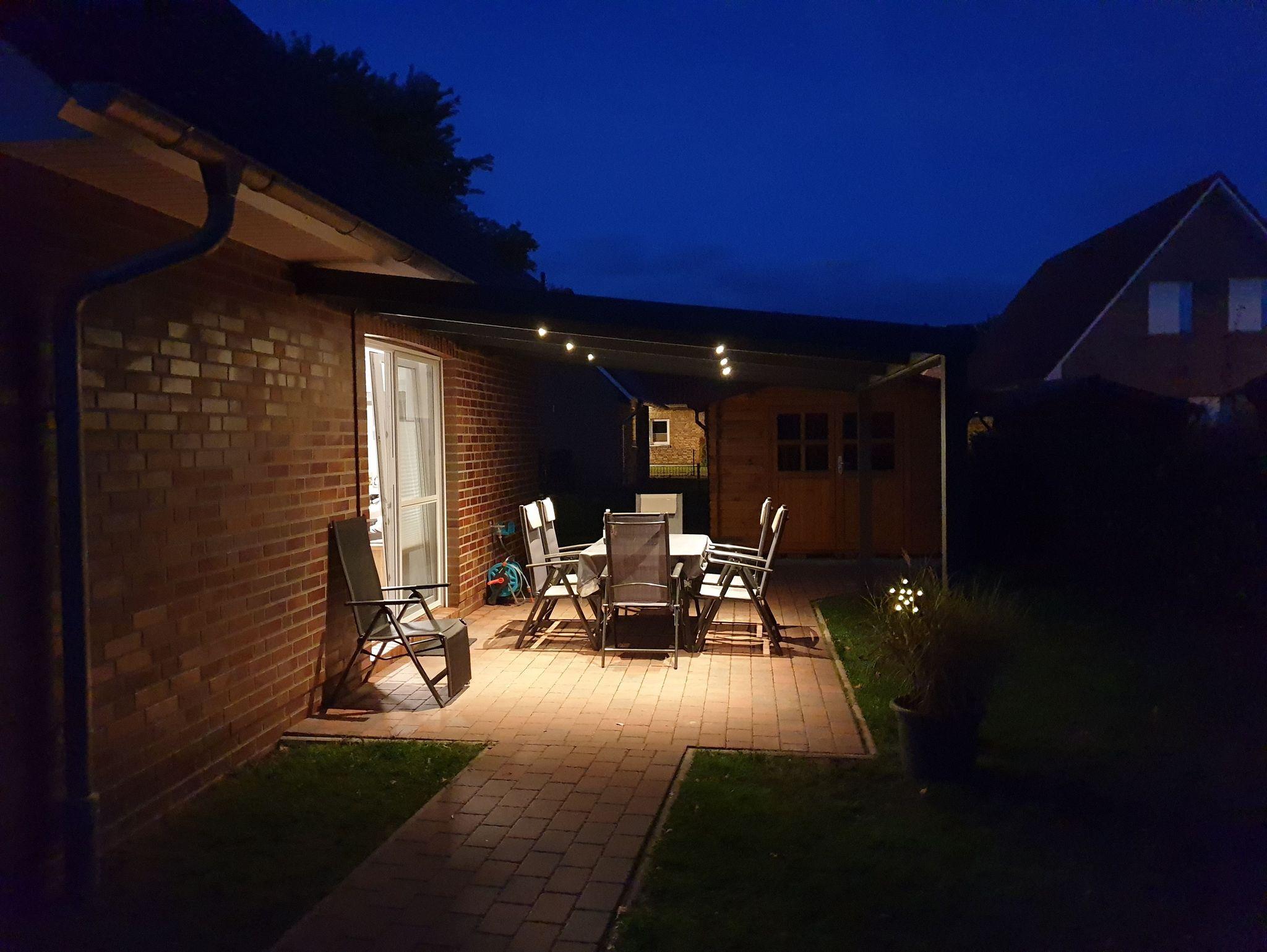 Im Garten finden Sie eine Terrasse, einen Grill und einen Sonnenschirm.
