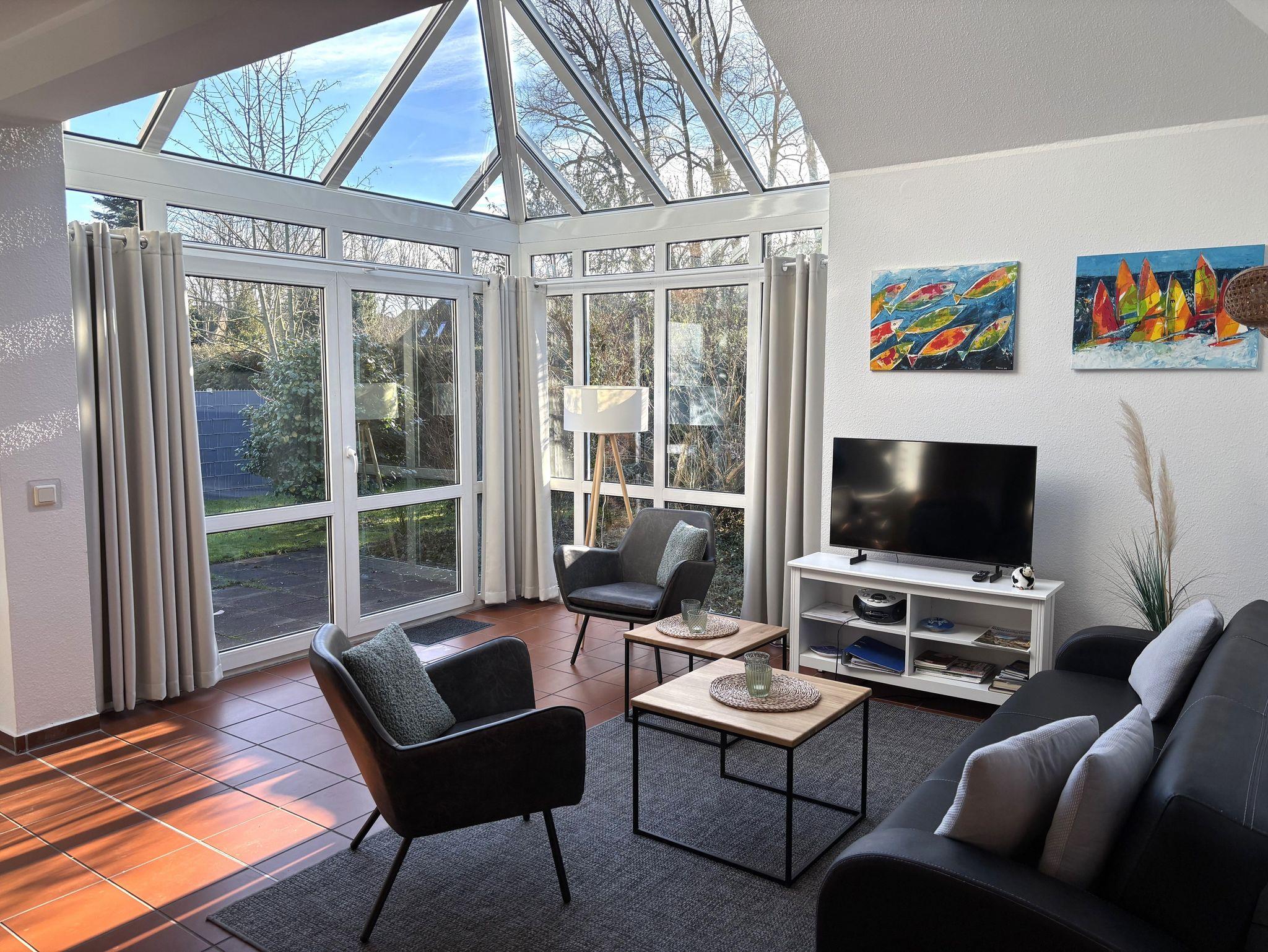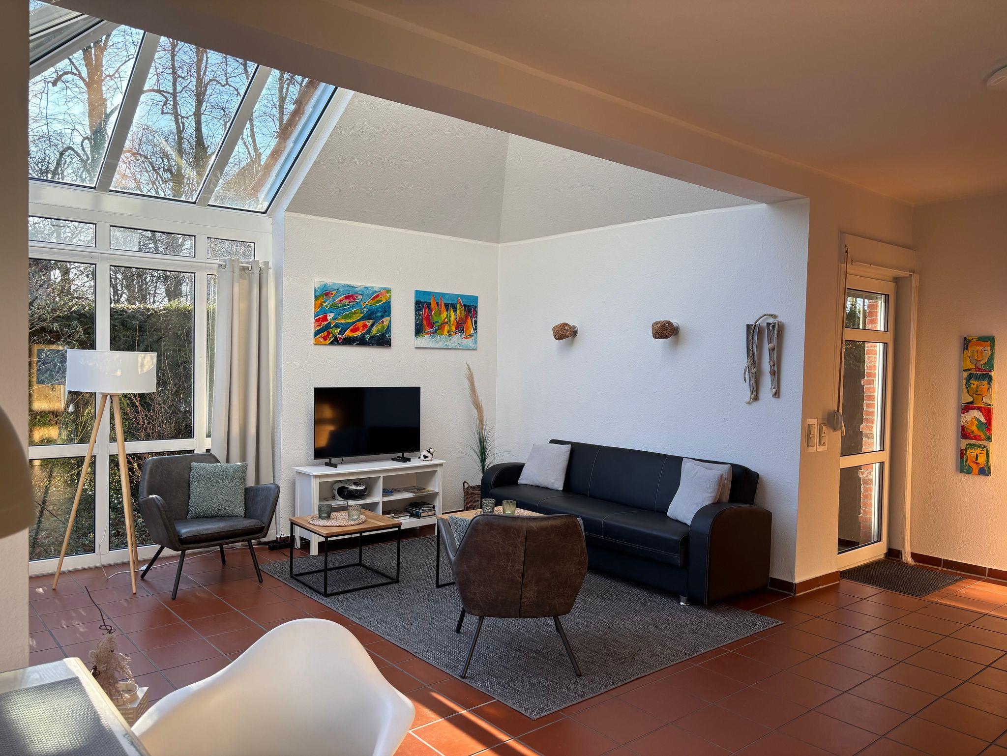 Modernes, gemütliches Ferienhaus in Aurich mit Kamin, Wintergarten, Garten und Terrasse für erholsame Tage.