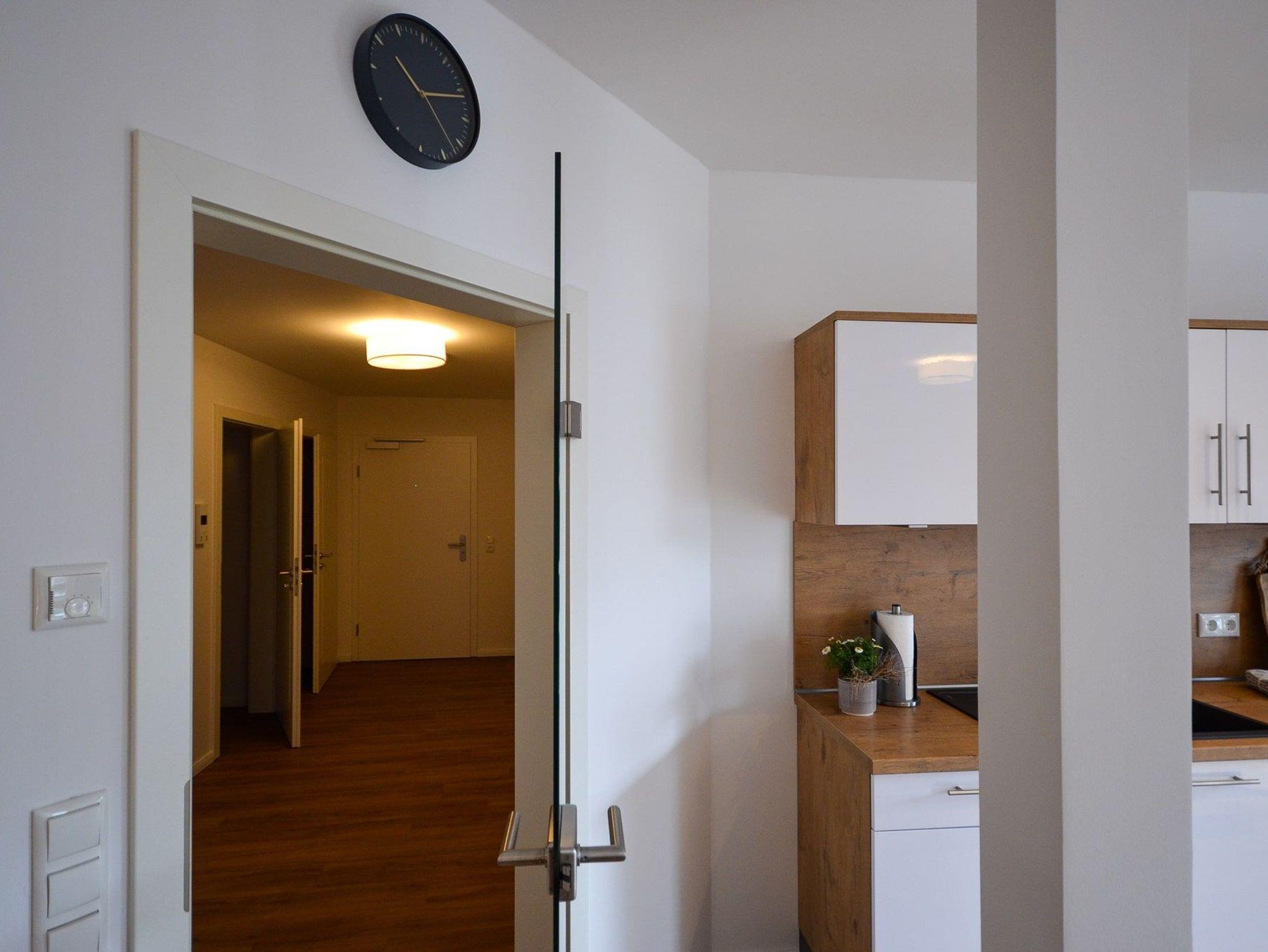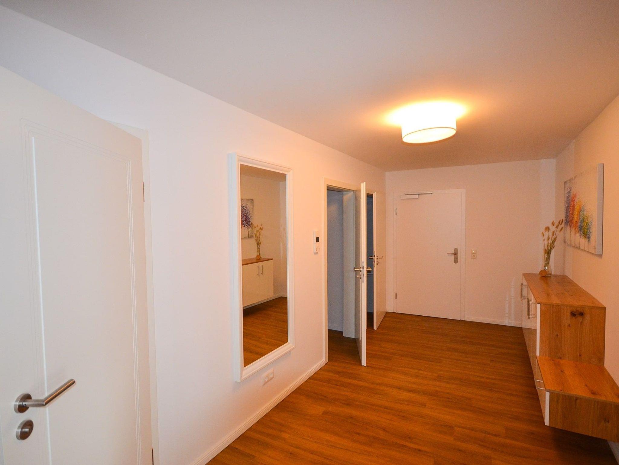 Das Appartement mit Balkon befindet sich im 1. OG ruhig zum Innenhof gelegen. Die Wohnung ist bequem mit dem Fahrstuhl zu erreichen. Sie ist ca. 65 m² groß und für max. 2 Personen und 1 Kind im Alter von bis drei Jahren buchbar.