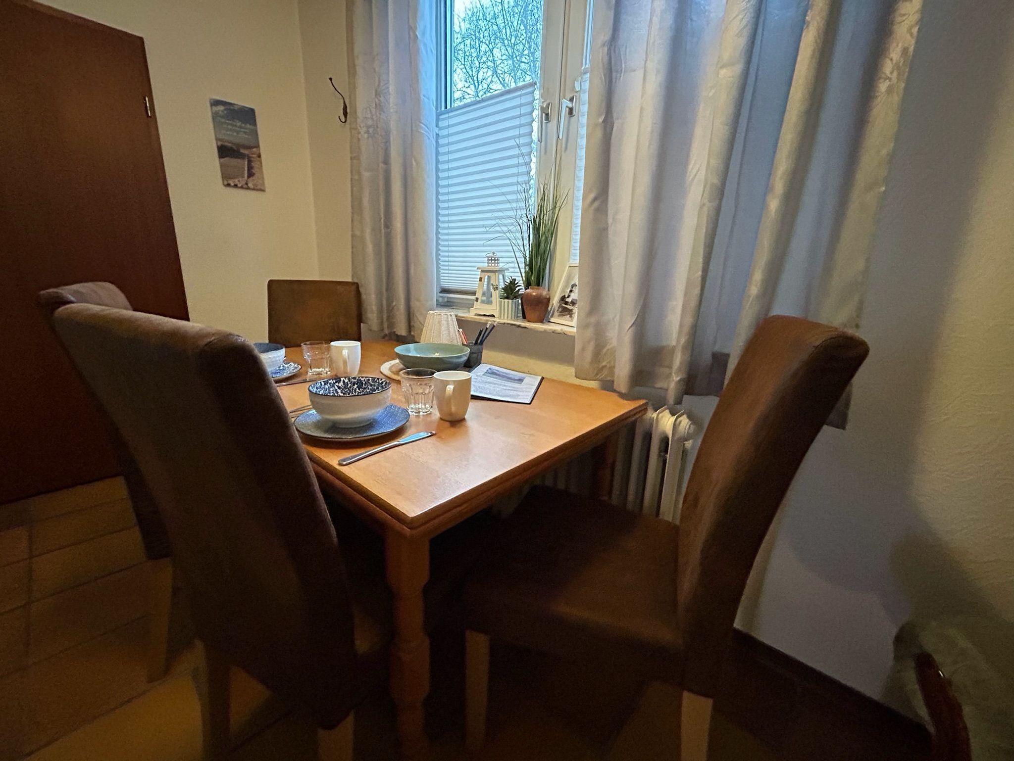 Die Ferienwohnung Langeoog ist ein heller, liebevoll gestalteter Rückzugsort für 2-4 Personen perfekt für Paare, kleine Familien oder alle, die eine entspannte Auszeit an der Nordsee suchen. Der freundliche WohnEssbereich empfängt Sie mit einer warmen, einladenden Atmosphäre, während das separate Schlafzimmer mit großem Doppelbett und praktischem Etagenbett für erholsame Nächte sorgt.