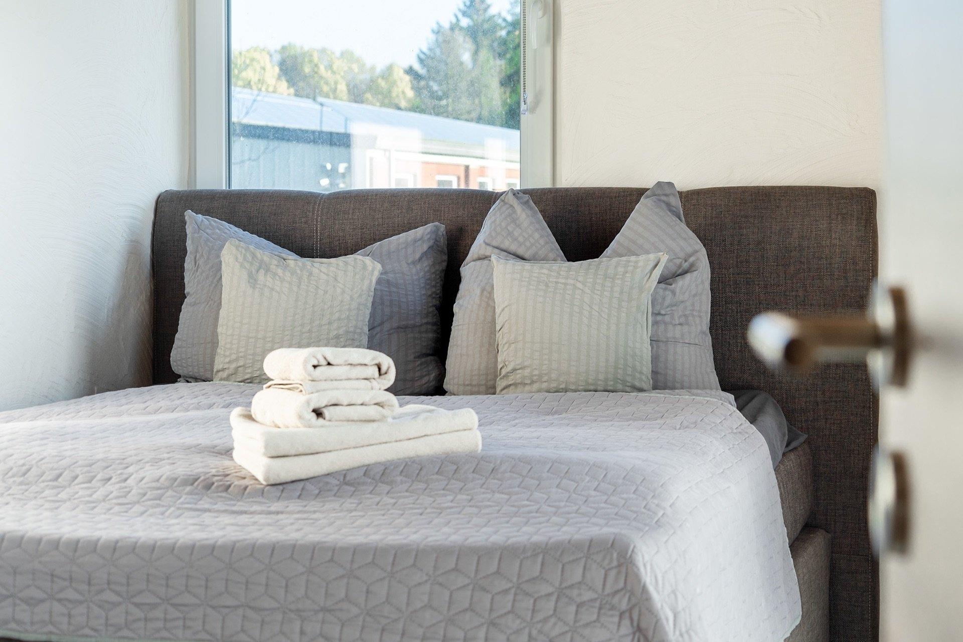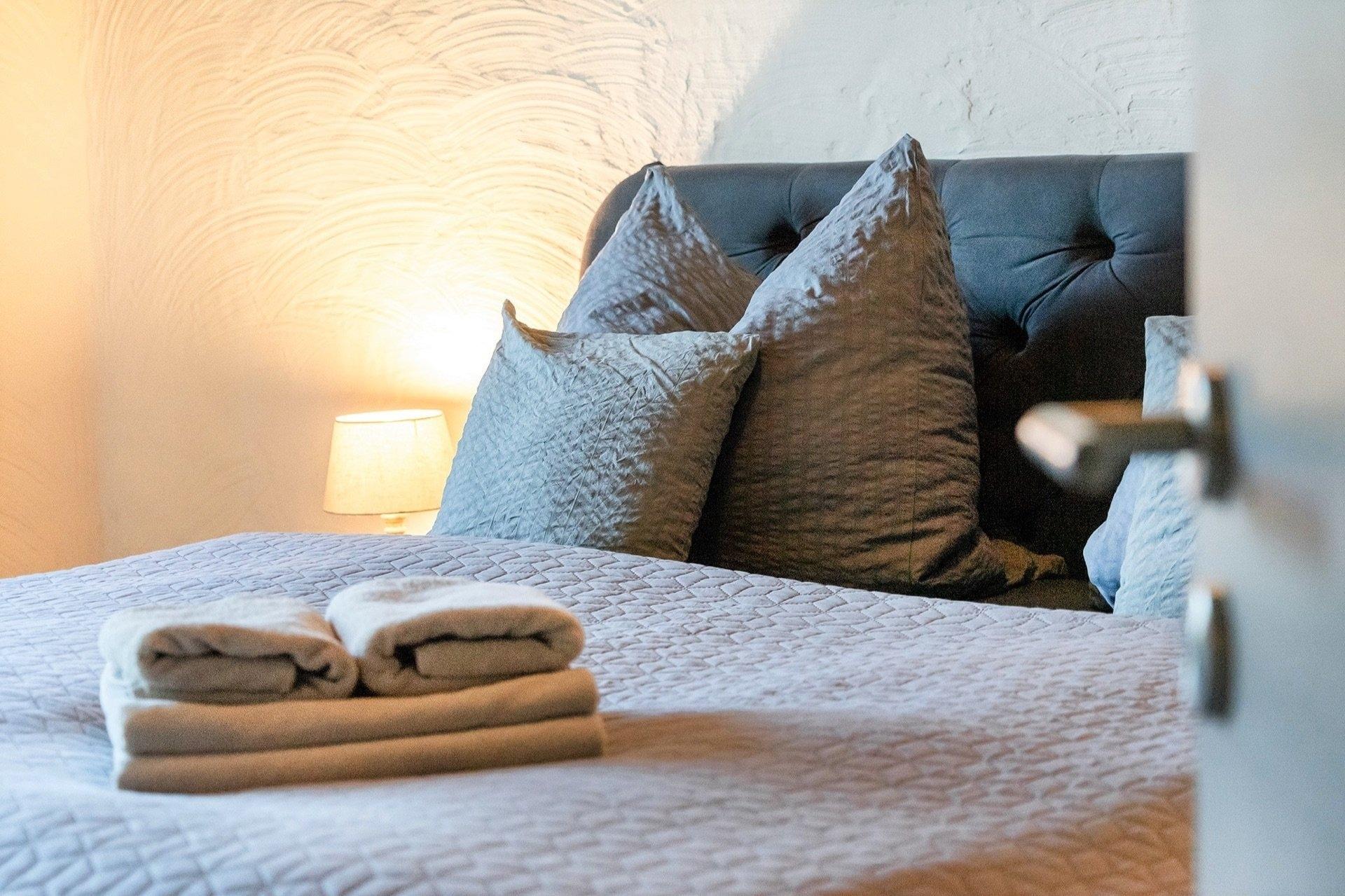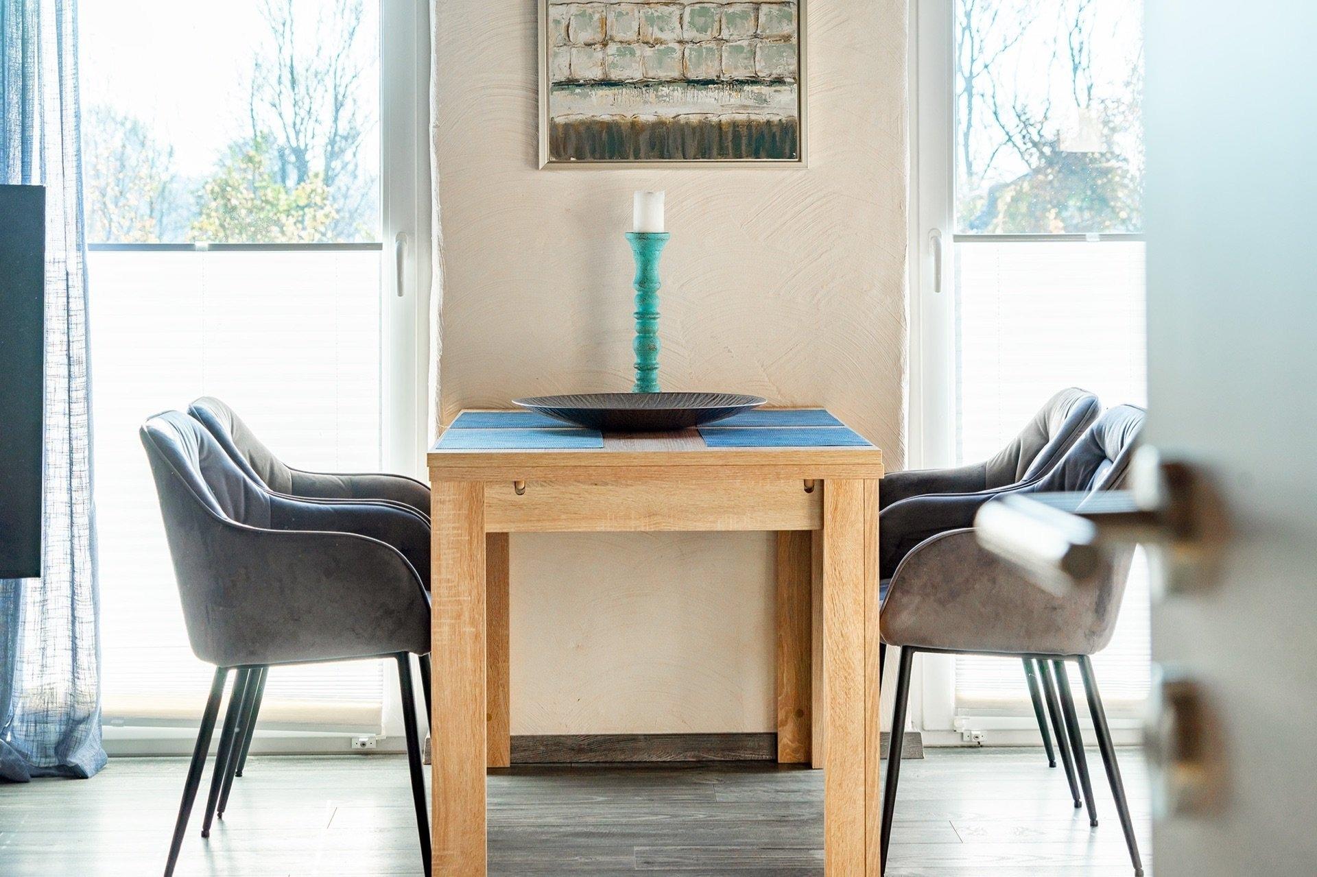 Die Ferienwohnung "Silbersee" bietet eine großzügige und komfortable Unterkunft für einen unvergesslichen Aufenthalt für Familien. Mit zwei Schlafzimmern, die insgesamt vier Schlafplätze bieten, und einem offenen Wohnzimmer/Essbereich mit einer voll ausgestatteten Küche, erwartet die Gäste hier eine behagliche Atmosphäre.Der offene Wohnzimmer- und Küchenbereich ist das Herzstück der Wohnung und lädt zu gemeinsamen Aktivitäten ein. Die Küche ist modern und vollständig ausgestattet mit hochwertigen Geräten wie Cerankochfeld, Backofen, Kühlschrank, Gefrierfach und Geschirrspüler. Zusätzlich stehen zwei Sätze Geschirr und Besteck sowie ein Toaster und ein Wasserkocher zur Verfügung. Für Kaffeeliebhaber gibt es sowohl eine klassische Kaffeemaschine als auch eine Kaffeepadmaschine (Senseo). Ein großer, ausziehbarer Esstisch bietet genügend Platz für gemeinsame Mahlzeiten oder unterhaltsame Spielabende mit bis zu vier Personen. Die gemütliche Couch und die zwei schicken Sessel laden zum Entspannen ein, während ein großzügiger 65 Zoll Smart-TV für Unterhaltung sorgt. Die zeitgemäße Einrichtung der Wohnung trägt zum Wohlfühlen bei und verspricht einen hohen Erholungswert.Die beiden Schlafzimmer sind mit hochwertigen Boxspringbetten (180x200cm) ausgestattet, die für einen erholsamen Schlaf sorgen. Die kuscheligen Bettwaren und die gemütlichen Nachtlampen auf den Nachttischen ergänzen die Einrichtung perfekt. Optional können exzellente Bettwäsche und Handtücher dazu gebucht werden, um den Komfort weiter zu steigern.Das Badezimmer ist großzügig gestaltet und bietet ein Höchstmaß an Komfort. Alle Türzargen in der Wohnung sind 93cm breit, um auch Gästen mit Mobilitätseinschränkungen einen angenehmen Aufenthalt zu ermöglichen.Die Ferienwohnung befindet sich im ersten Obergeschoss und ist bequem und barrierearm mit einem Aufzug erreichbar. Gäste mit Hunden sind herzlich willkommen, und es besteht die Möglichkeit, bis zu zwei Hunde unterzubringen oder individuelle Anfragen zu stellen.Für zusätzlichen Komfort stehen eine Waschmaschine und ein Trockner gegen Gebühr im zweiten Stockwerk zur Verfügung. Ein abschließbarer Abstellraum für Fahrräder und E-Bikes mit Ladestationen ist ebenfalls vorhanden, um den Aufenthalt der Gäste noch angenehmer zu gestalten.Die Zufriedenheit und das Wohlbefinden unserer Gäste, insbesondere Familien, liegen uns sehr am Herzen. Auf Wunsch stellen wir gerne kostenfreie Babybetten mit passender Bettwäsche, Wickelkommoden, Babybadewannen, Rausfallschutz und Tritthocker zur Verfügung, um den Aufenthalt für Eltern und ihre Kleinen so angenehm wie möglich zu gestalten.Darüber hinaus bieten wir in unserem Abstellraum kostenfrei Bollerwagen zur Ausleihe an, damit Familien bequem ihre Ausflüge in die Umgebung oder zum nahegelegenen Strand unternehmen können. Unsere Gäste sollen sich bei uns wie zu Hause fühlen und einen unbeschwerten Urlaub genießen können, ganz gleich, ob sie als Familie oder in anderer Konstellation anreisen.